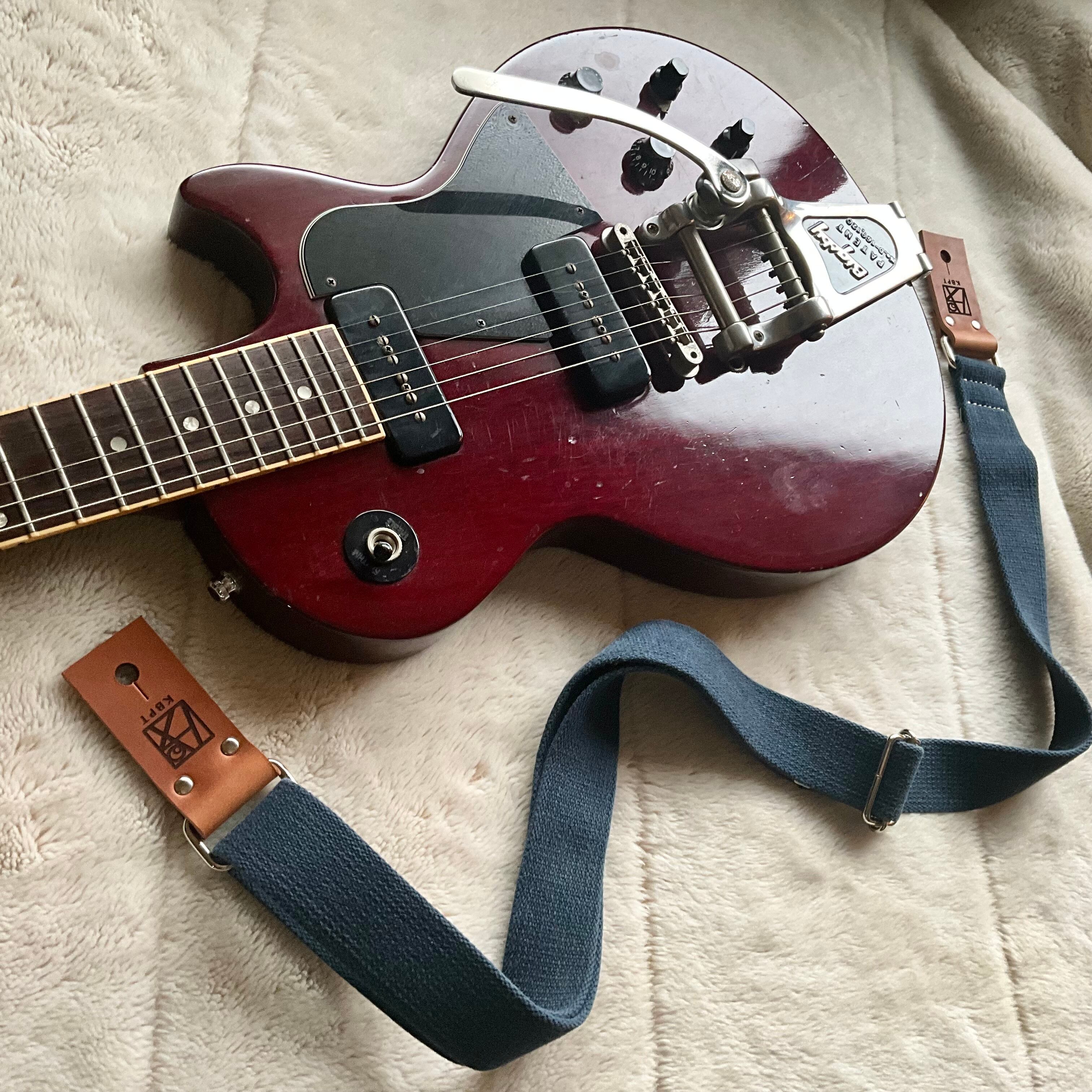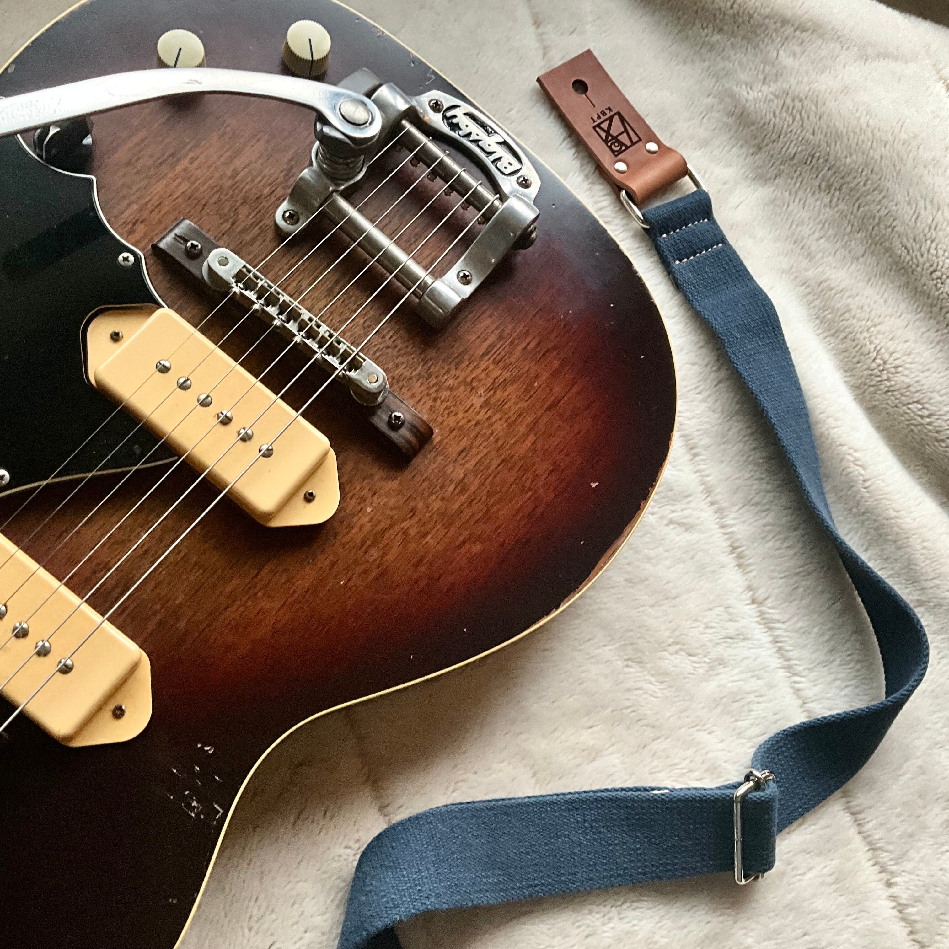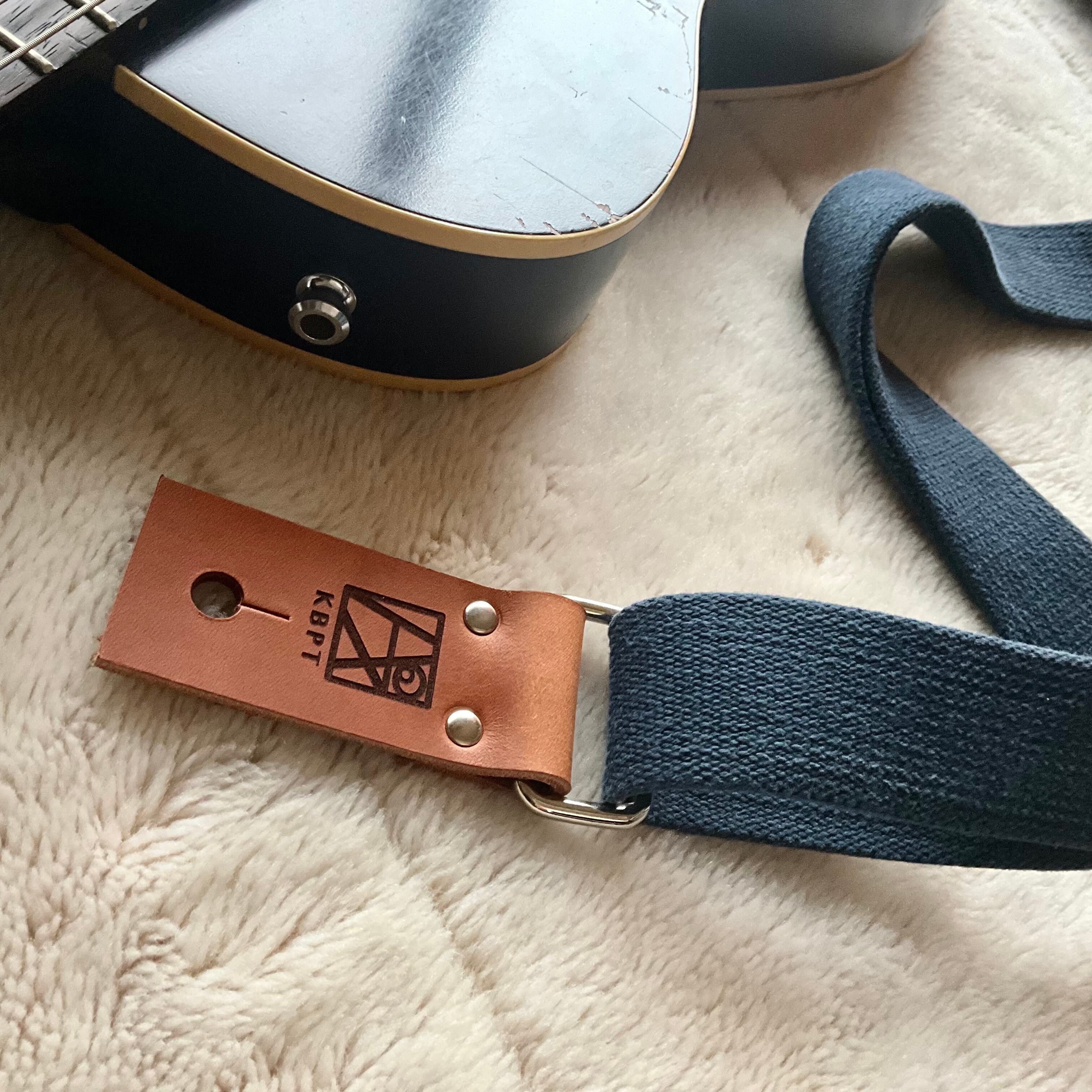 【llama40】アイアンブルー*ブラウンレザー*ニッケル金具【ピン径8mm/柔らかくて厚い綿のギターストラップ/ibbrnn1LM】