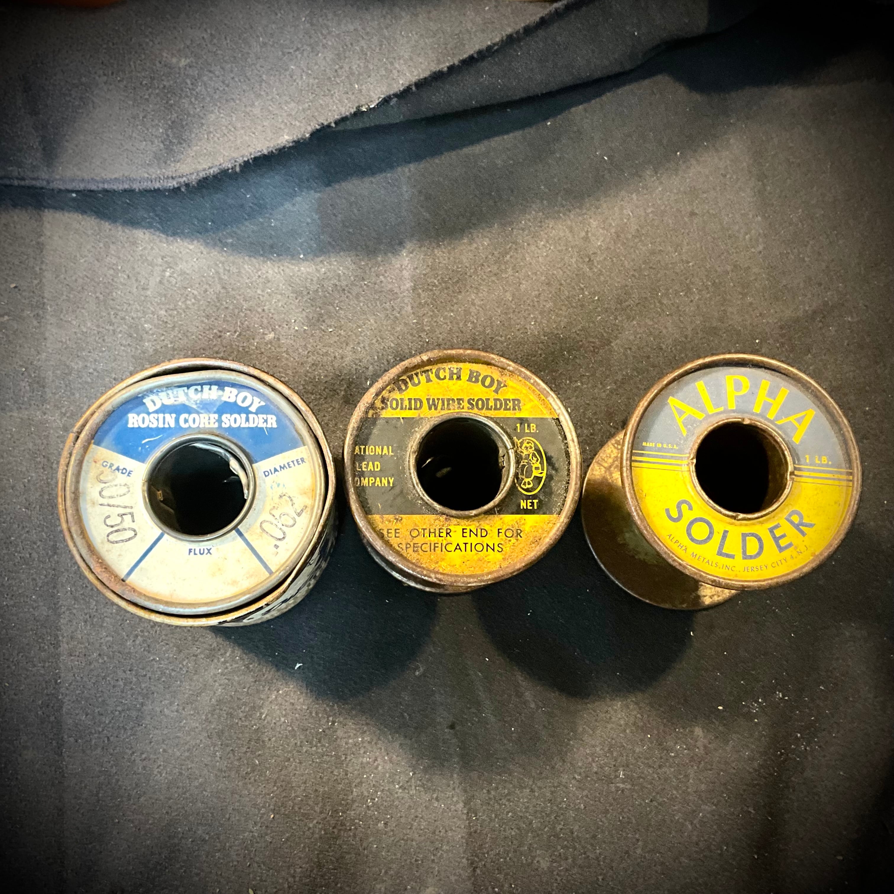 うち2つは元々フラックス入りのビンテージハンダではありますが、経年によりやや乾燥気味のため、フラックスを追加して極力酸化を防止する方法でハンダ付けを行っております。