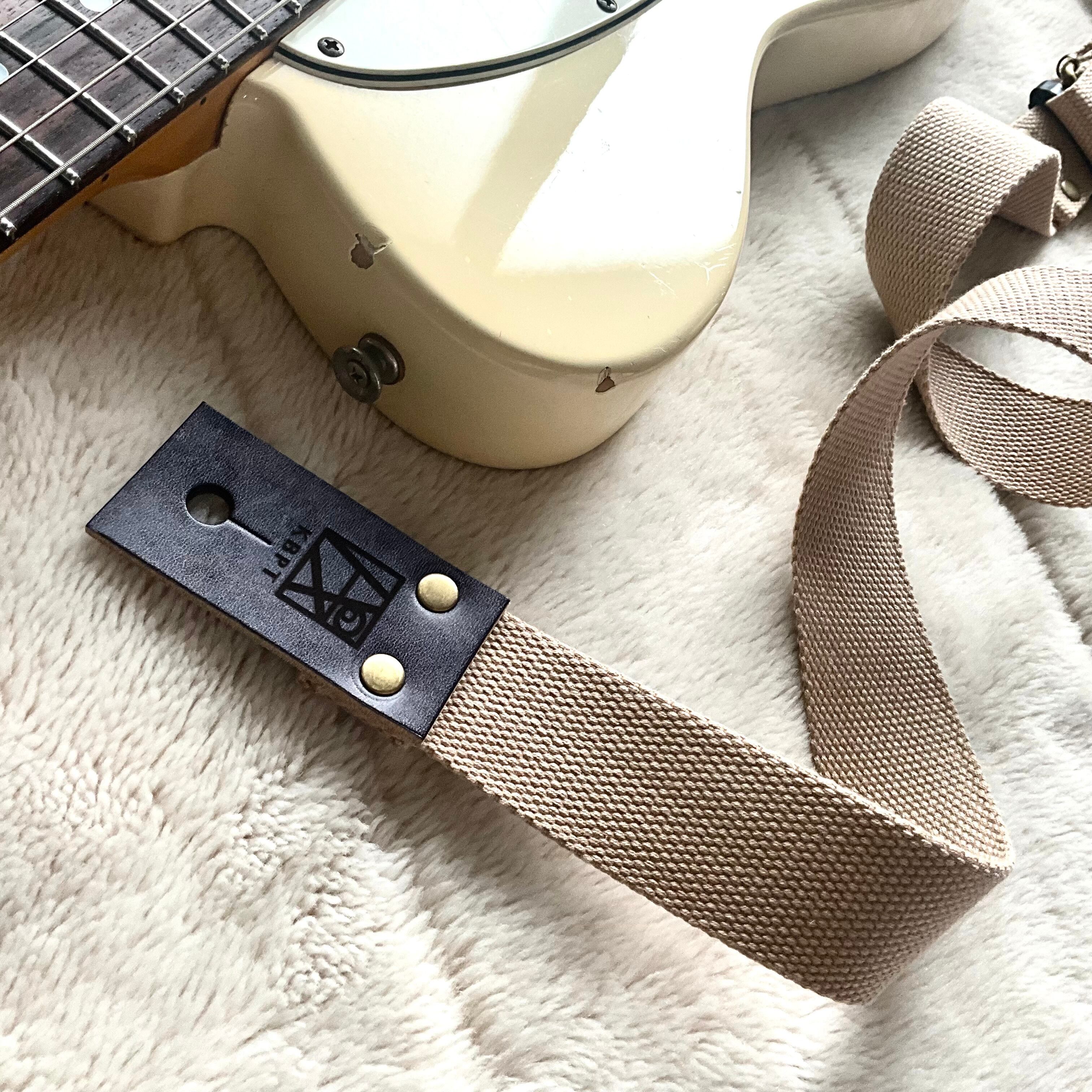 【pony40SP】エクルベージュ*ブライドル・ネイビーレザー*アンティーク金具【ピン径8mm/ポリエステル綿素材のギターストラップ/ebgbdnva2pSP】