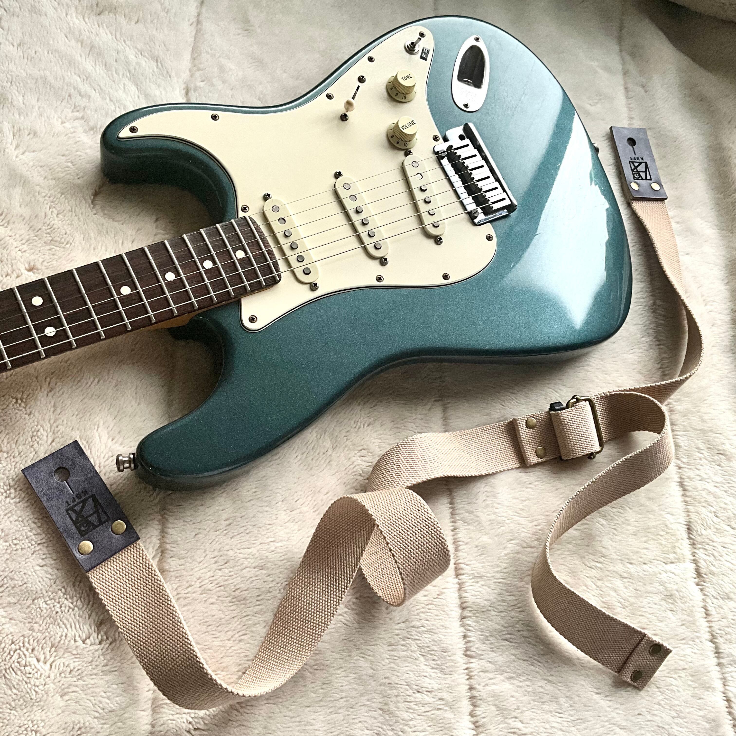 ブライドル・レザーとは…馬具用に作られた革のことです。元々落馬を防止目的のため、人の体重を支えられる抜群の耐久性があり、ギターストラップにも最適な素材です。イギリスに古くから伝わる製法で、しっかりと鞣された植物タンニン革にロウを丹念に擦り込むことで浸透させ、革の堅牢度を高めています。