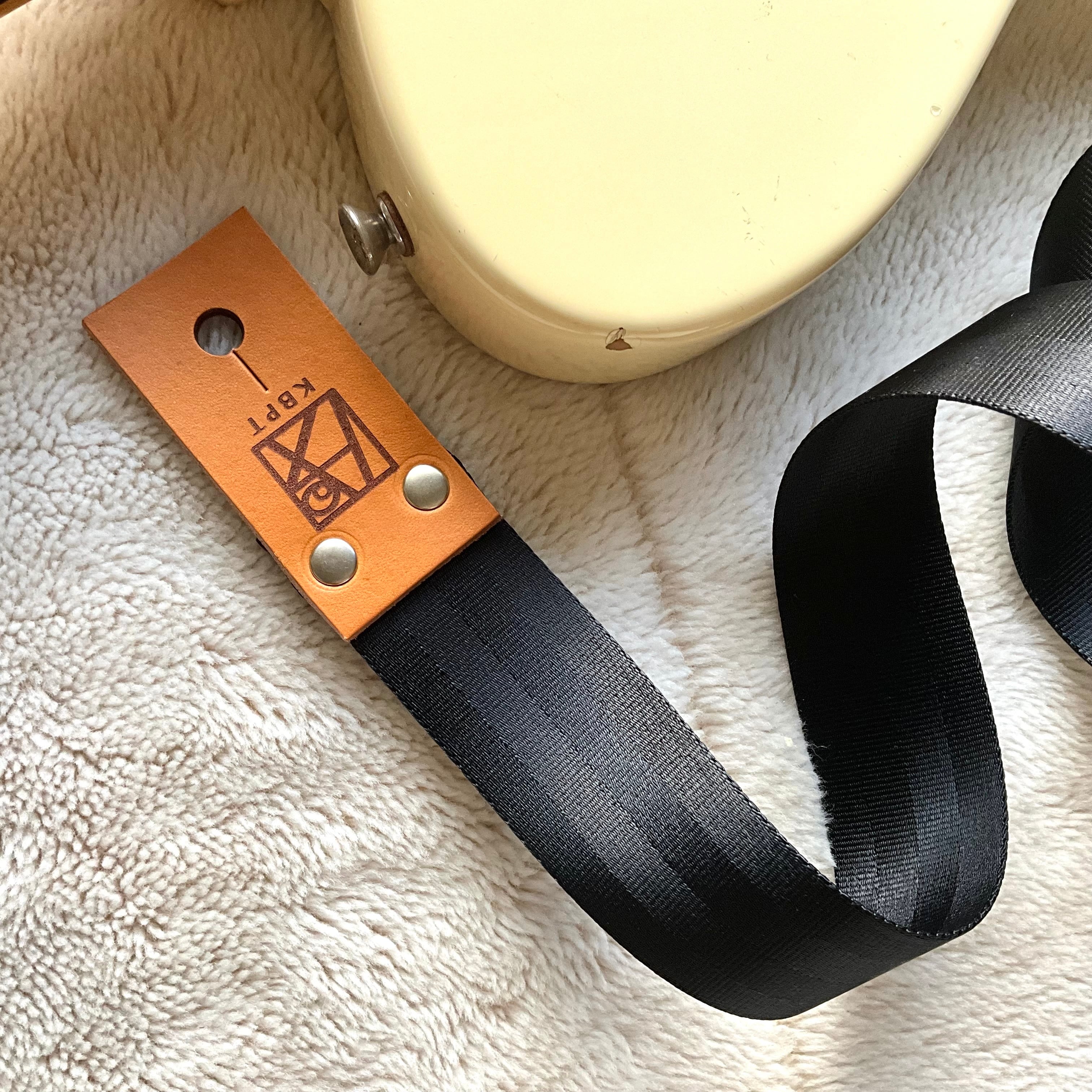 【pony40】シートベルトブラック*イエローキャメルレザー*ニッケル金具【ピン径8mm/シートベルト素材のギターストラップ/sbycmn95p】