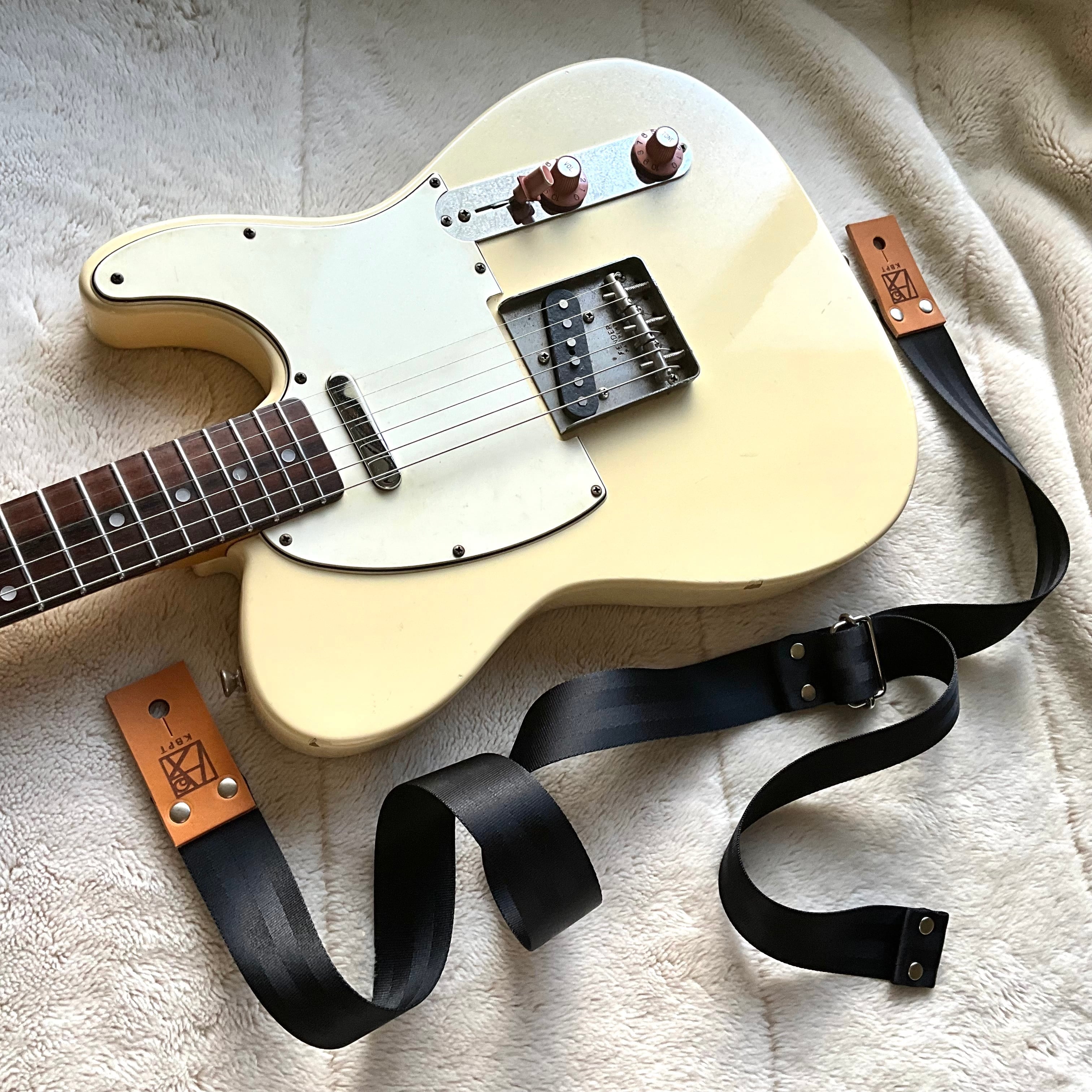 【pony40】シートベルトブラック*イエローキャメルレザー*ニッケル金具【ピン径8mm/シートベルト素材のギターストラップ/sbycmn96p】