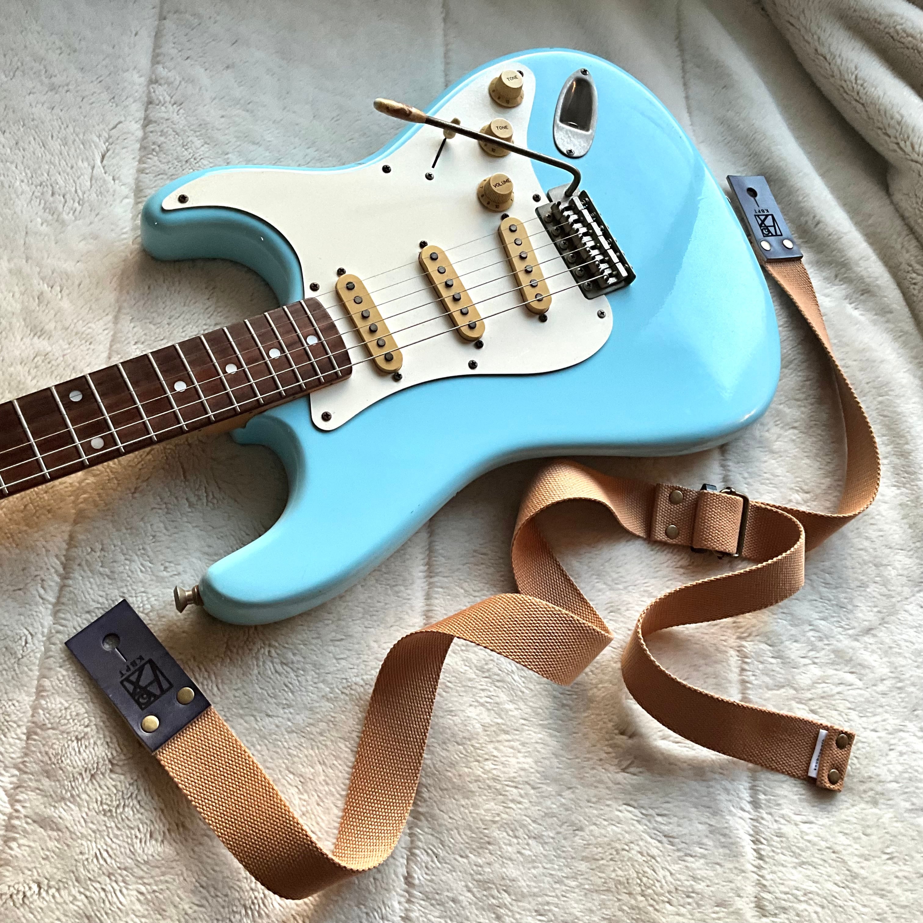ブライドル・レザーとは…馬具用に作られた革のことです。元々落馬を防止目的のため、人の体重を支えられる抜群の耐久性があり、ギターストラップにも最適な素材です。イギリスに古くから伝わる製法で、しっかりと鞣された植物タンニン革にロウを丹念に擦り込むことで浸透させ、革の堅牢度を高めています。