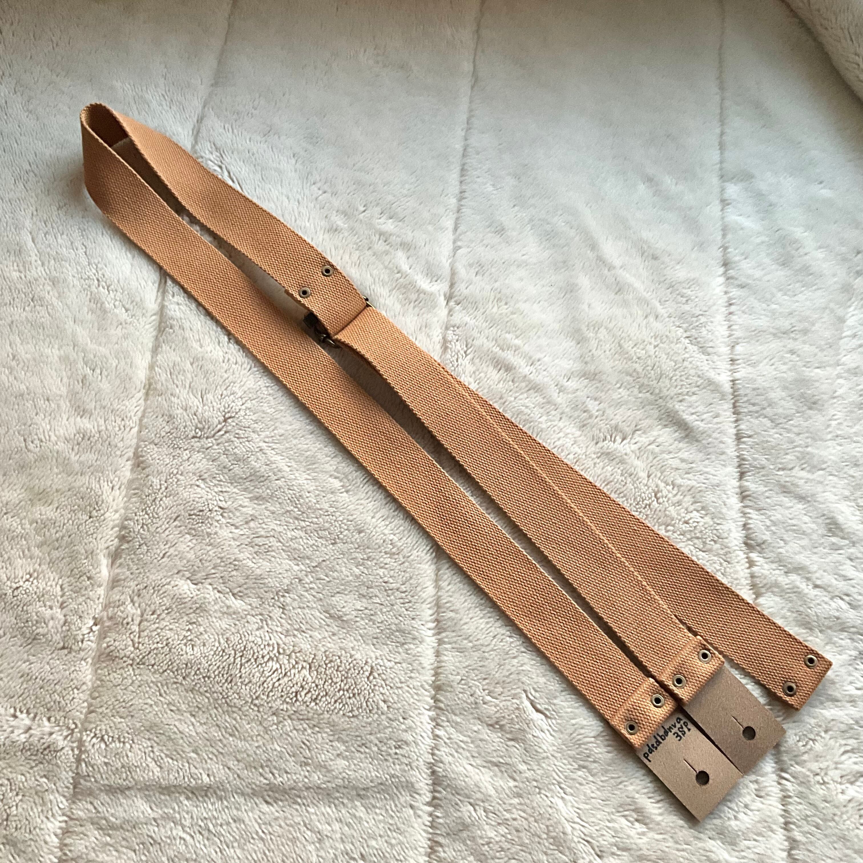 (ロットにより少々の誤差があります。両端レザー部のストラップピンを通す穴同士をつないだ長さでの計測です。)