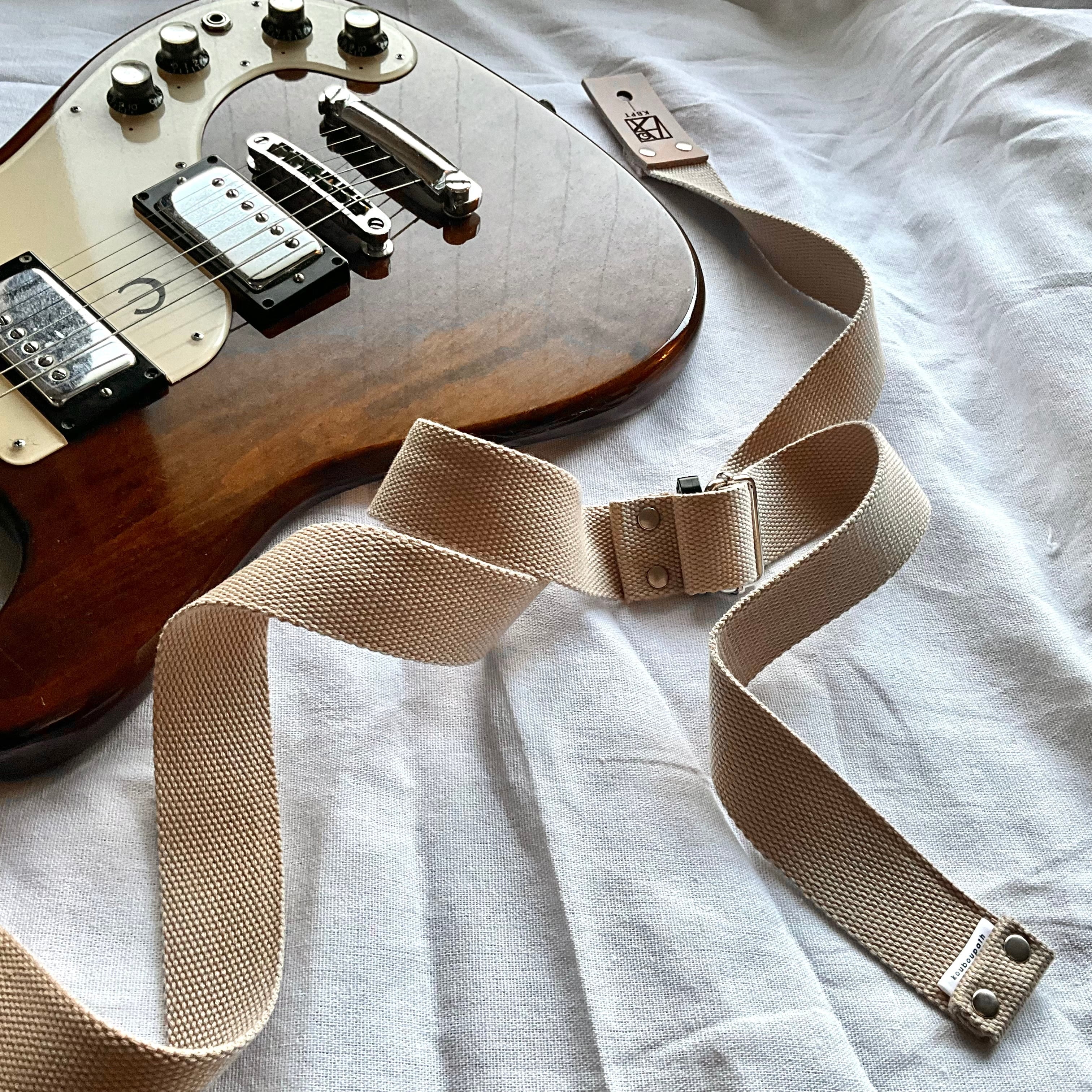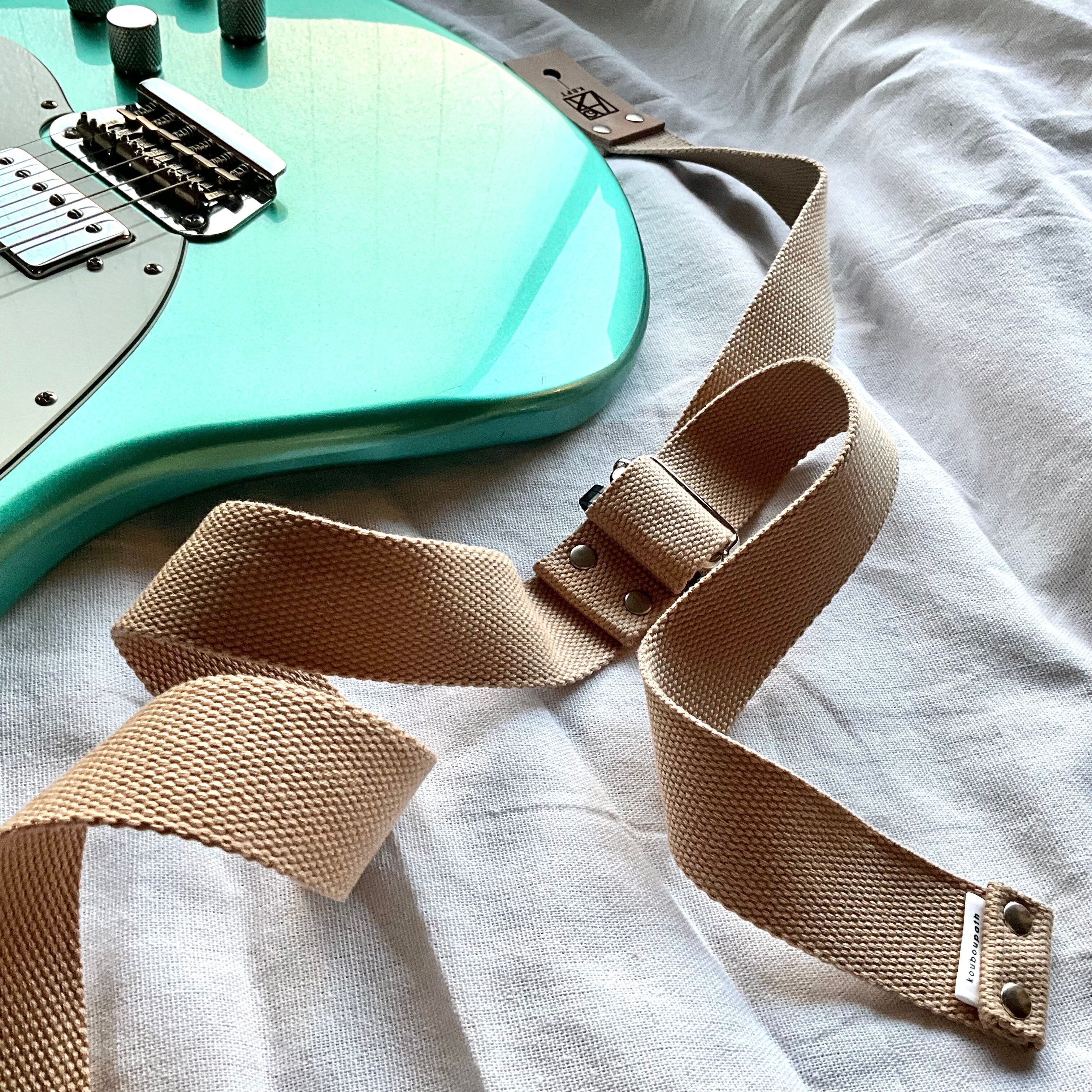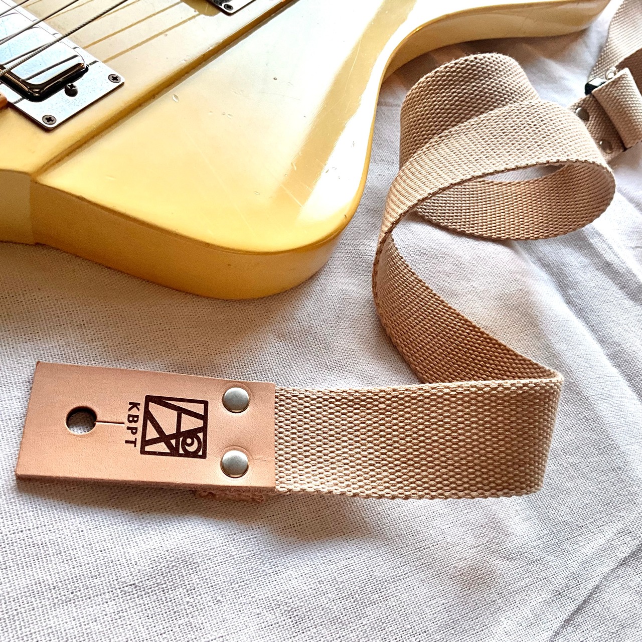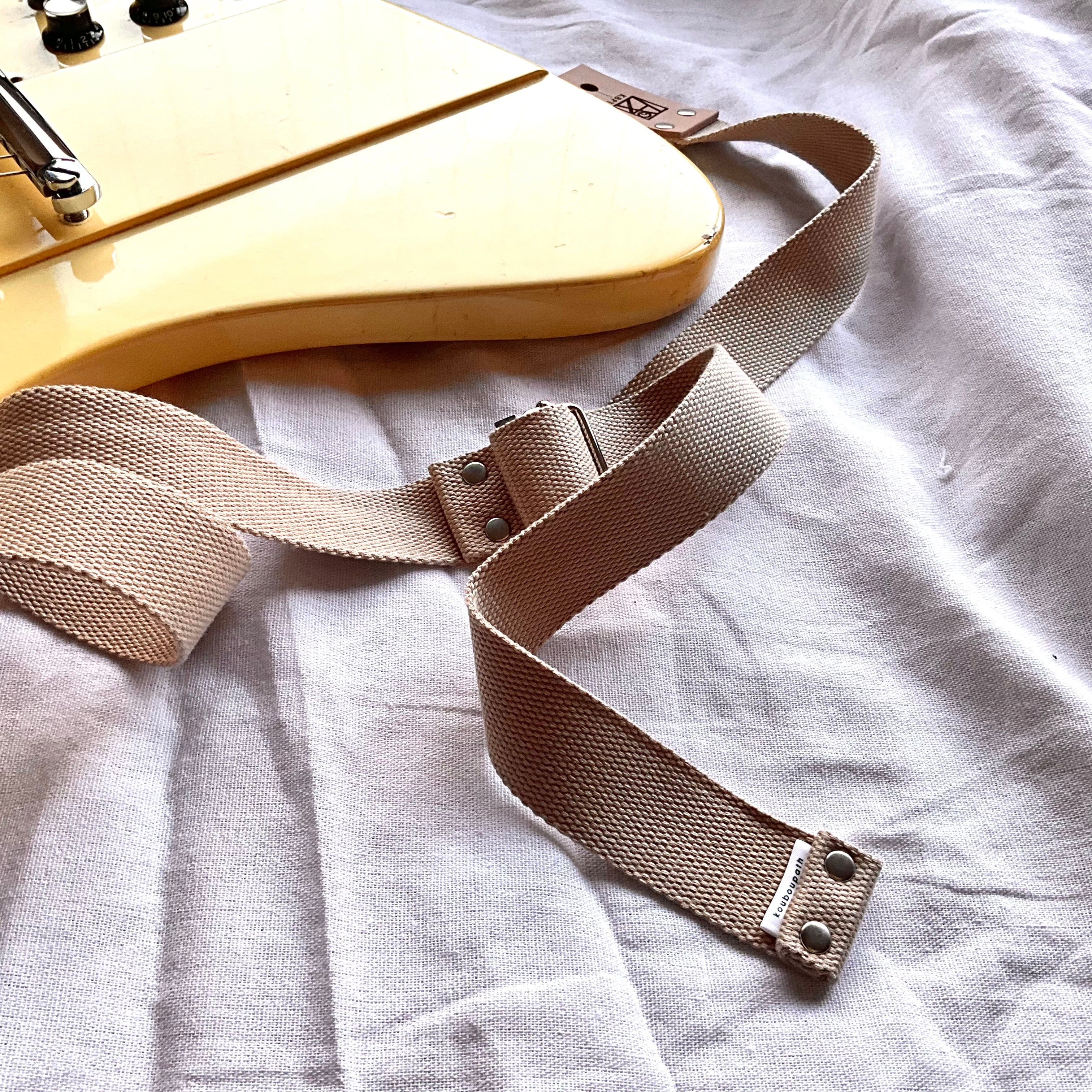 【pony40】エクルベージュ*ミルクティーレザー*ニッケル金具【ピン径8mm/ポリエステル綿素材のギターストラップ/pebgmktn1〜3】