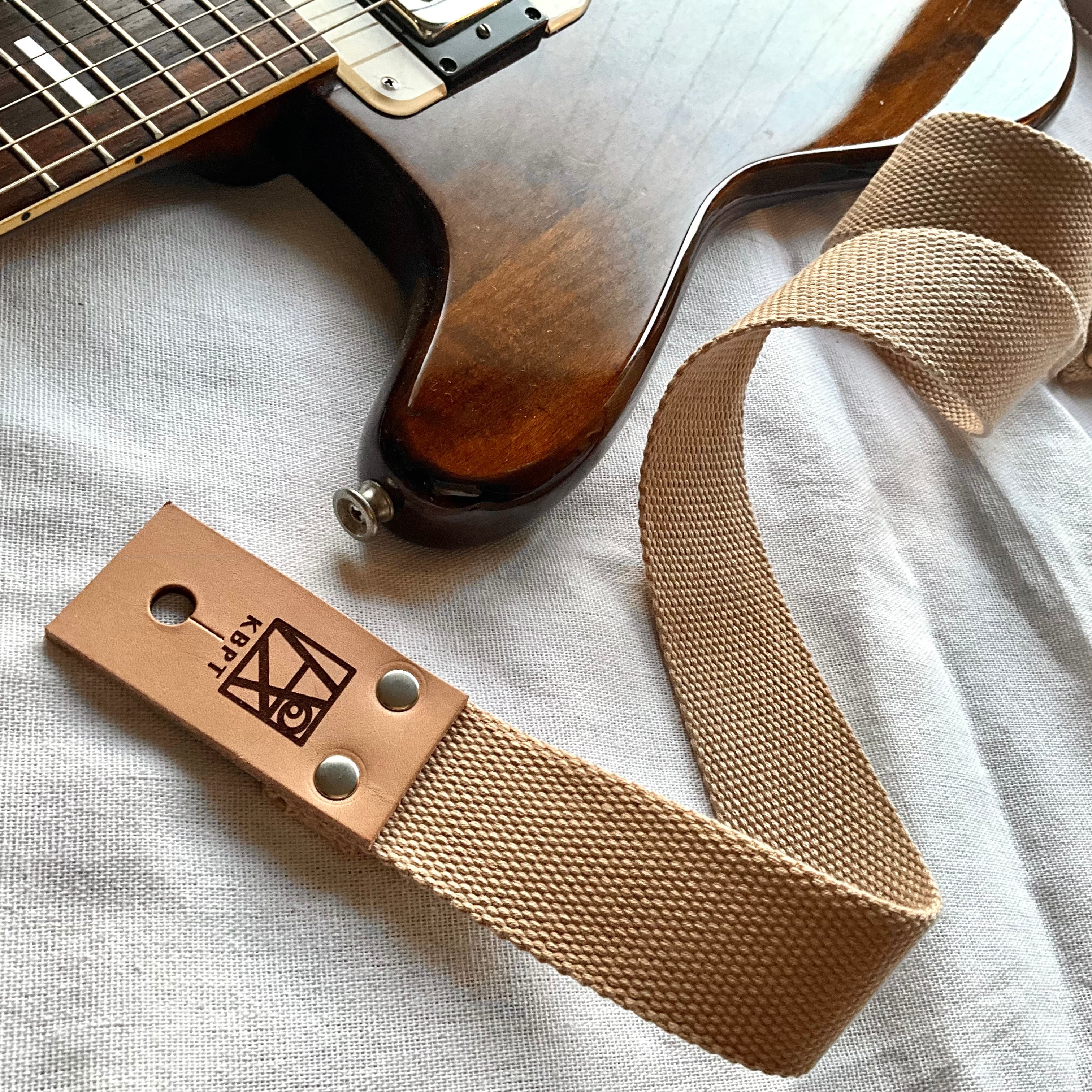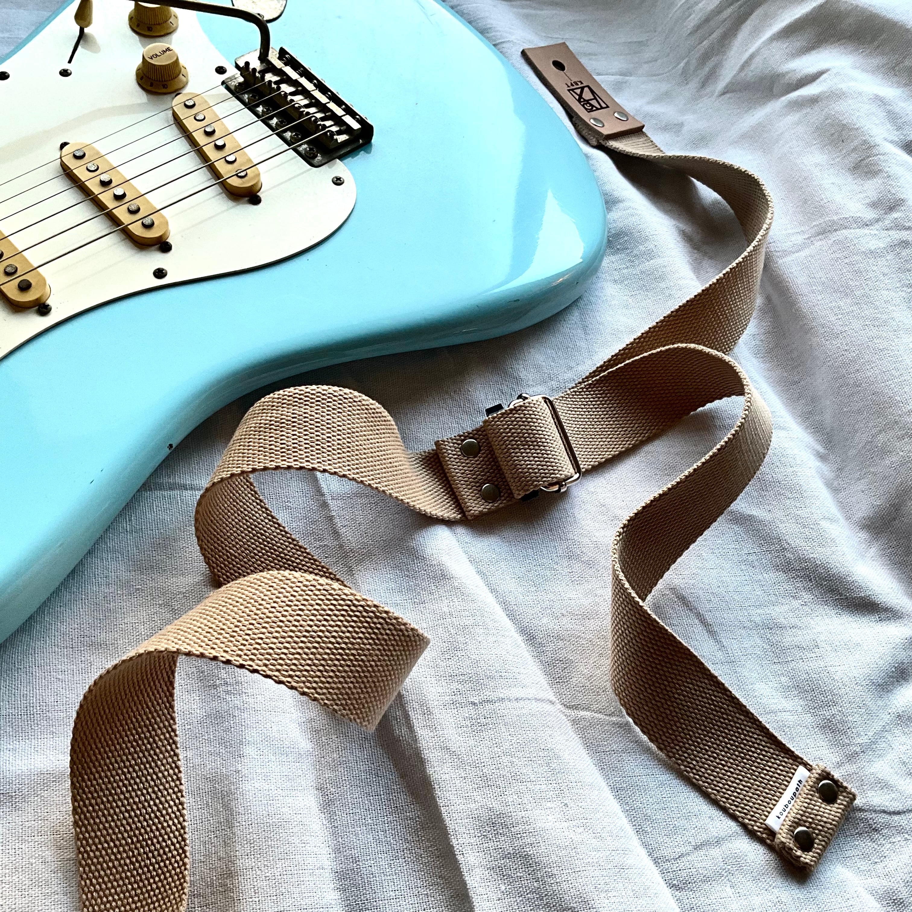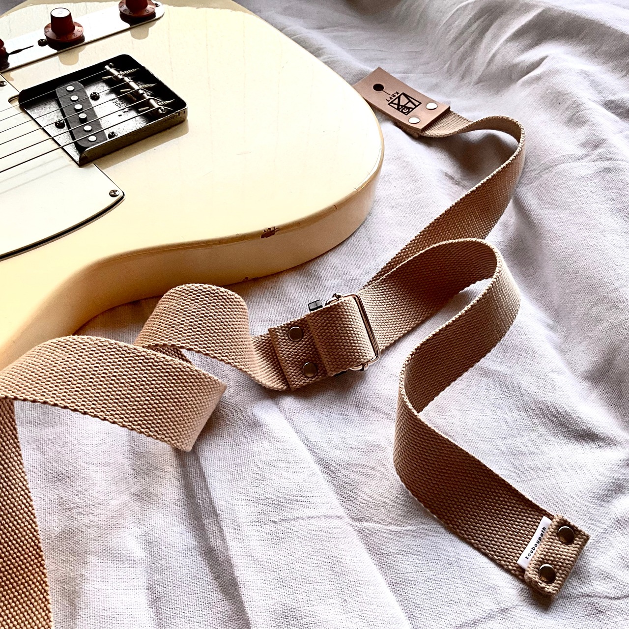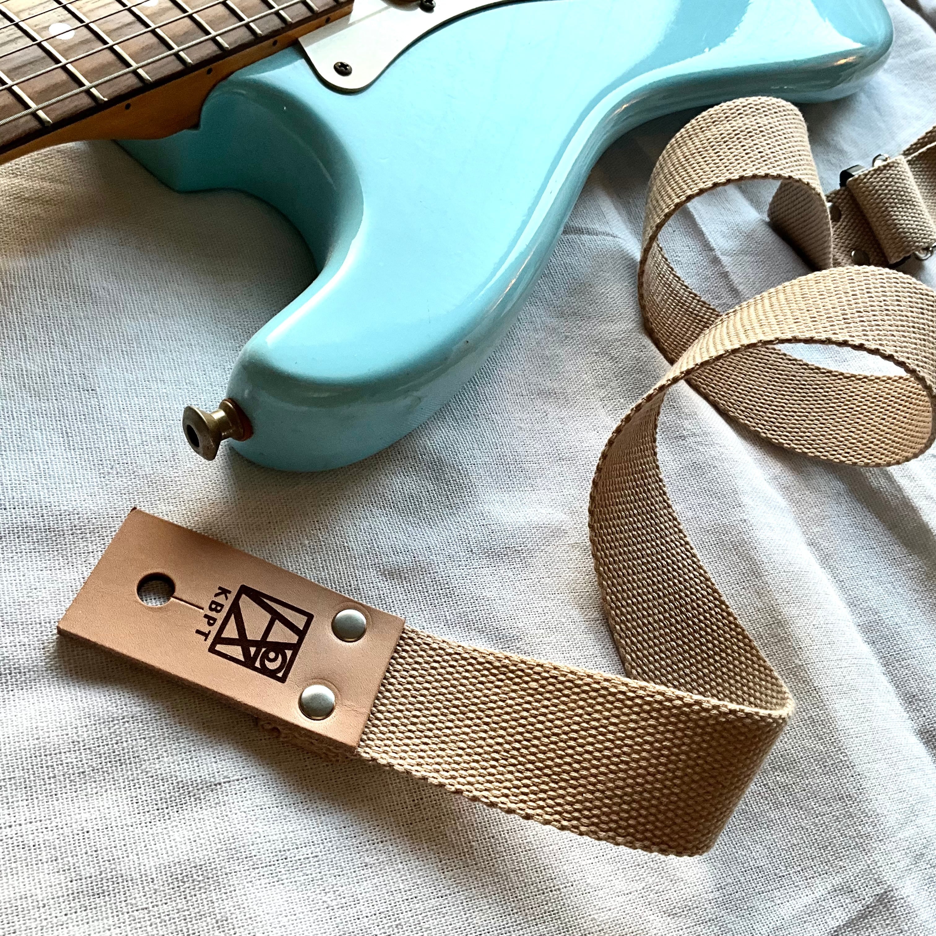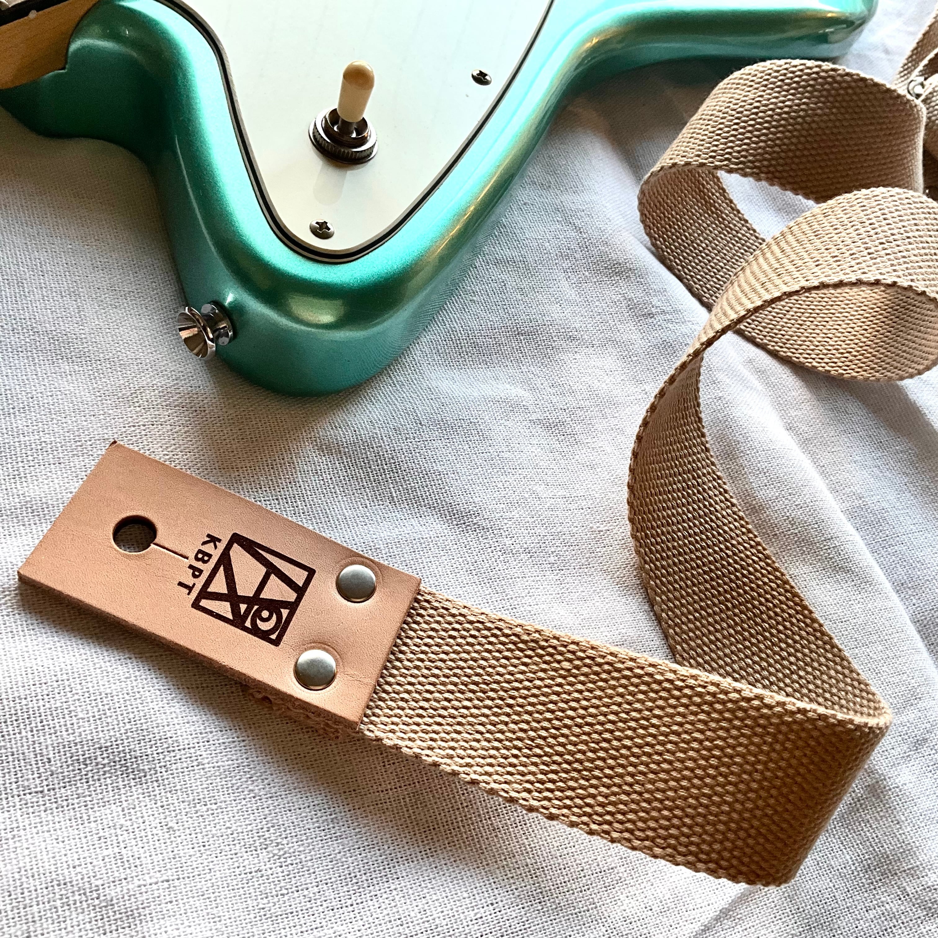【pony40】エクルベージュ*ミルクティーレザー*ニッケル金具【ピン径8mm/ポリエステル綿素材のギターストラップ/pebgmktn1〜3】