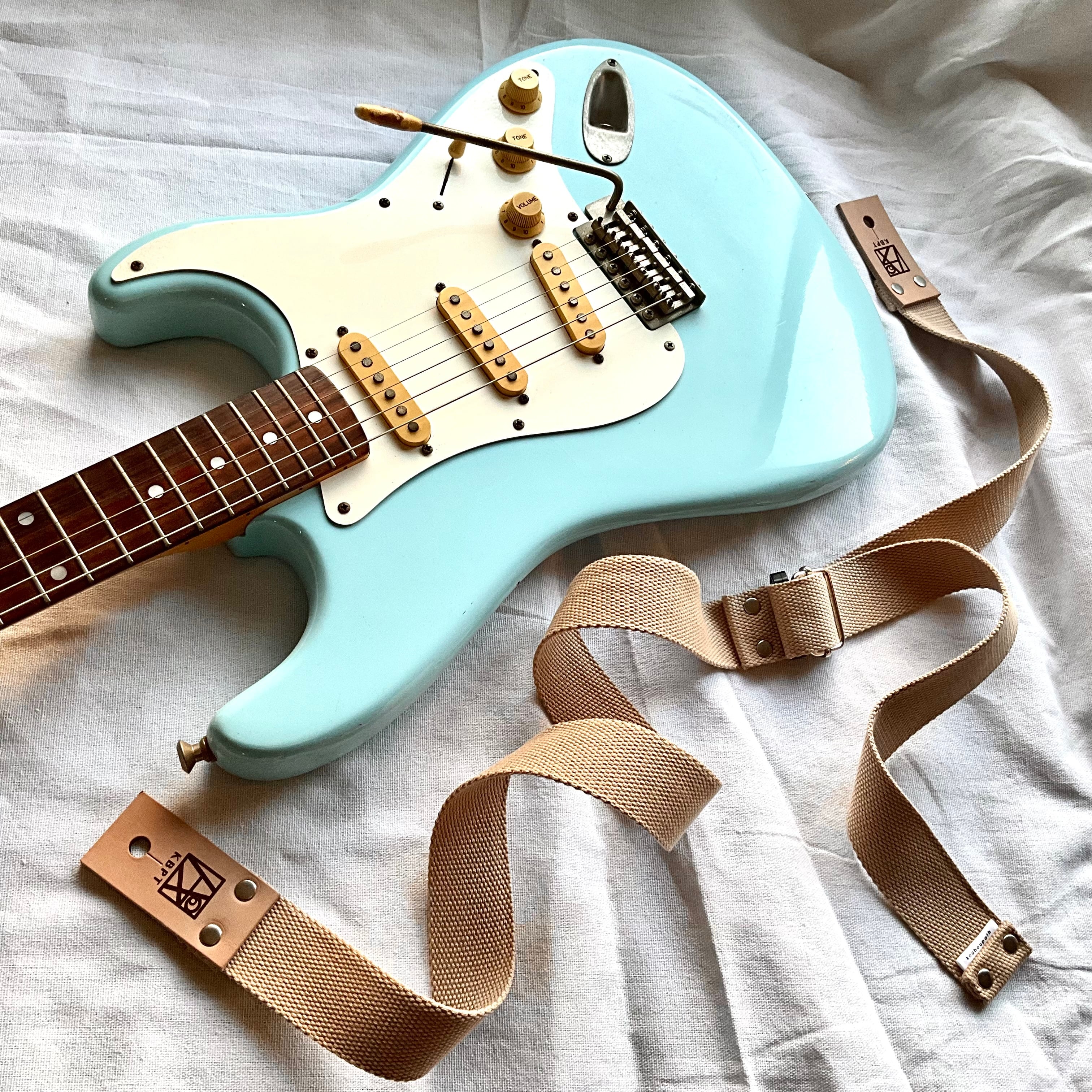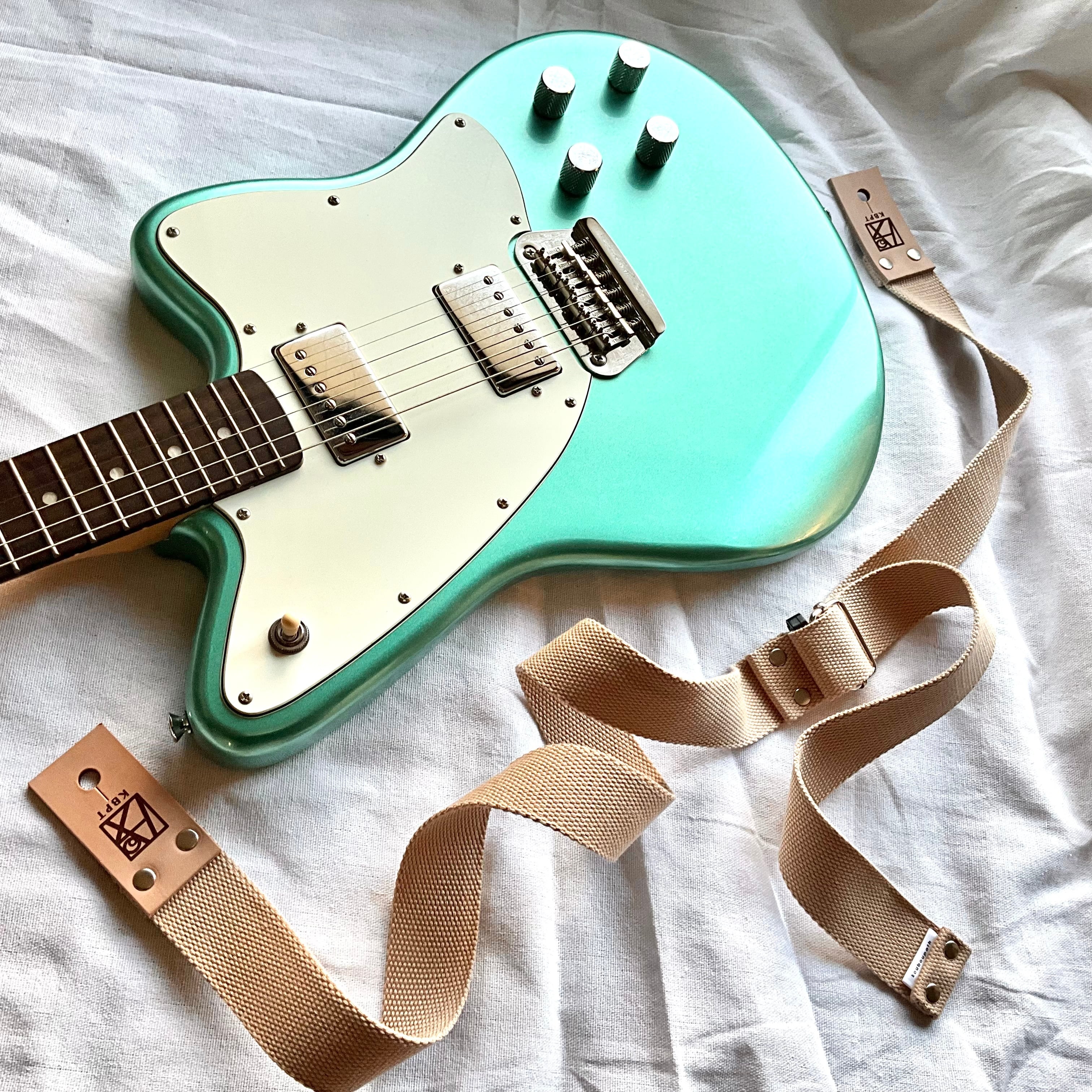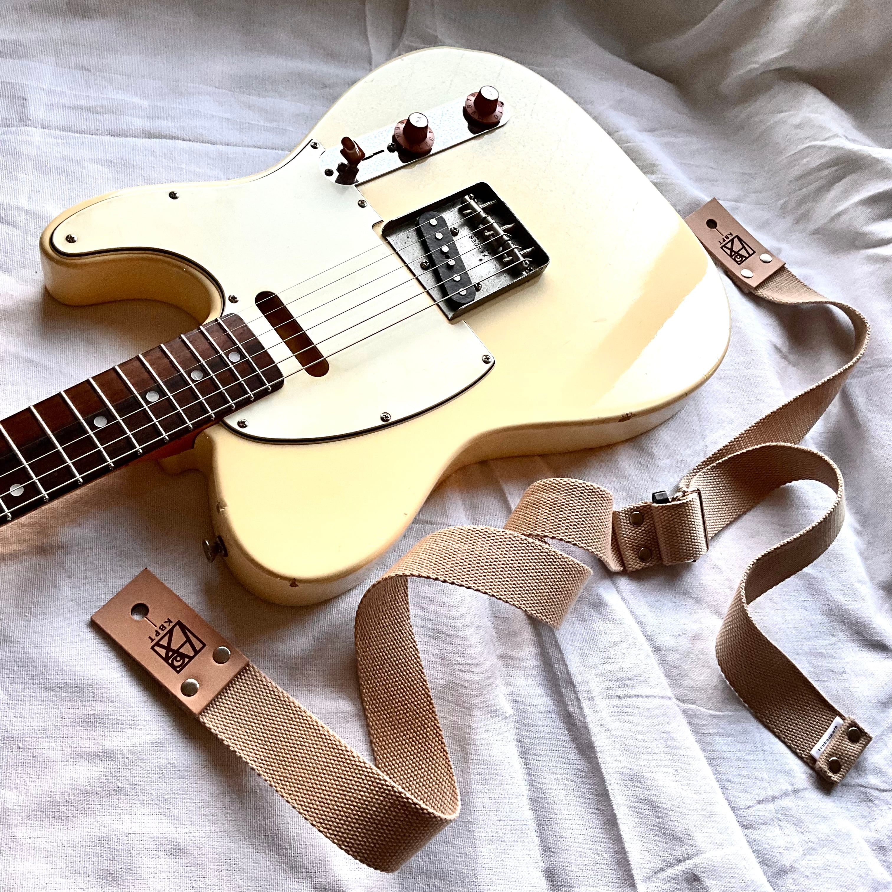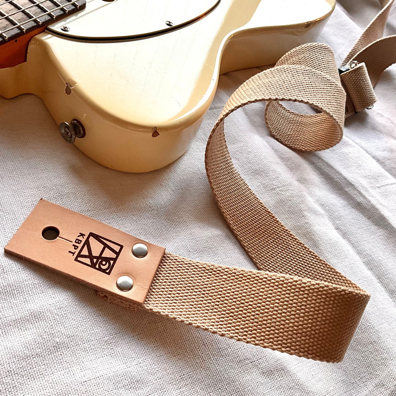 【pony40】エクルベージュ*ミルクティーレザー*ニッケル金具【ピン径8mm/ポリエステル綿素材のギターストラップ/pebgmktn1〜3】