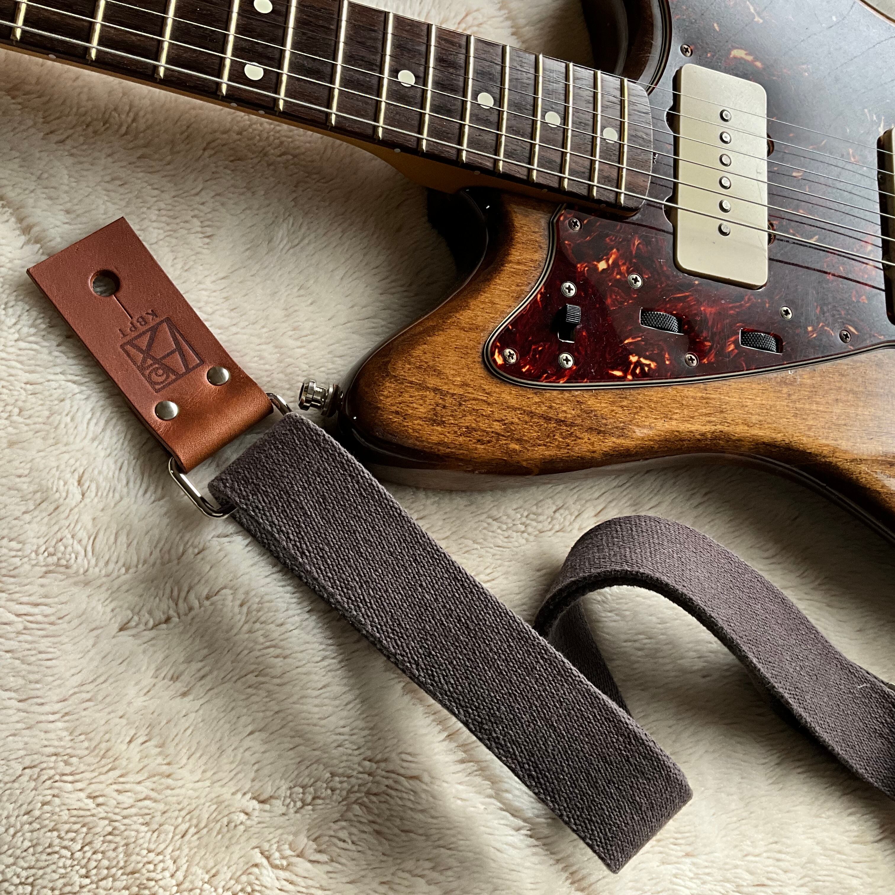 【llama40】トープ*ブラウンレザー*ニッケル金具【ピン径8mm/柔らかくて厚い綿のギターストラップ/tpbrn1LM】