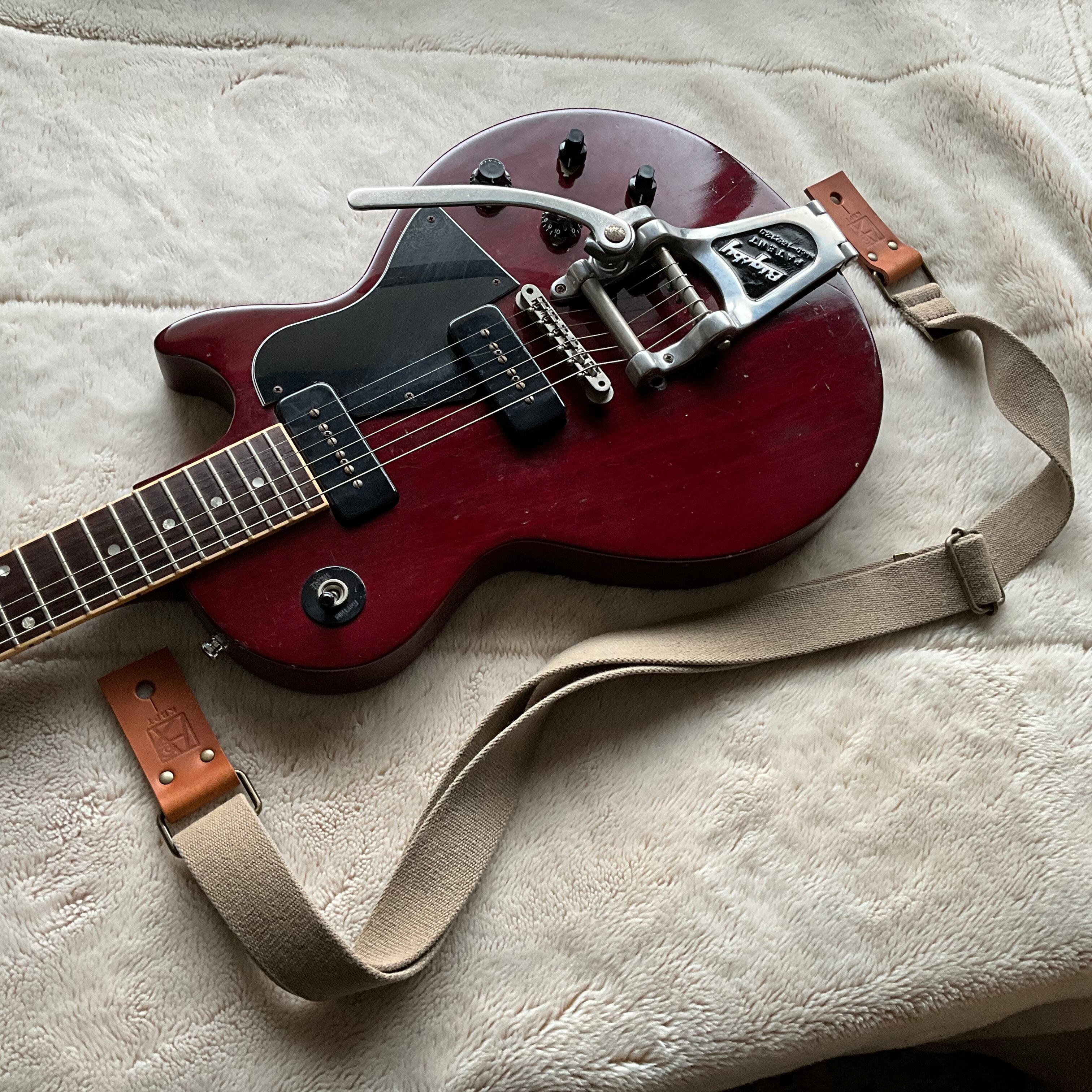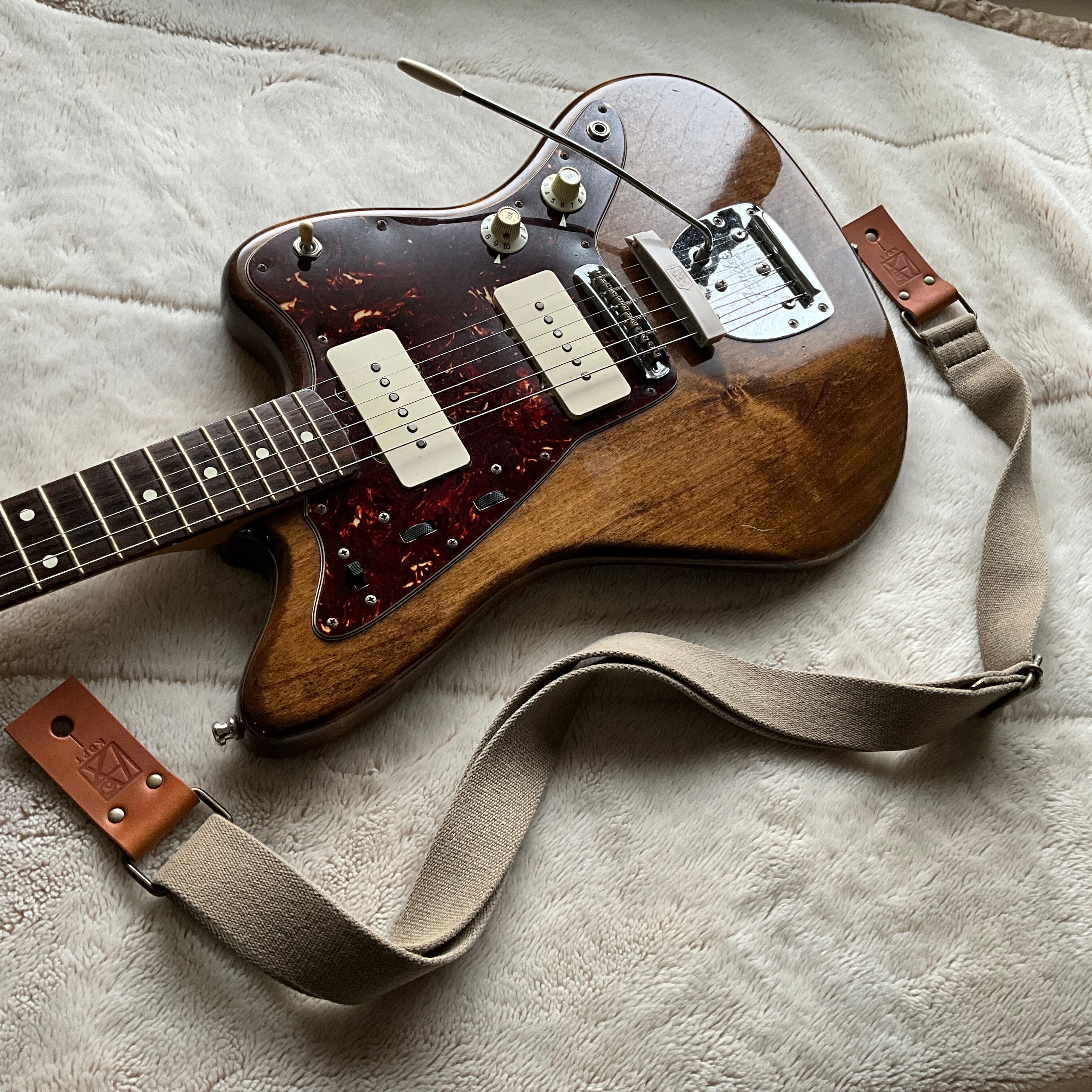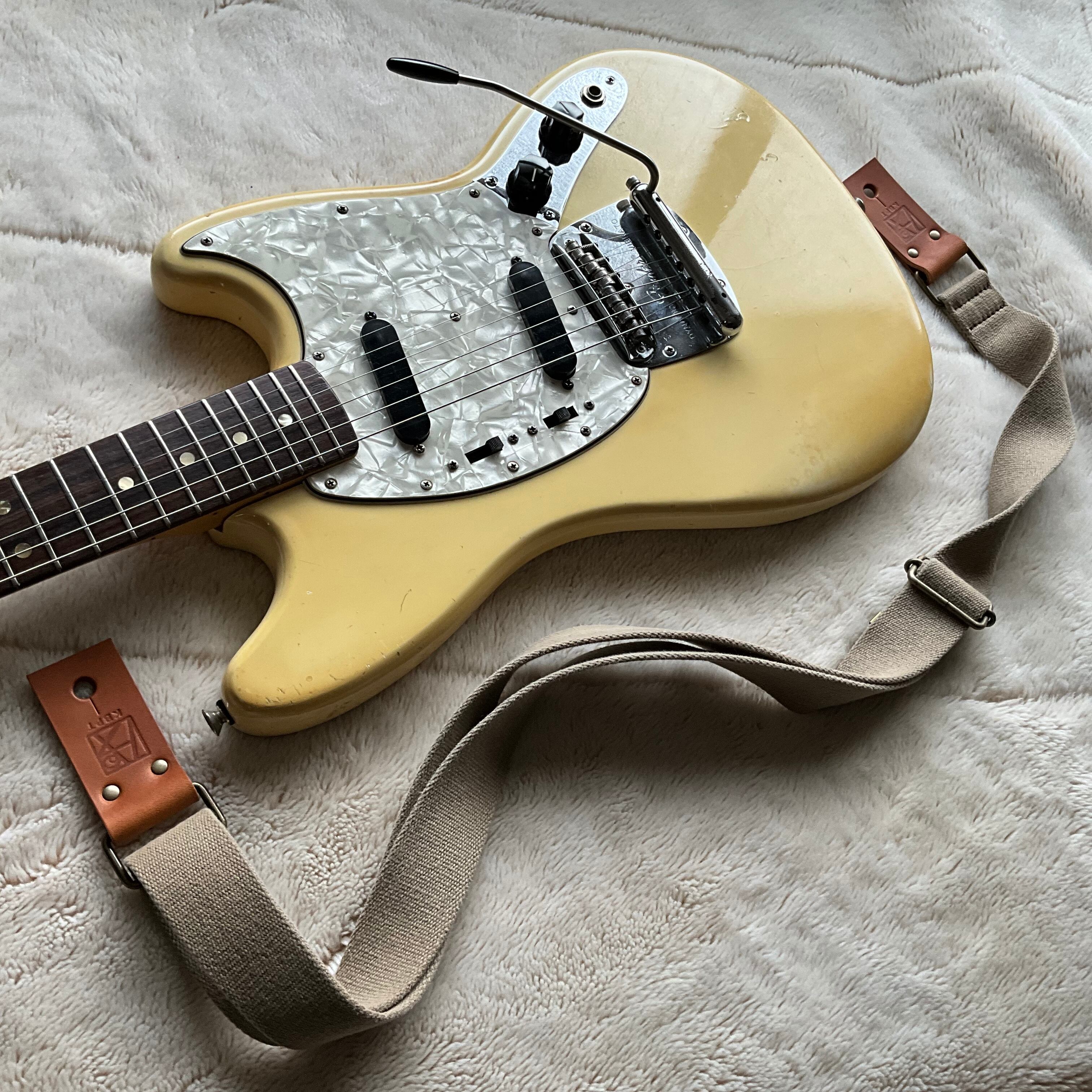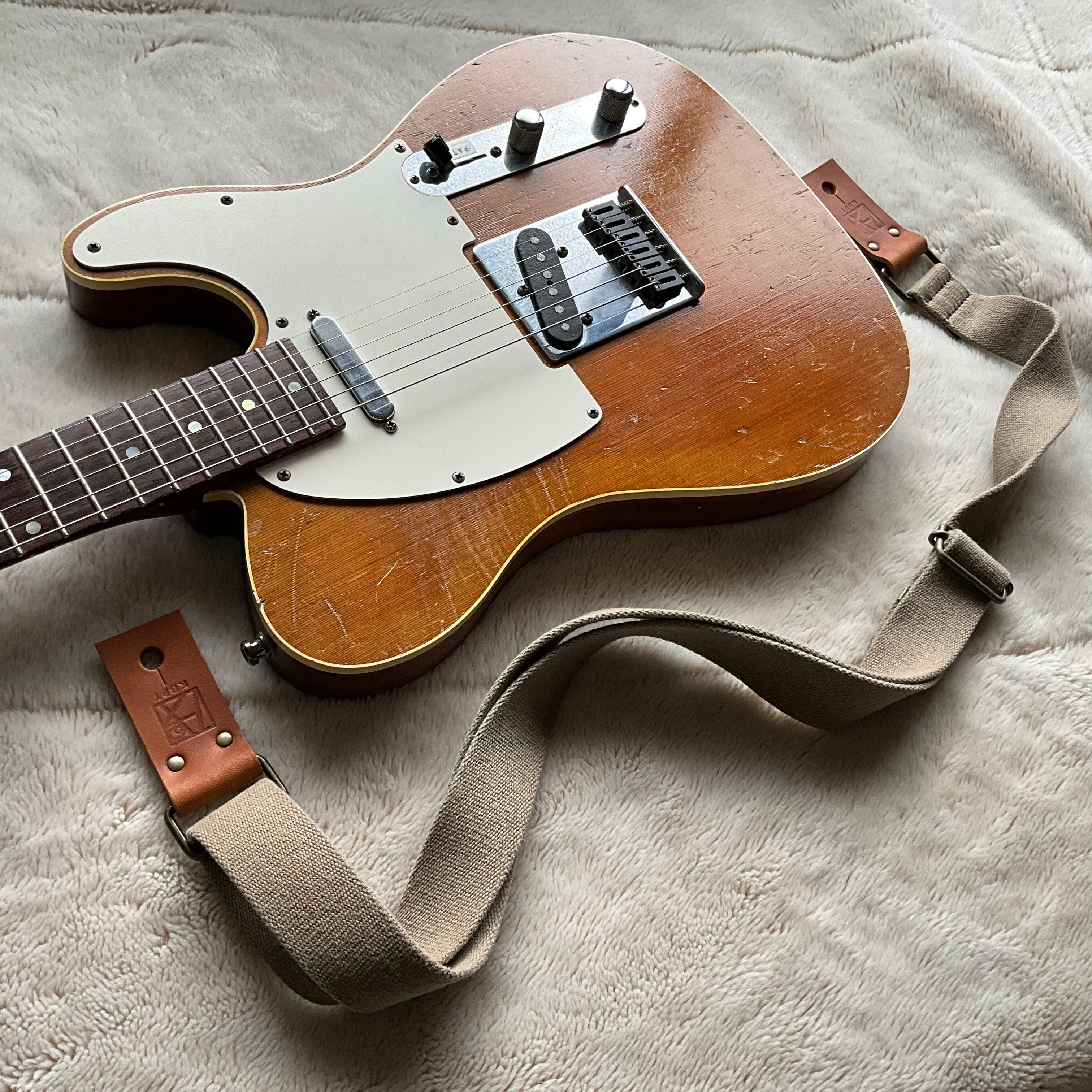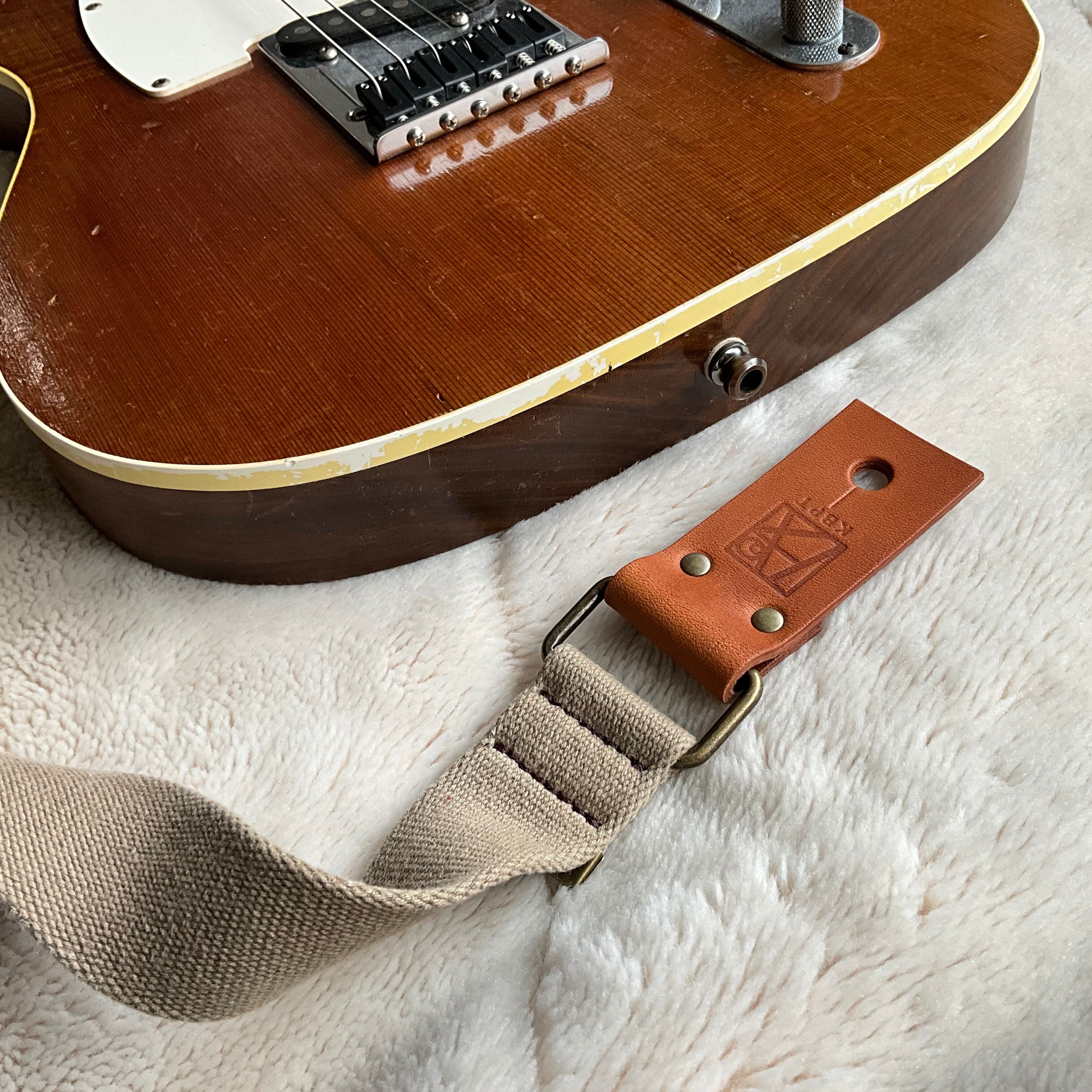 【llama40】オーク*キャメル*アンティーク金具【ピン径8mm/柔らかくて厚い綿のギターストラップ/okcma1LM】
