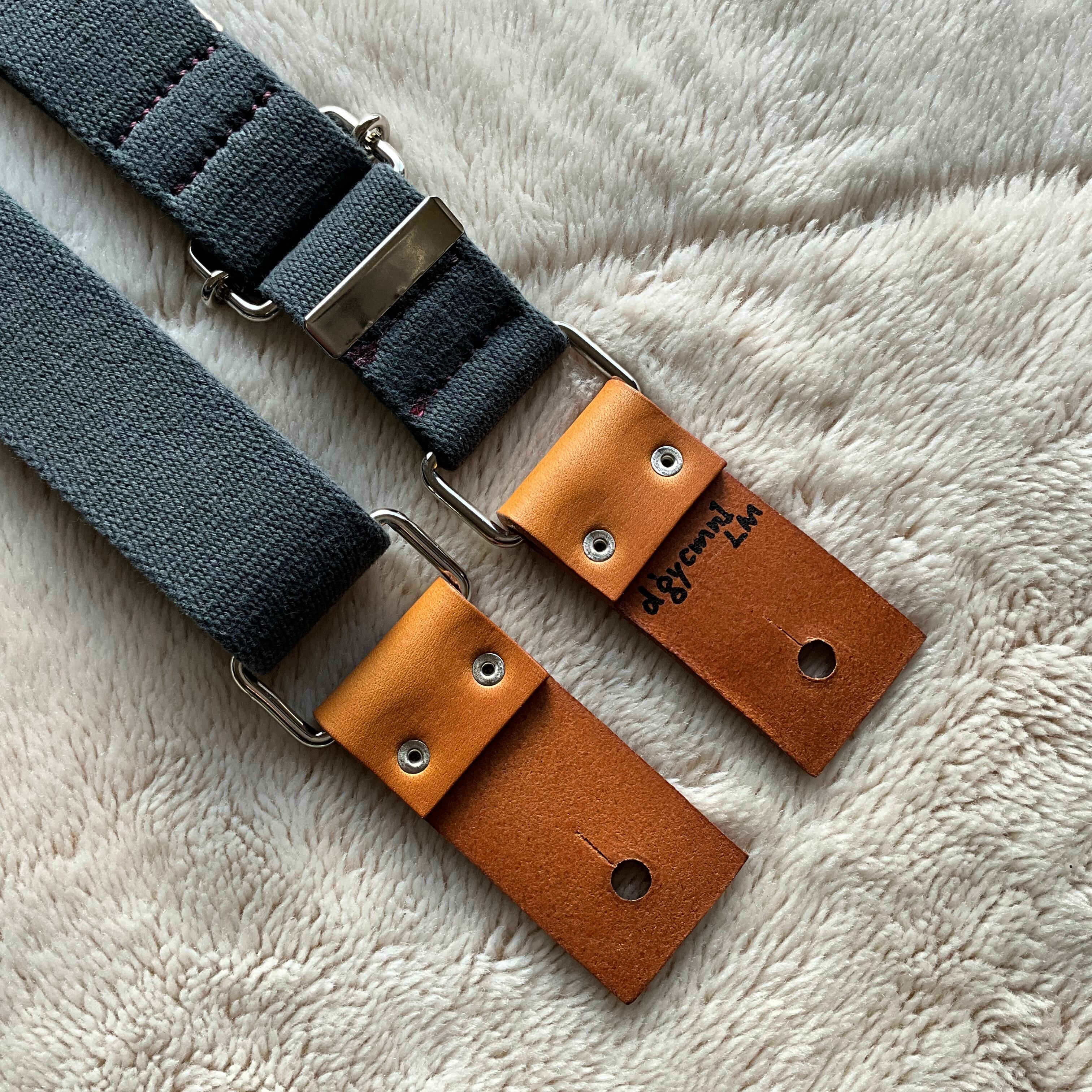 ストラップ・レザー・金具・ステッチ等の組み合わせは気まぐれで決めており、焼印具合やレザーの表情もひとつひとつ異なります。素材の問題で二度と同じ組み合わせで作らない(れない)ものもあります。