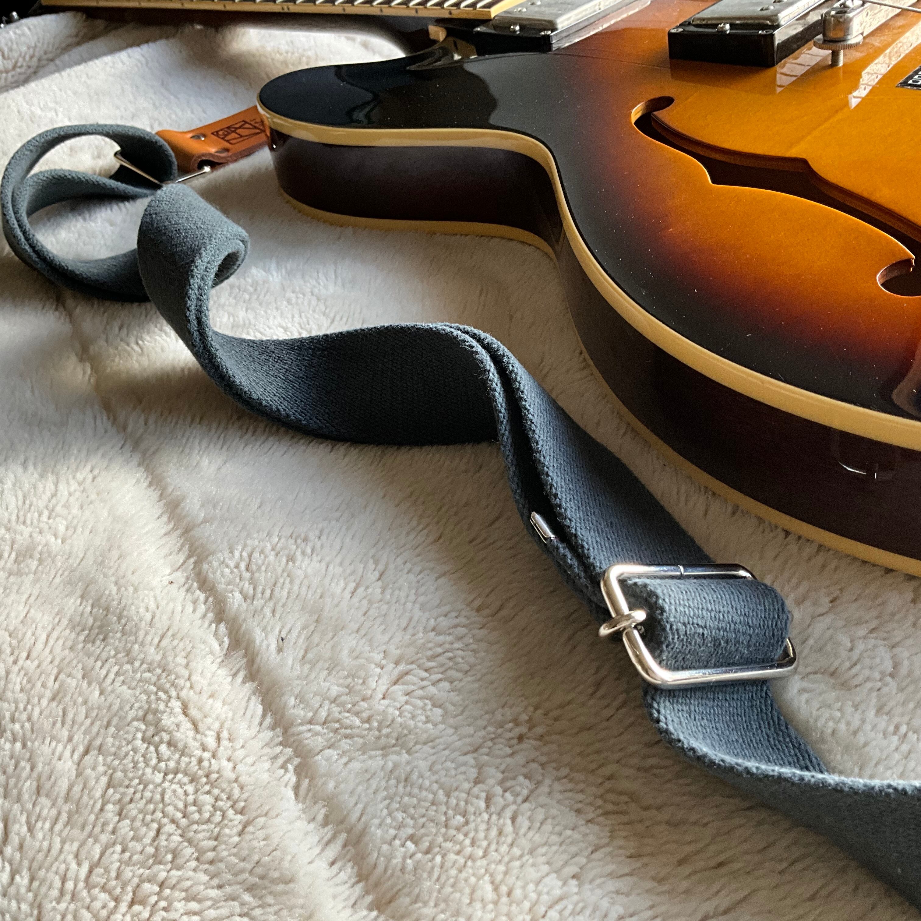 【llama40】ダークグレー*イエローキャメル*ニッケル金具【ピン径8mm/柔らかくて厚い綿のギターストラップ/dgycmn1LM】