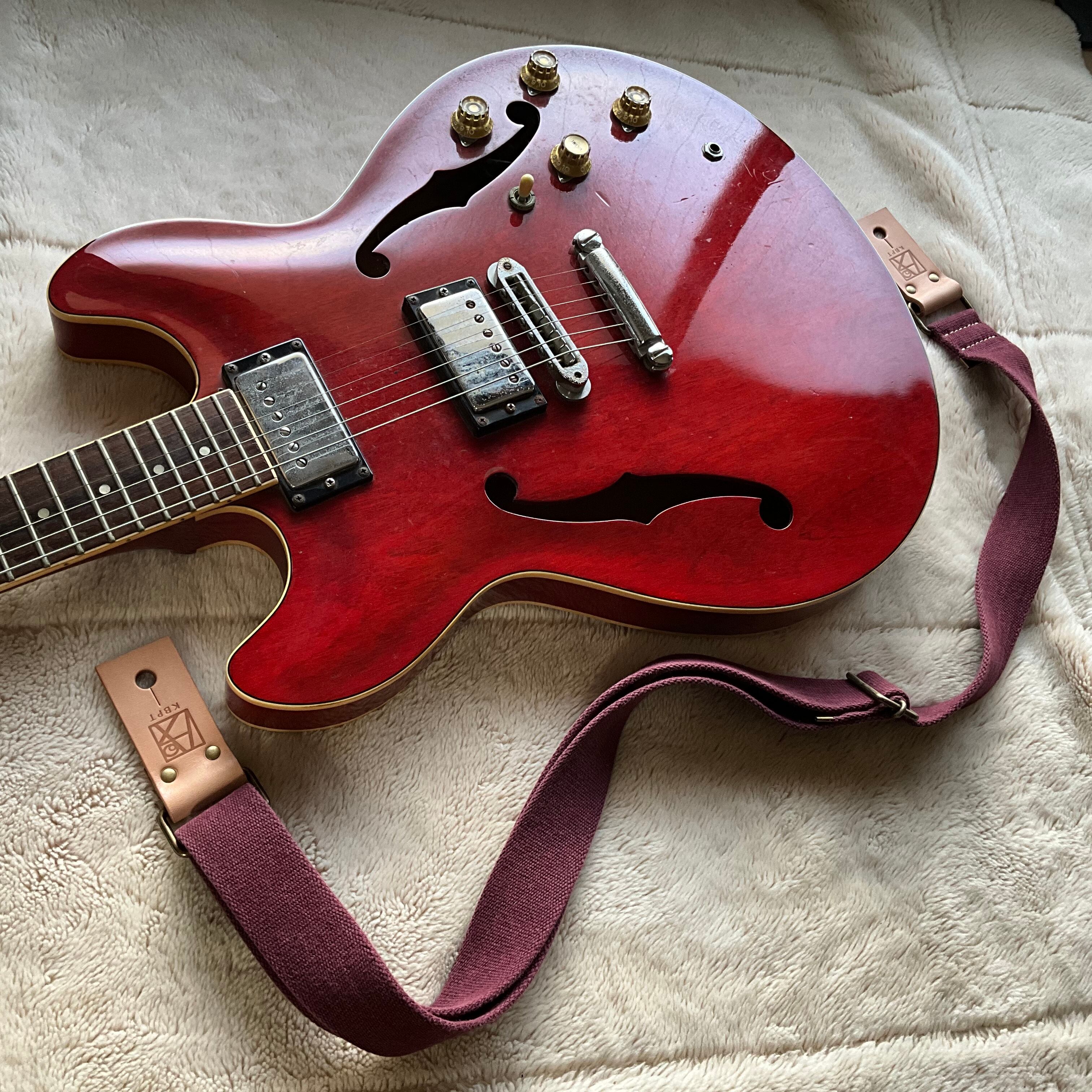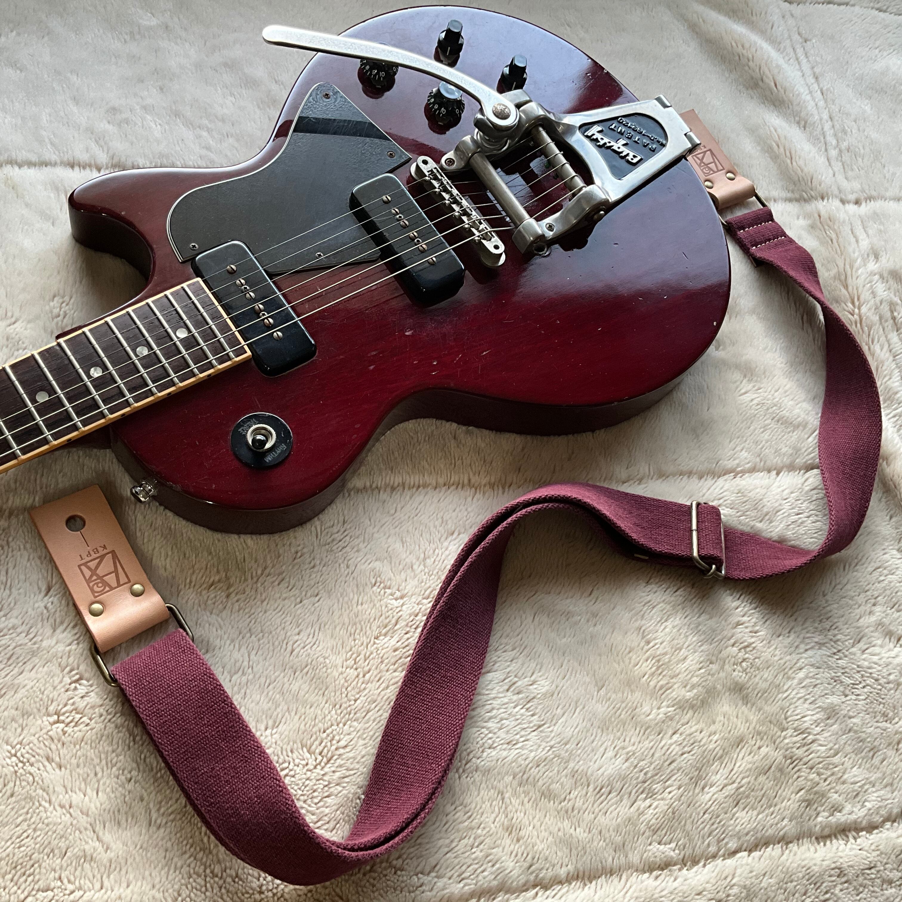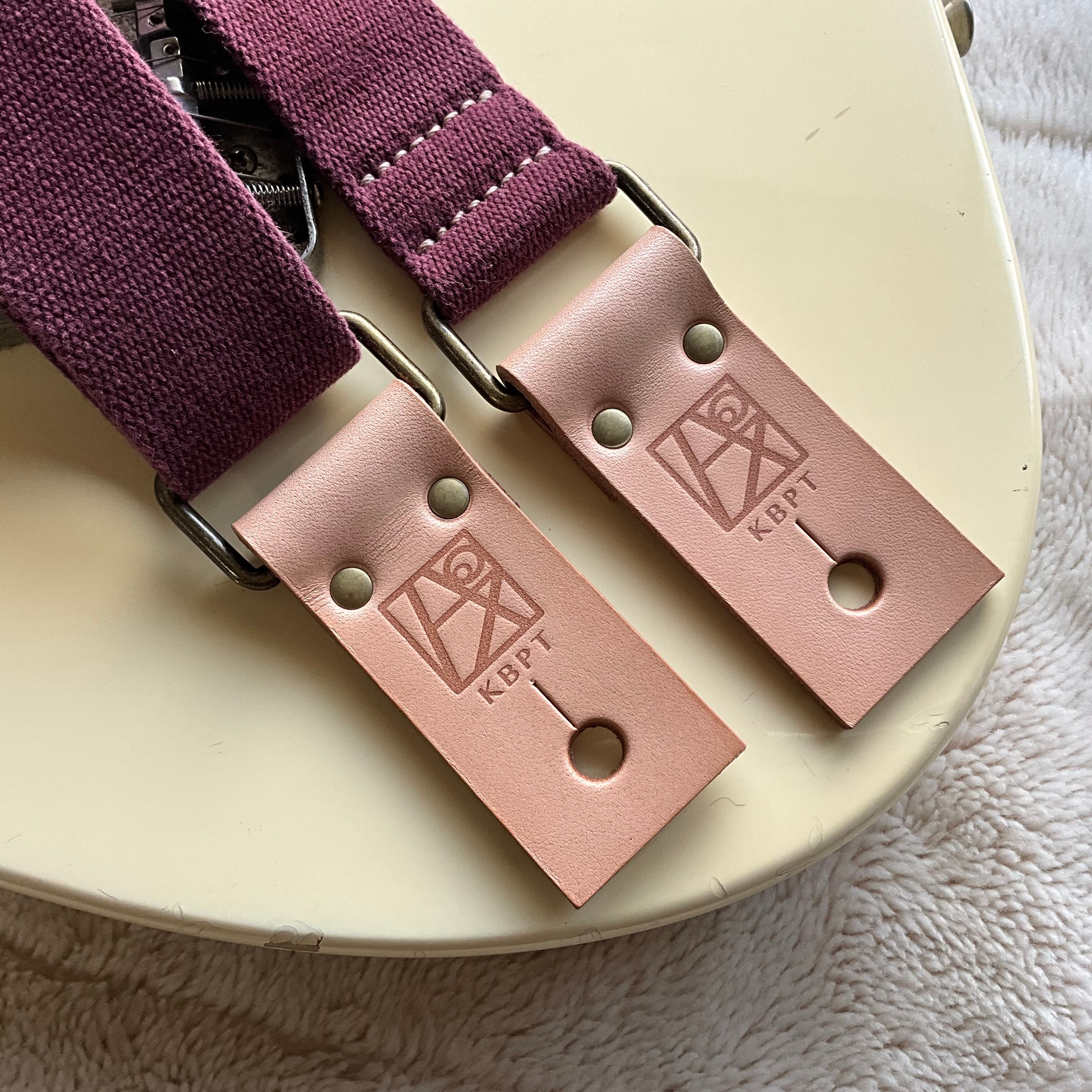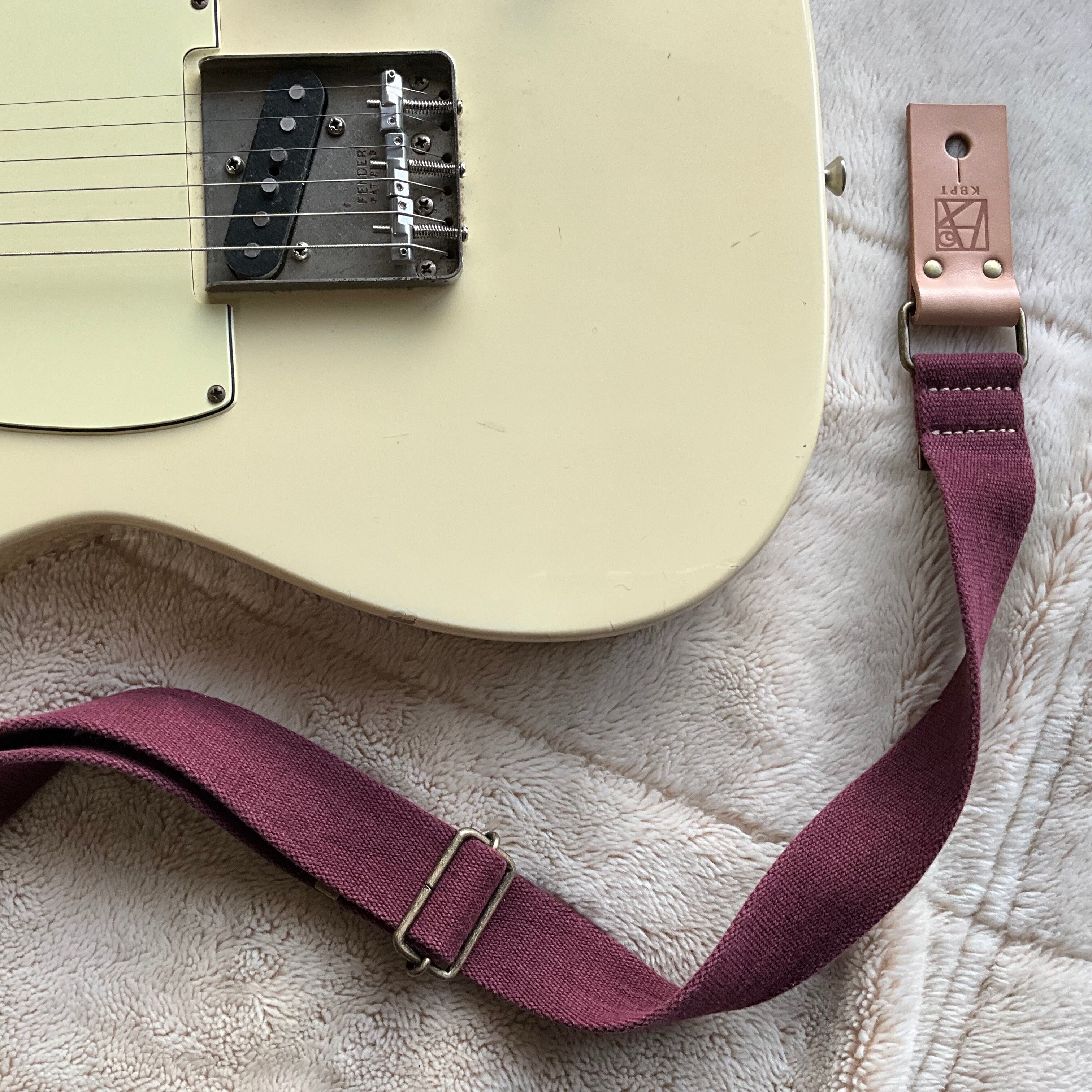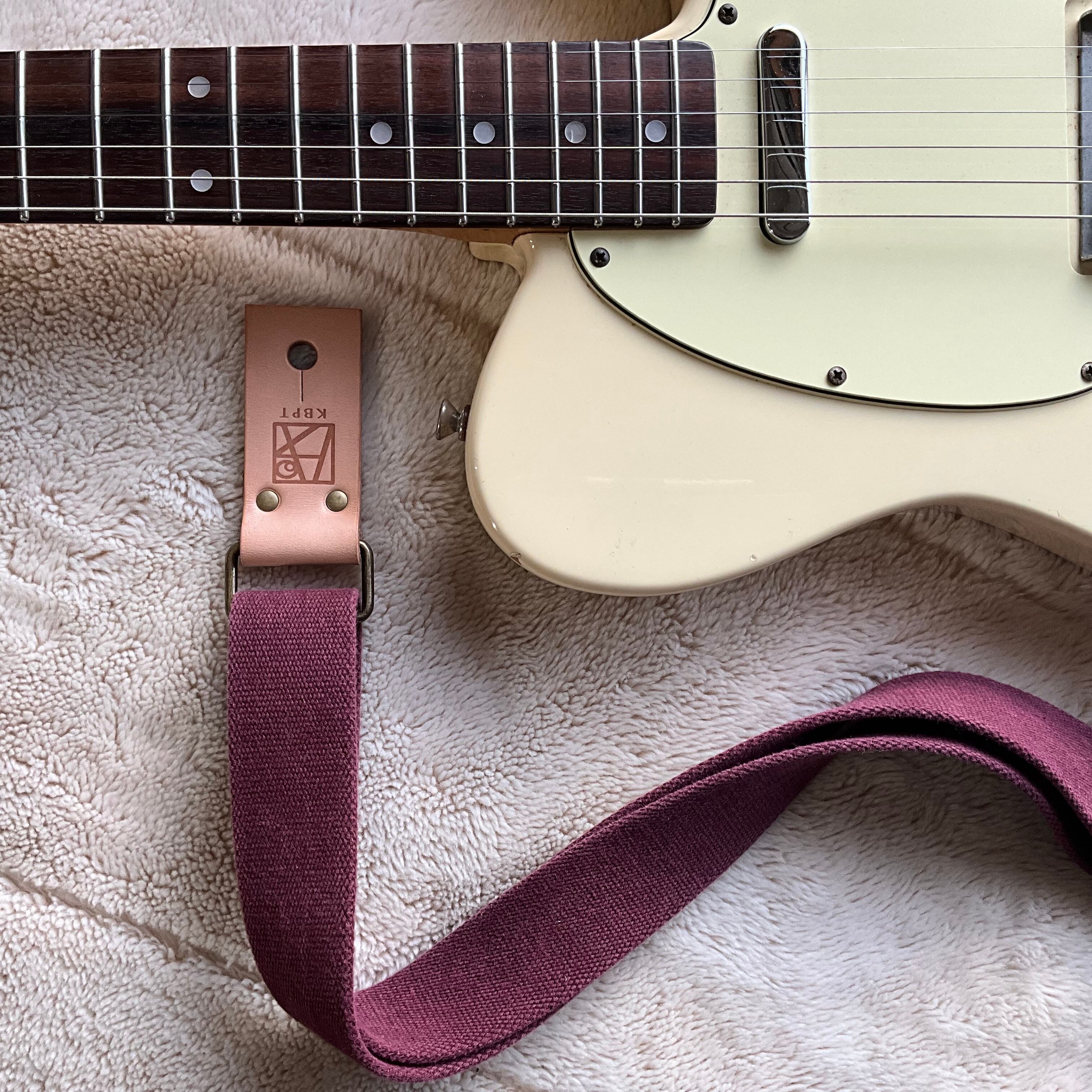 【llama40】ワインレッド*ベージュレザー*アンティーク金具【ピン径8mm/柔らかくて厚い綿のギターストラップ/wrbga1LM】