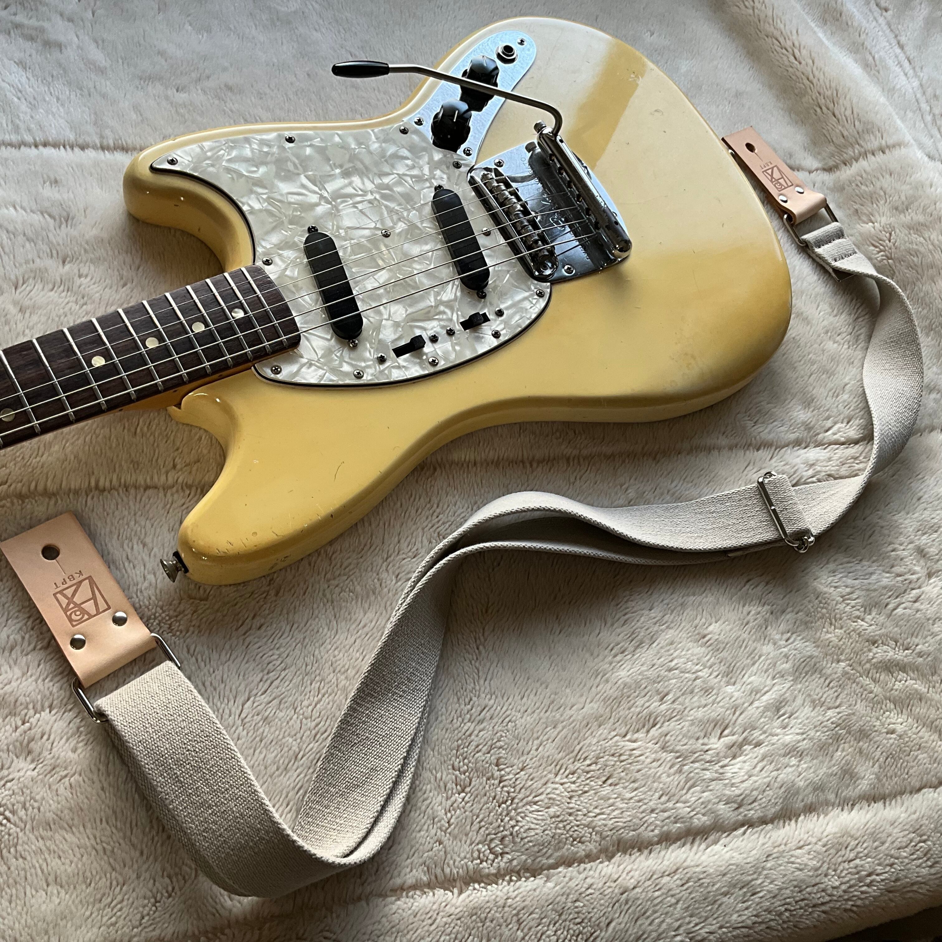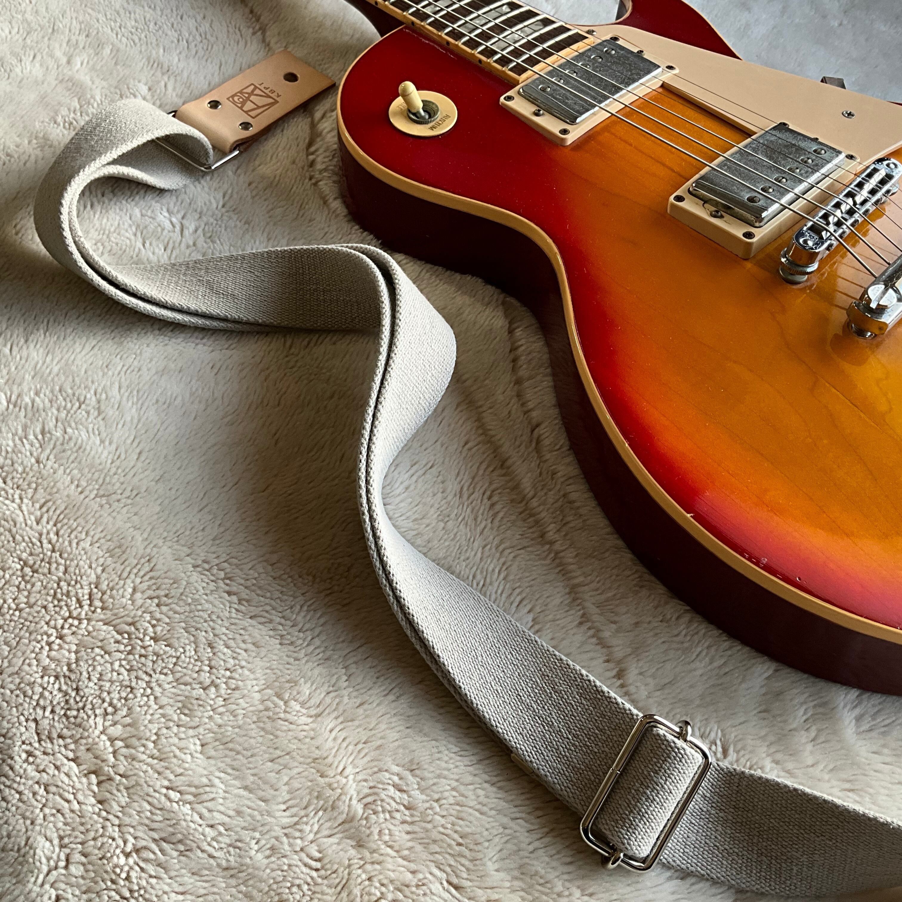 【llama40】アイボリー*エイジドベージュレザー*ニッケル金具【ピン径8mm/柔らかくて厚い綿のギターストラップ/ivabgn1LM】