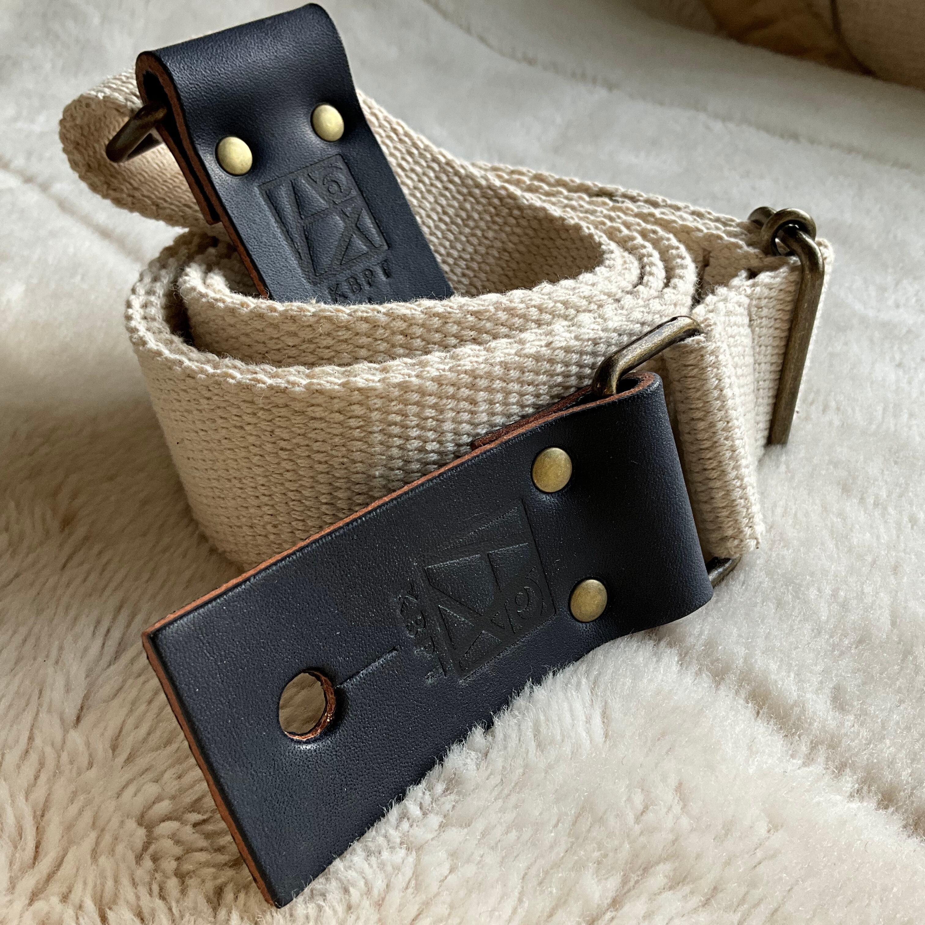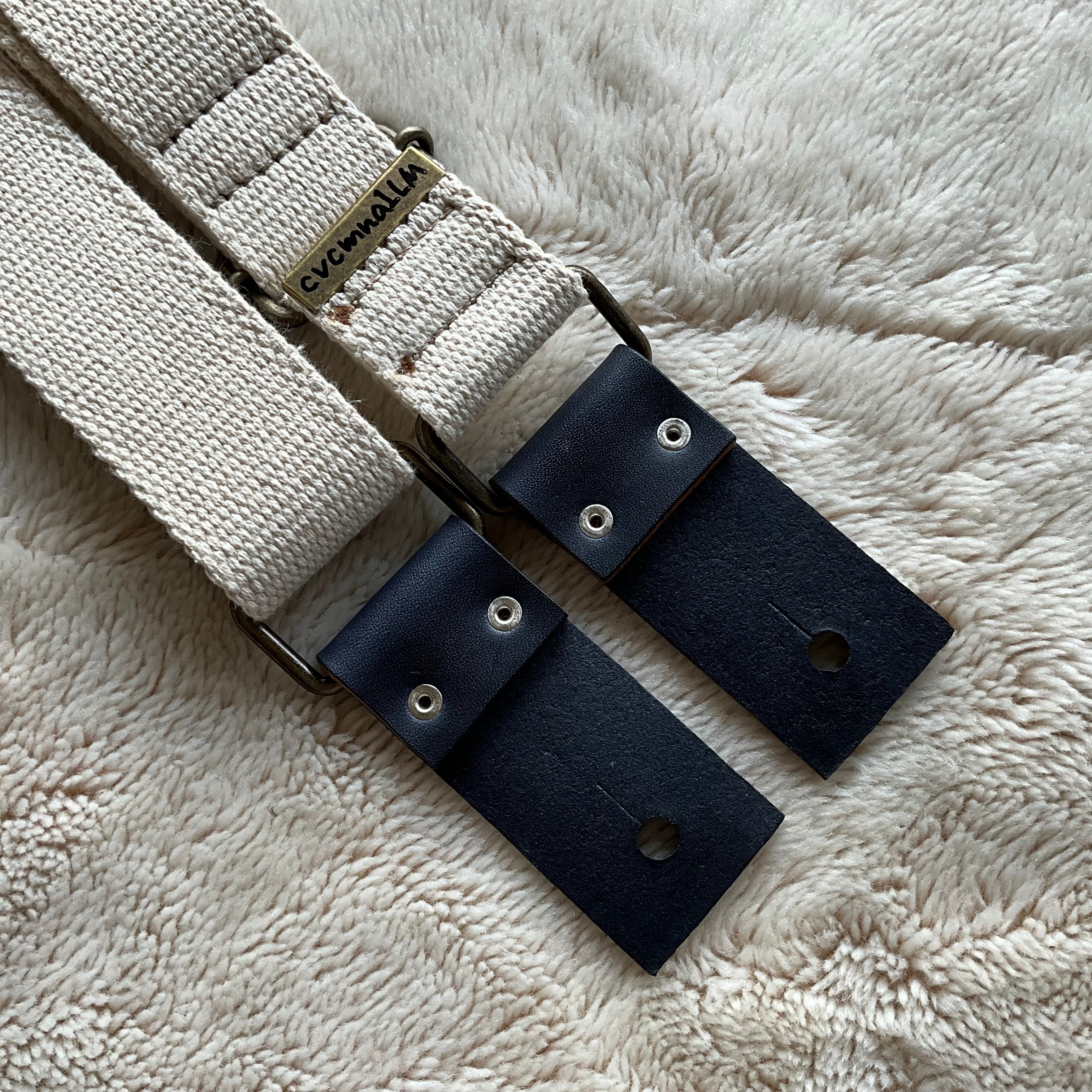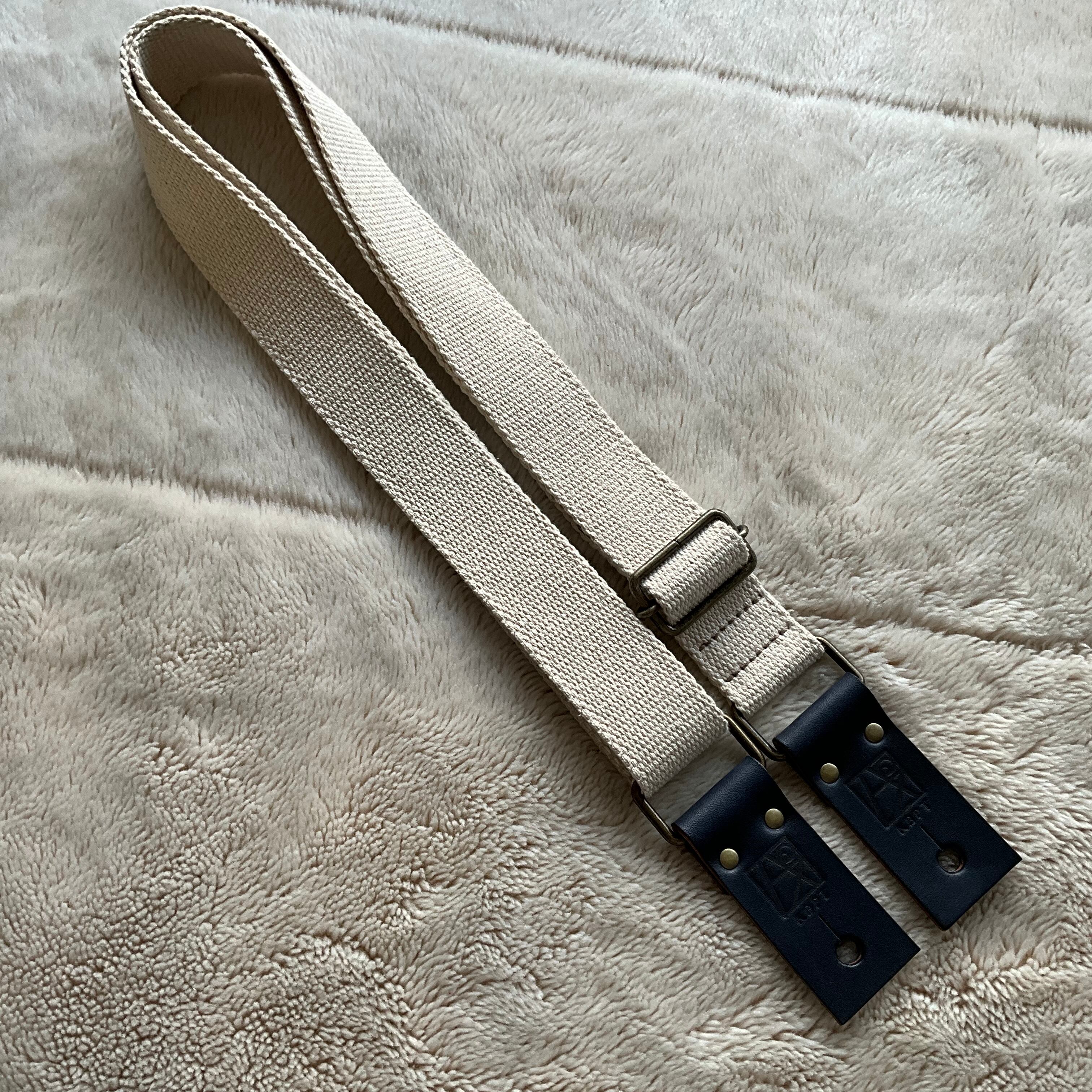 【llama40】キャンバスクリーム*ミッドナイトレザー*アンティーク金具【ピン径8mm/コットンキャンバス素材のギターストラップ/cvcmna1LM】