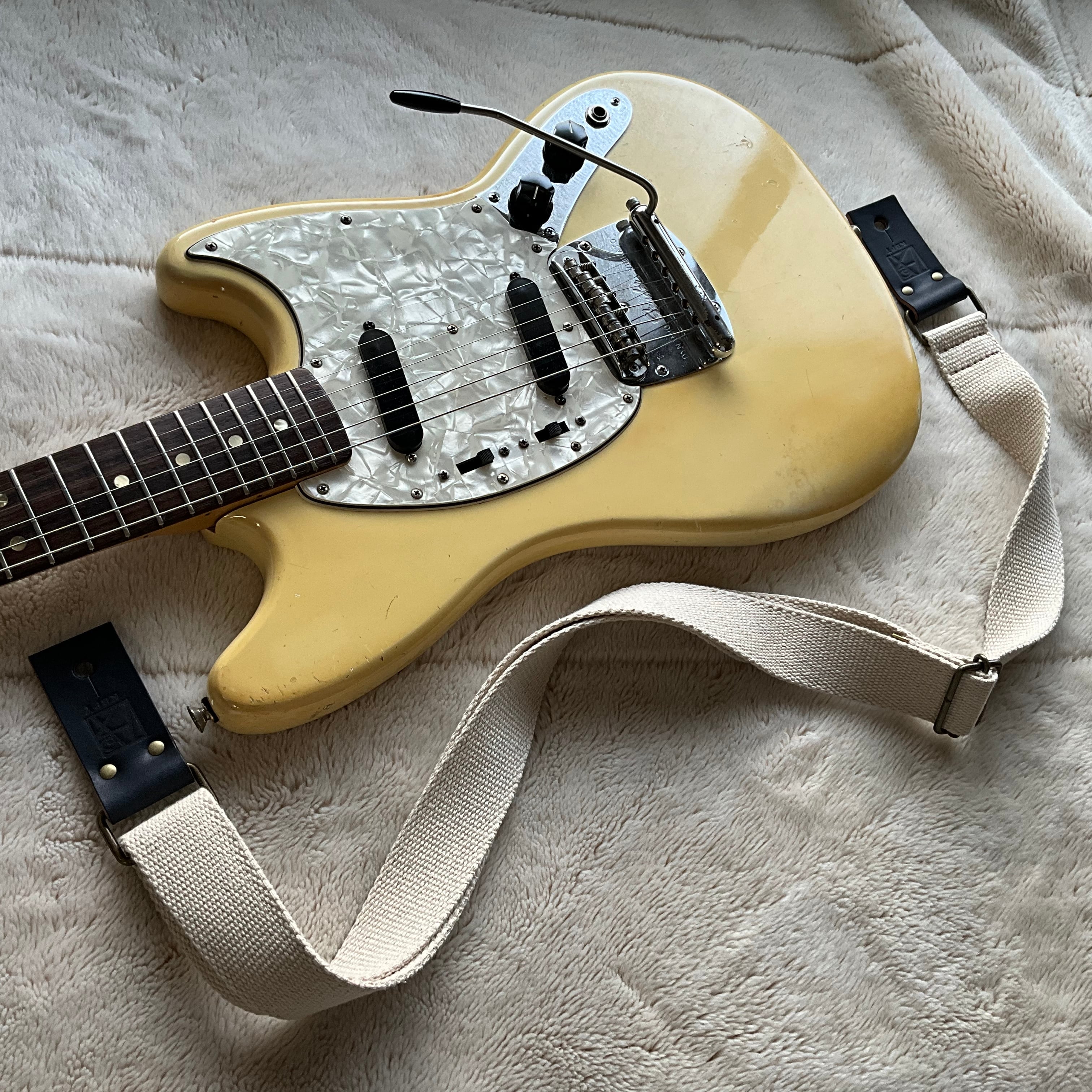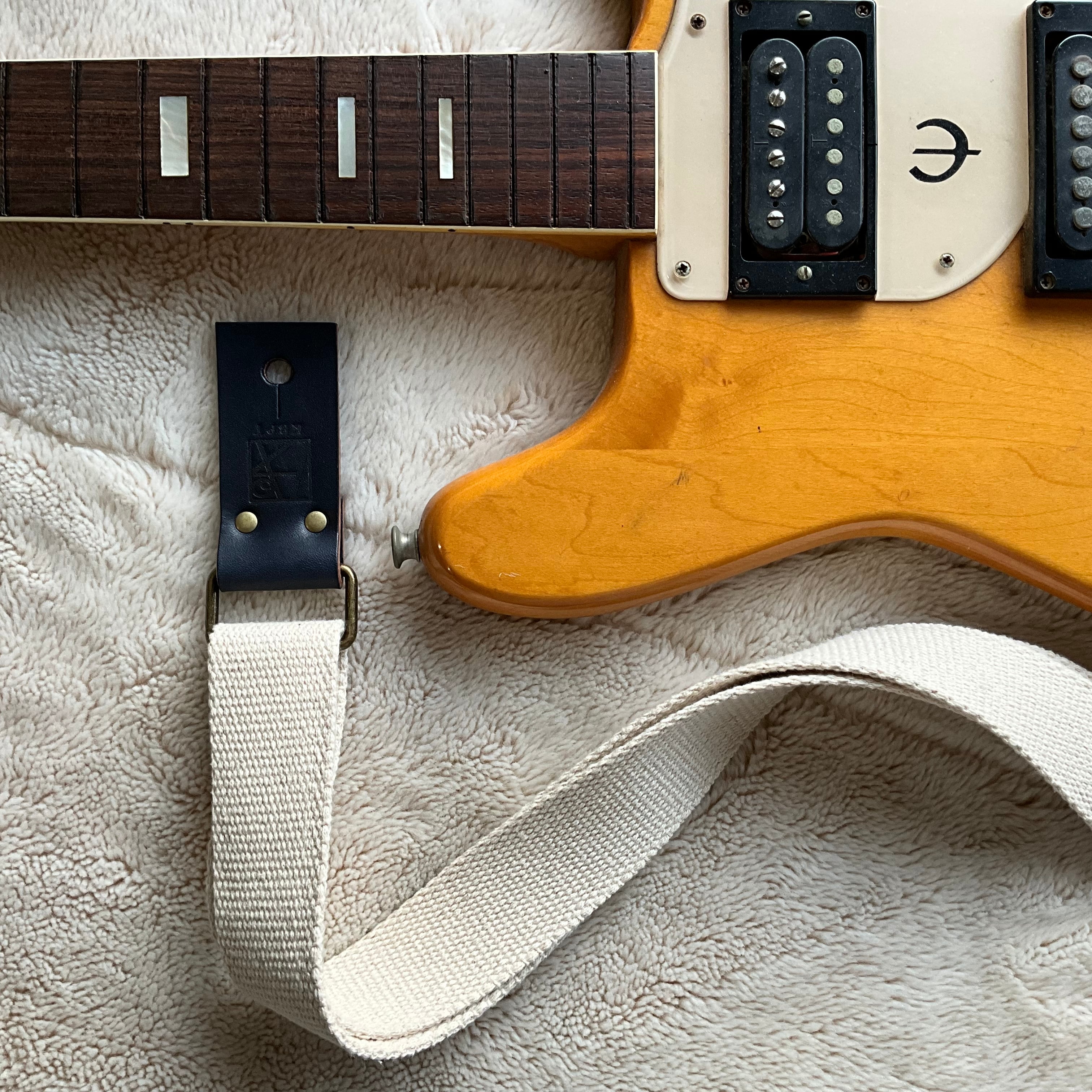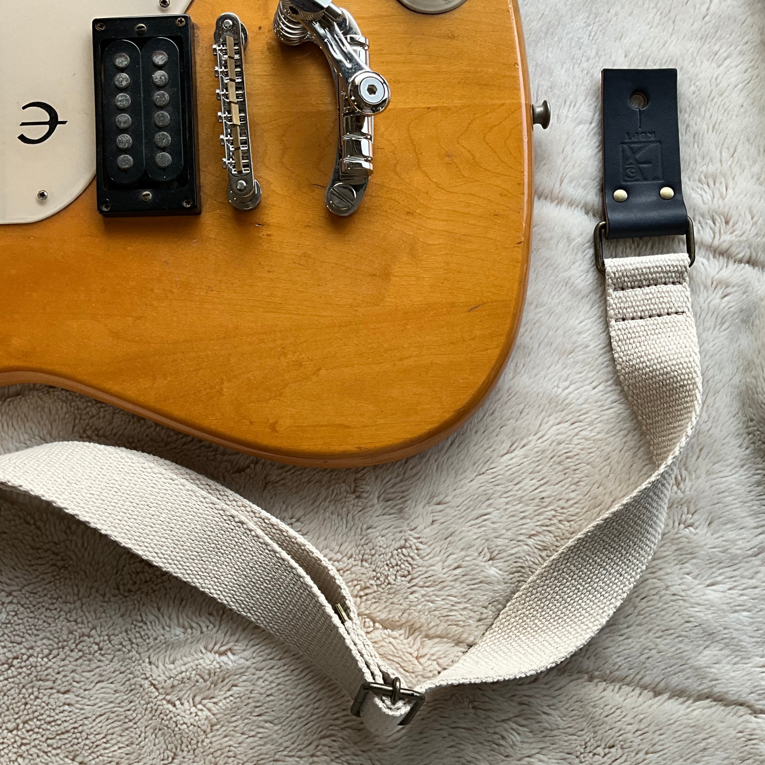 【llama40】キャンバスクリーム*ミッドナイトレザー*アンティーク金具【ピン径8mm/コットンキャンバス素材のギターストラップ/cvcmna1LM】