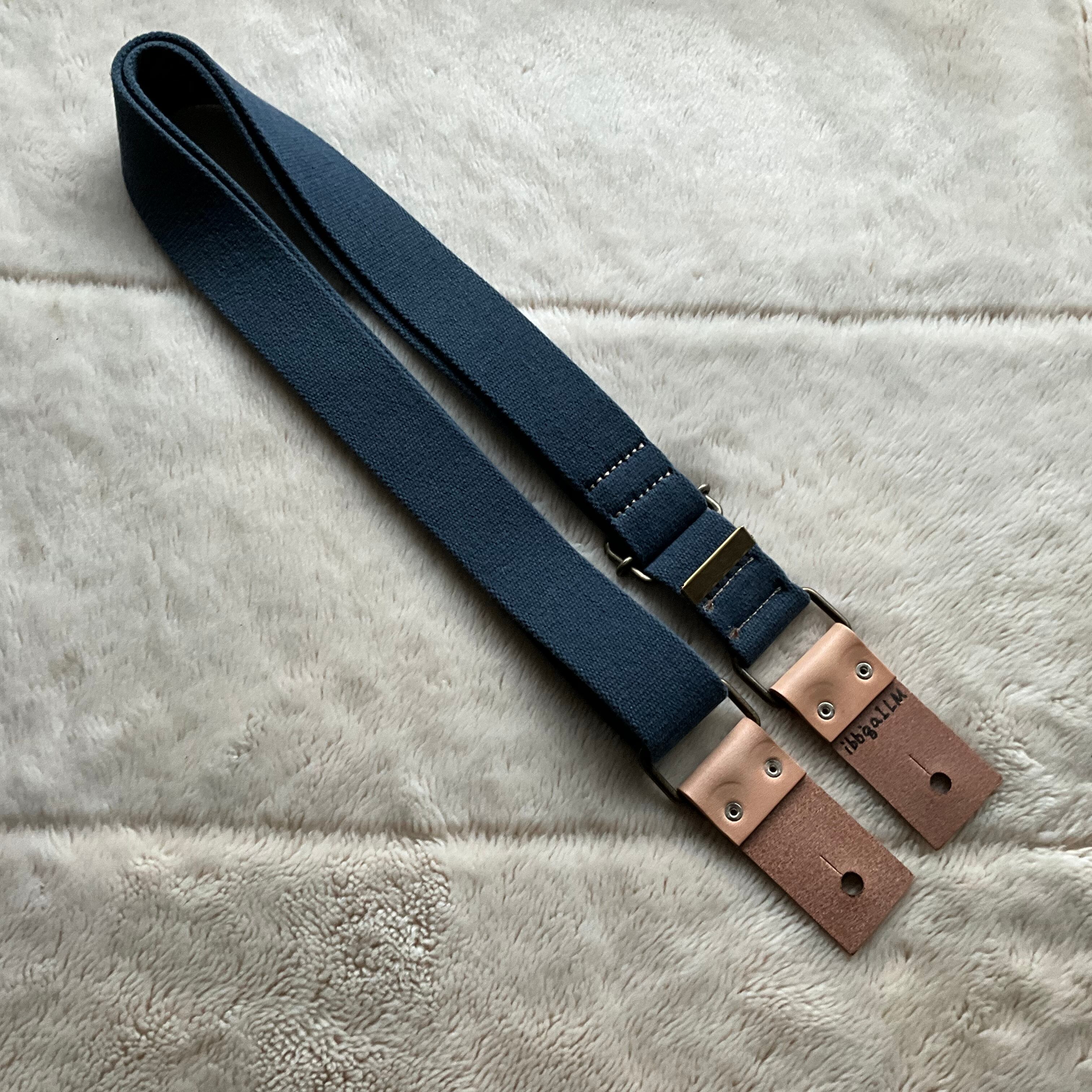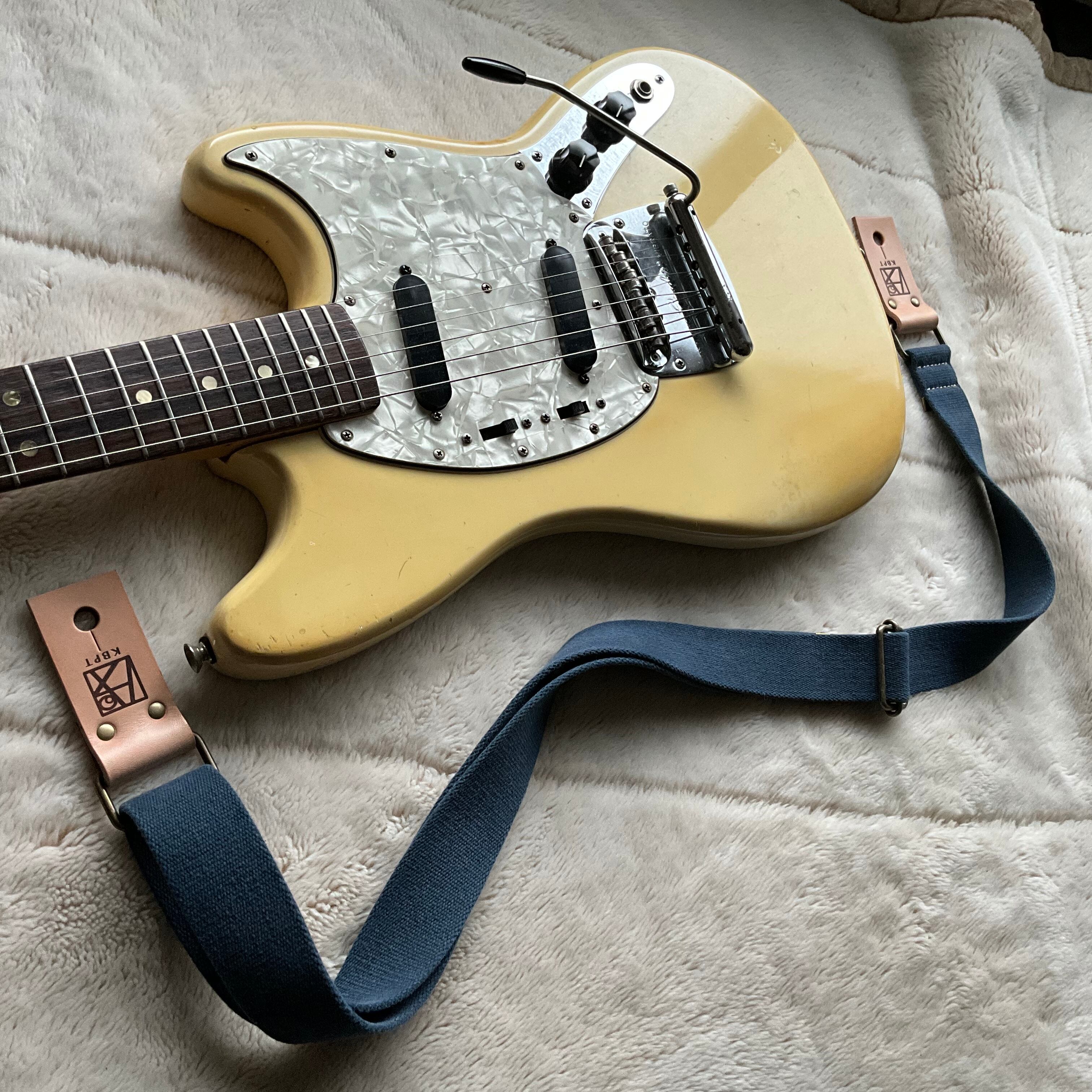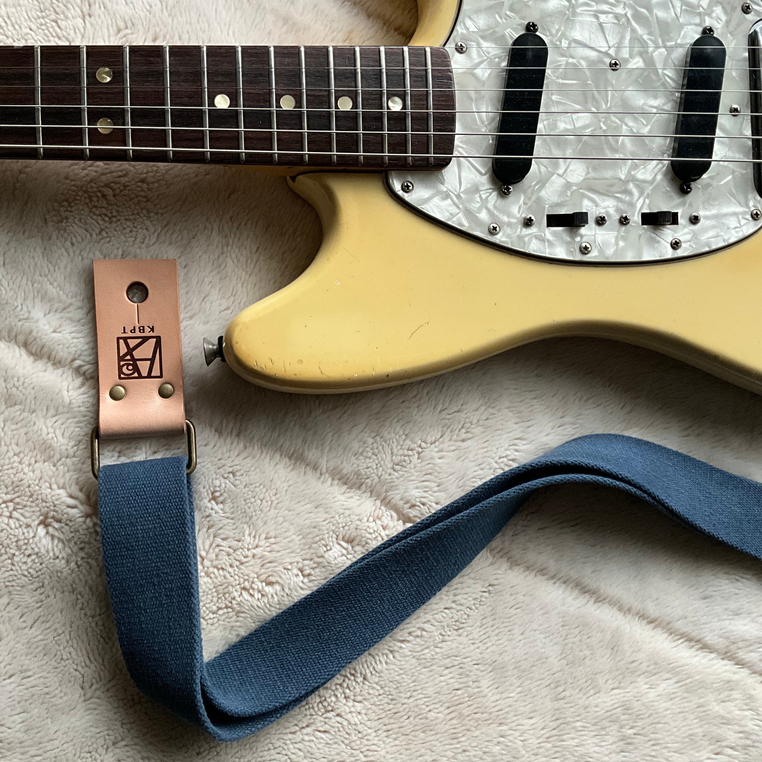 【llama40】アイアンブルー*ベージュレザー*アンティーク金具【ピン径8mm/柔らかくて厚い綿のギターストラップ/ibbga1LM】