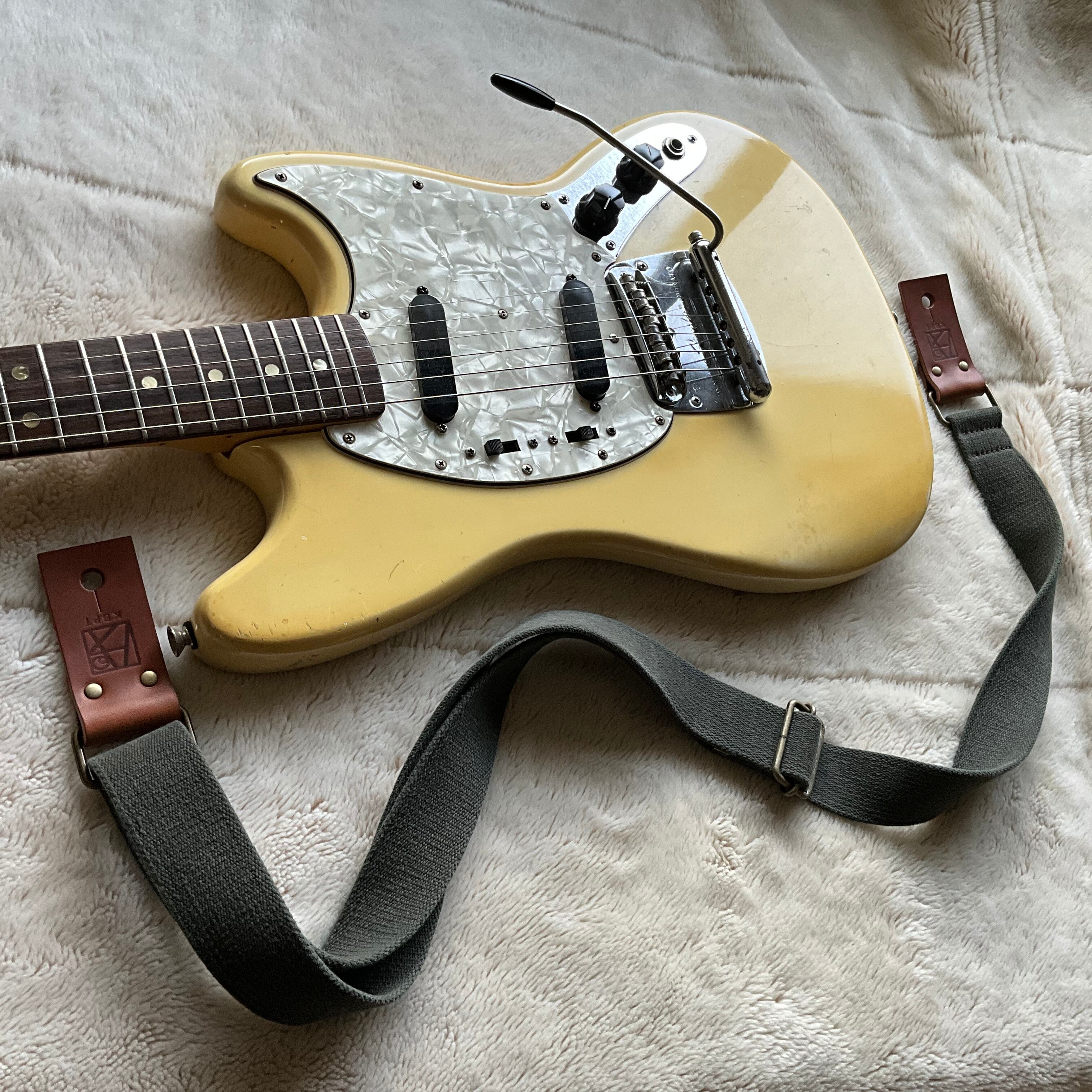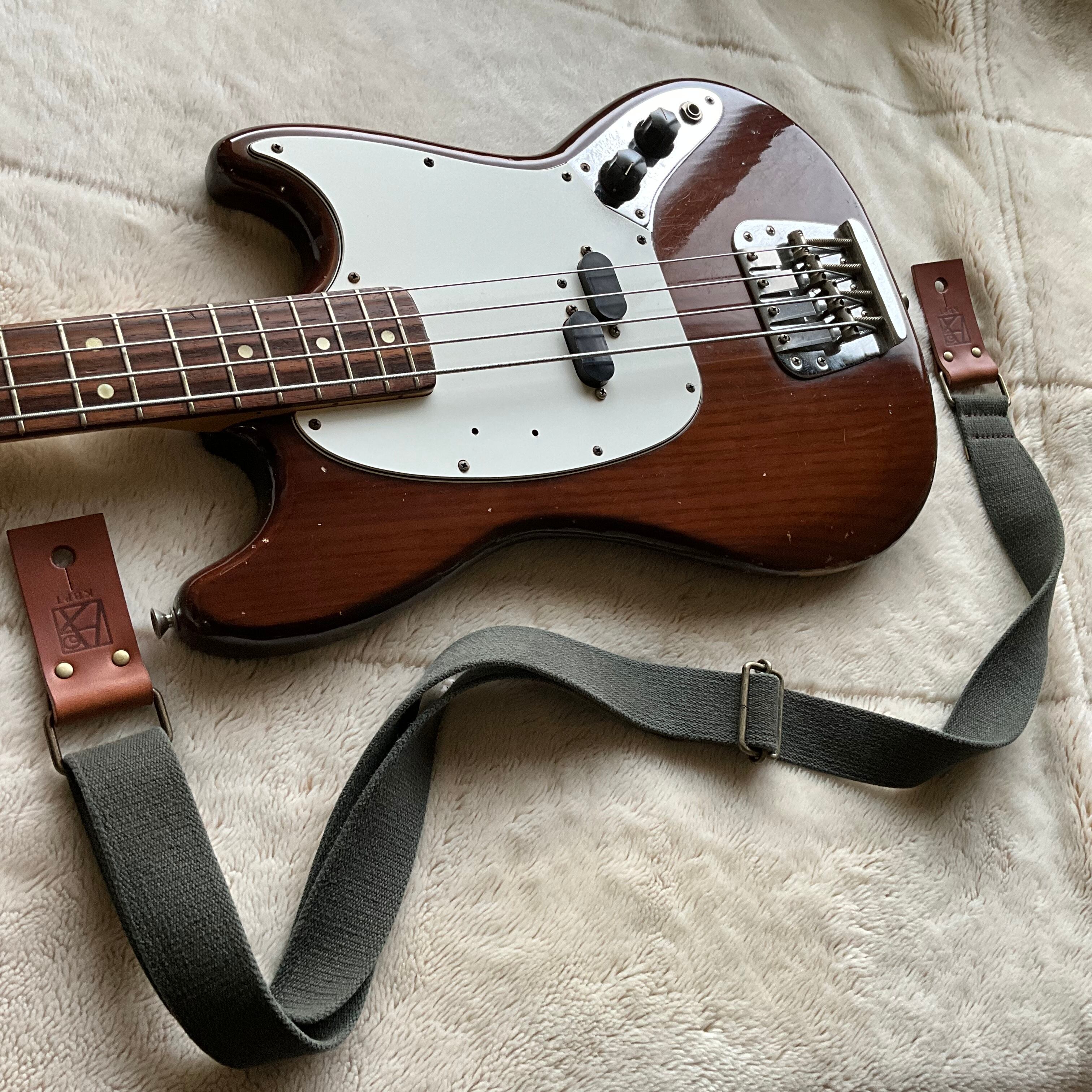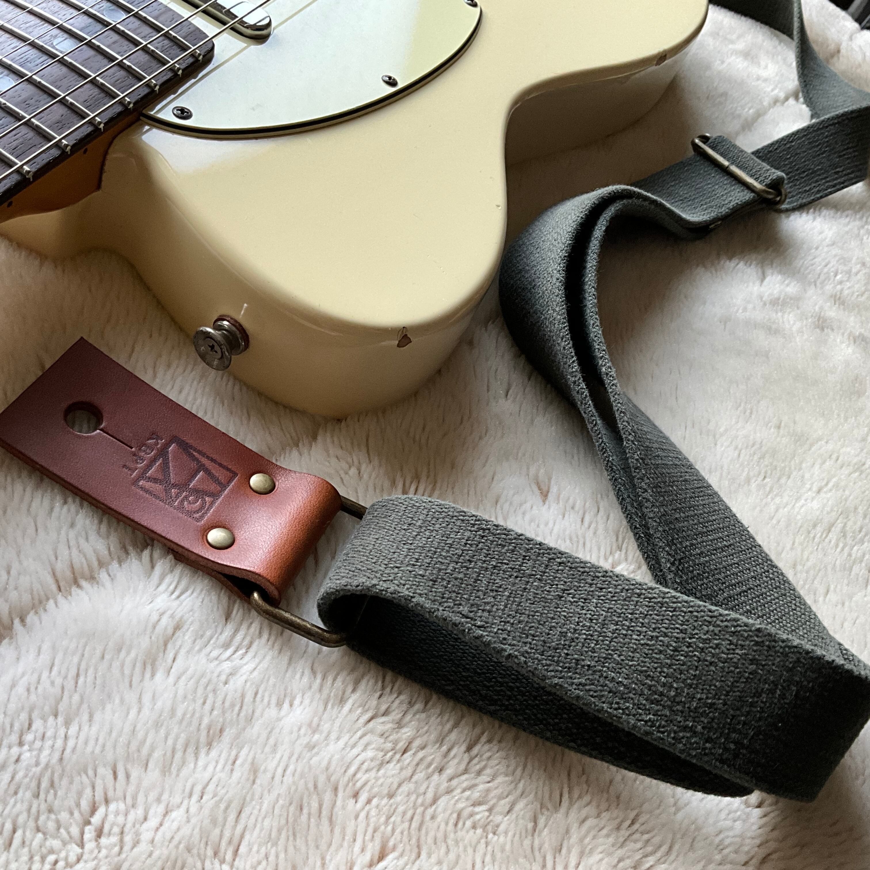 【llama40】ダークカーキ*キャメルレザー*アンティーク金具【ピン径8mm/柔らかくて厚い綿のギターストラップ/dkcma1LM】