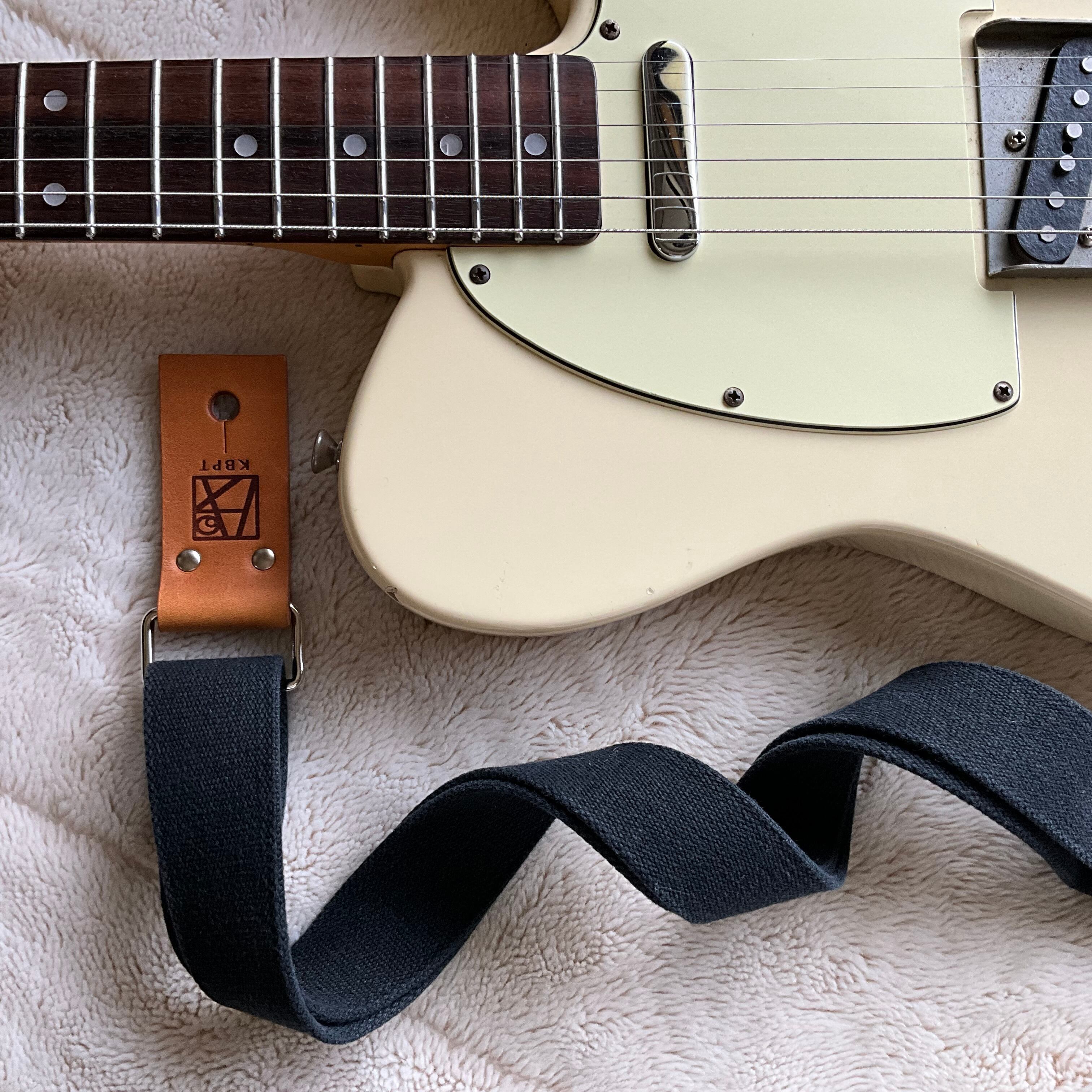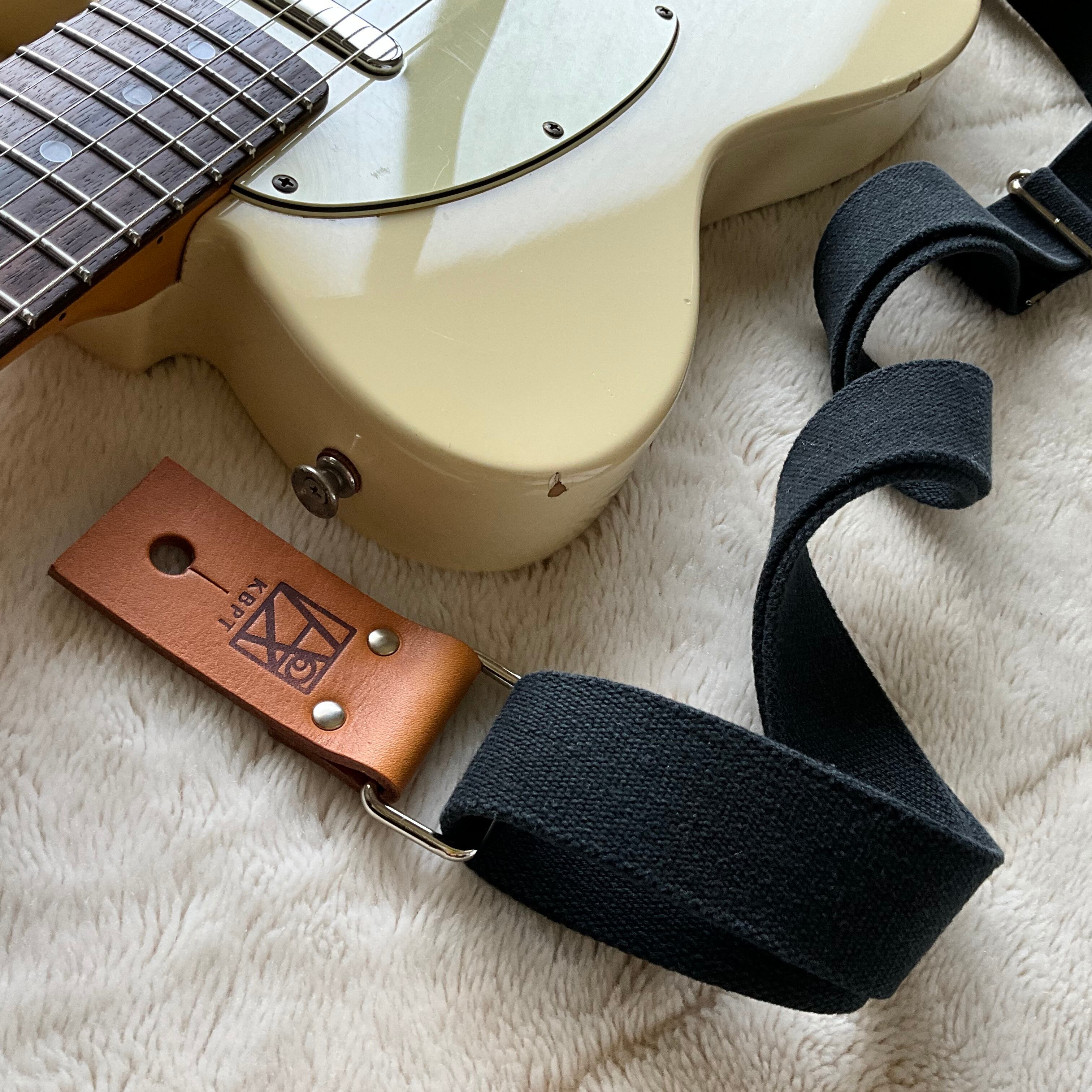 【llama40】チャコール*イエローキャメルレザー*ニッケル金具【ピン径8mm/柔らかくて厚い綿のギターストラップ/ccycmn1LM】
