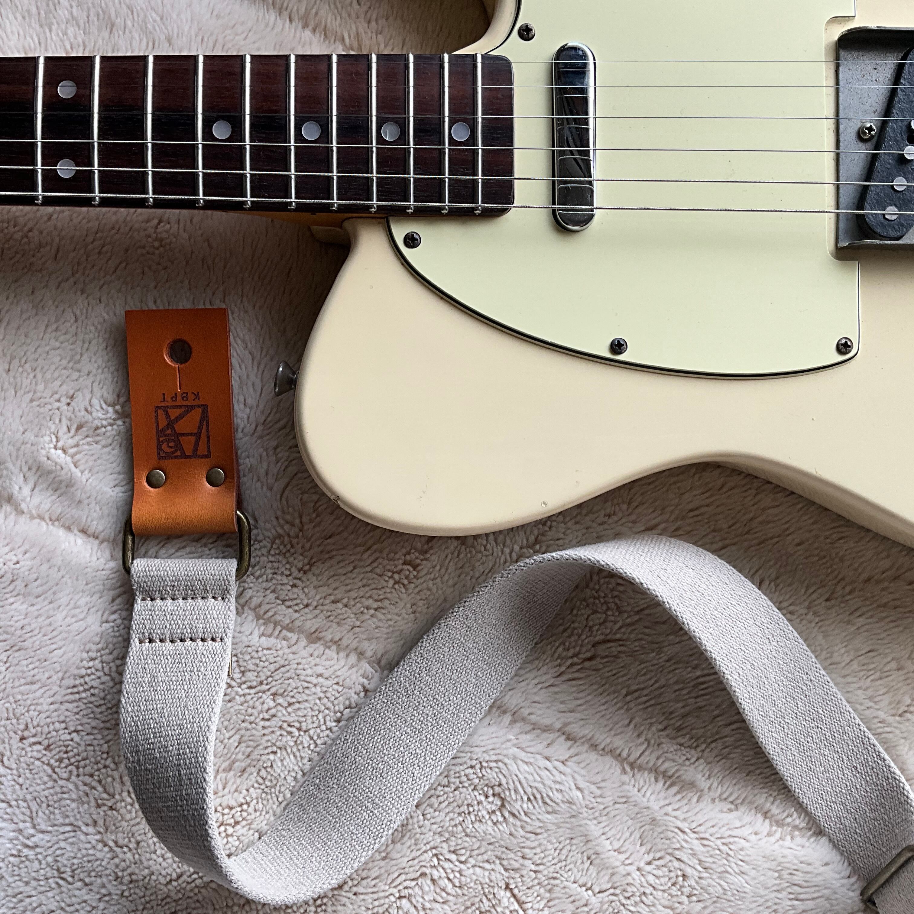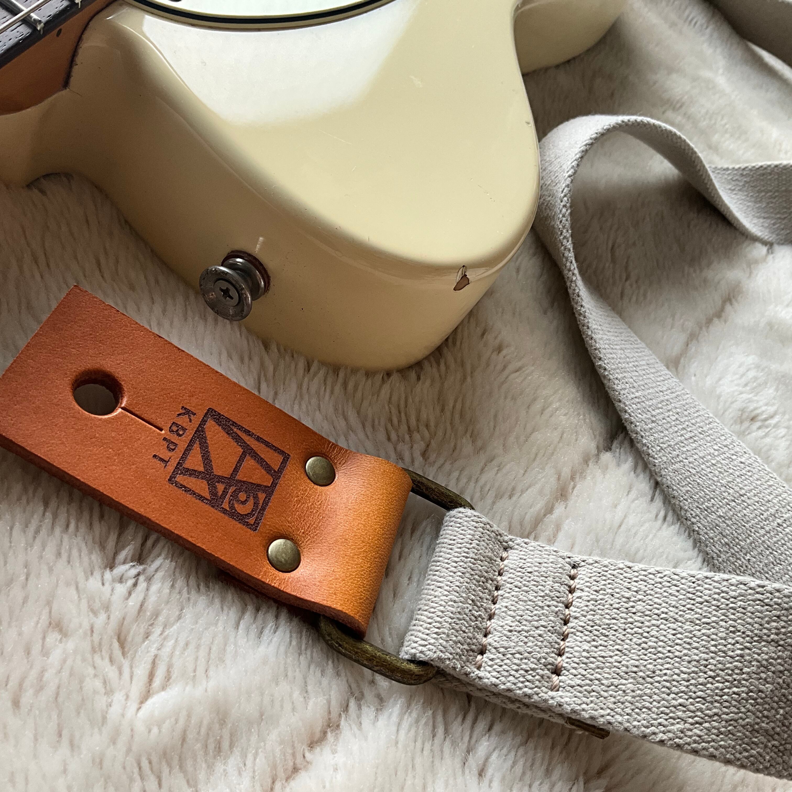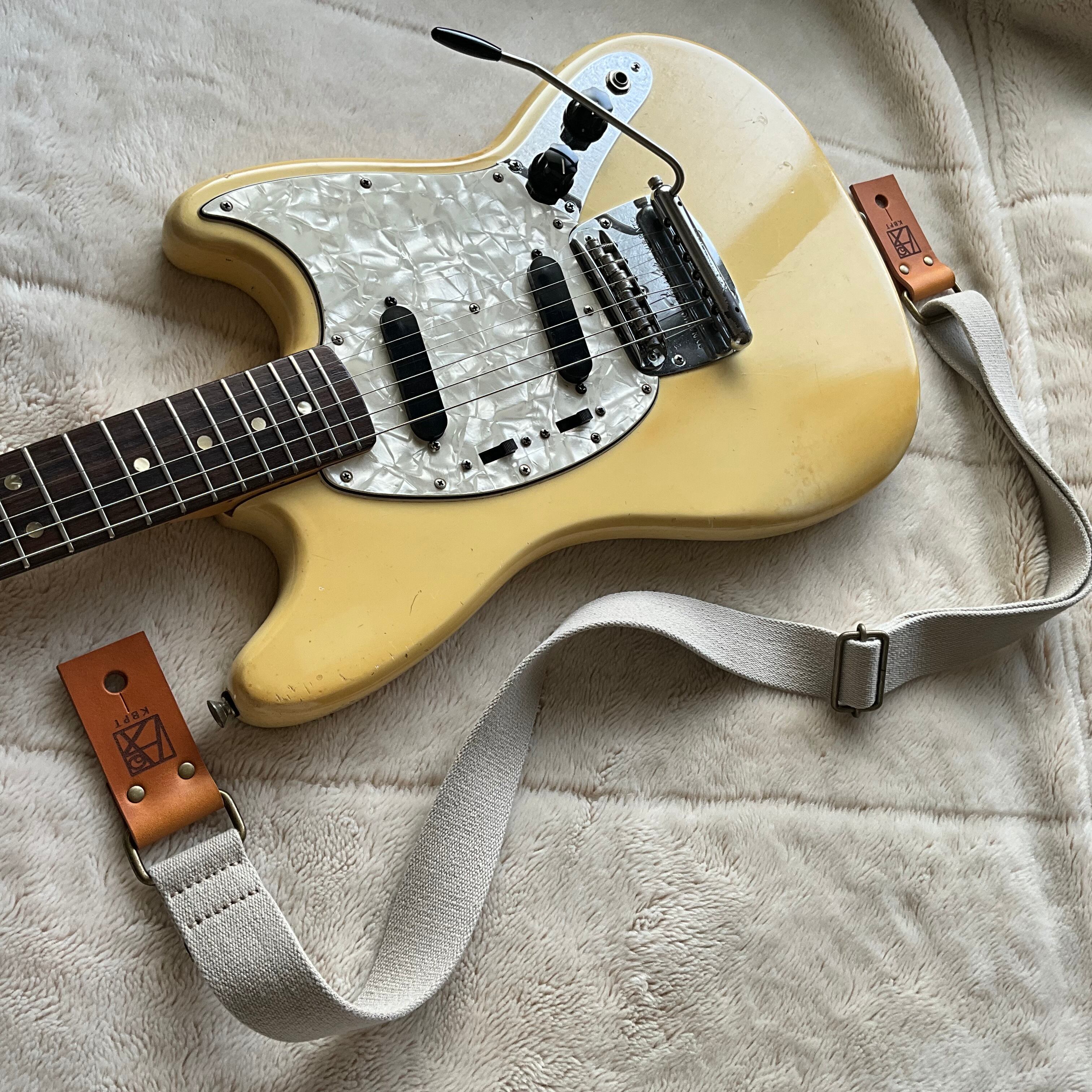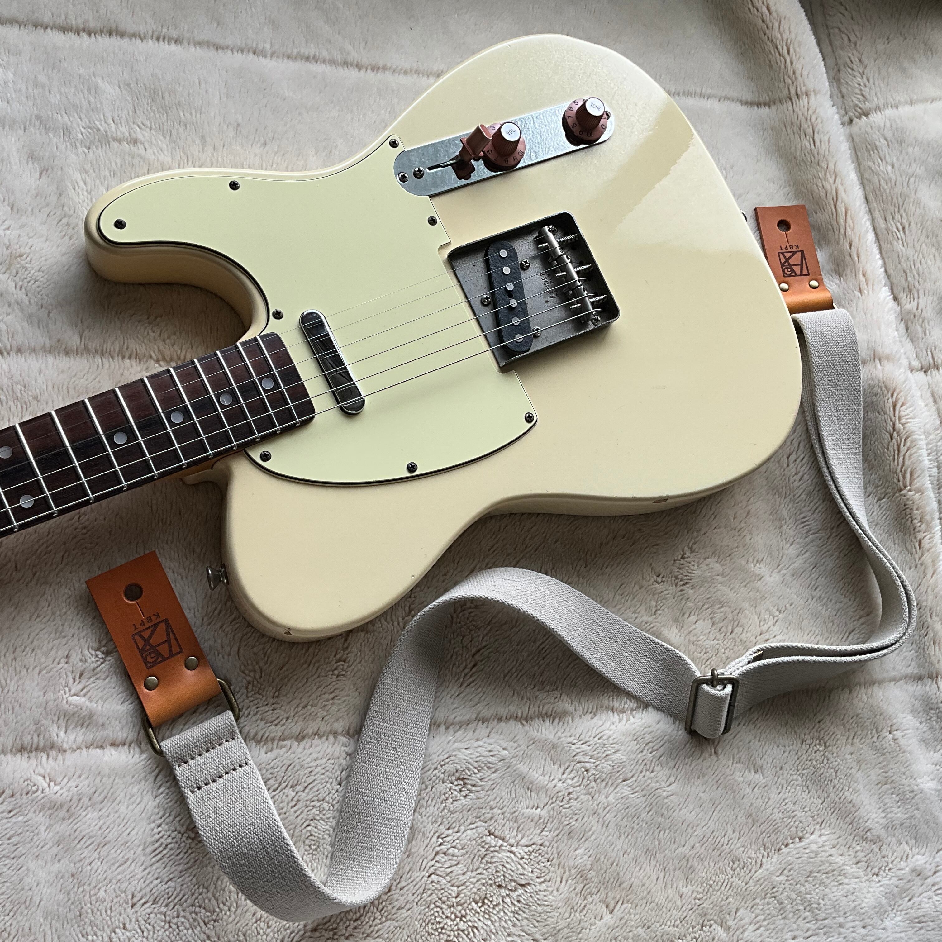 【llama40】アイボリー*イエローキャメルレザー*ニッケル金具【ピン径8mm/柔らかくて厚い綿のギターストラップ/ivycma1LM】