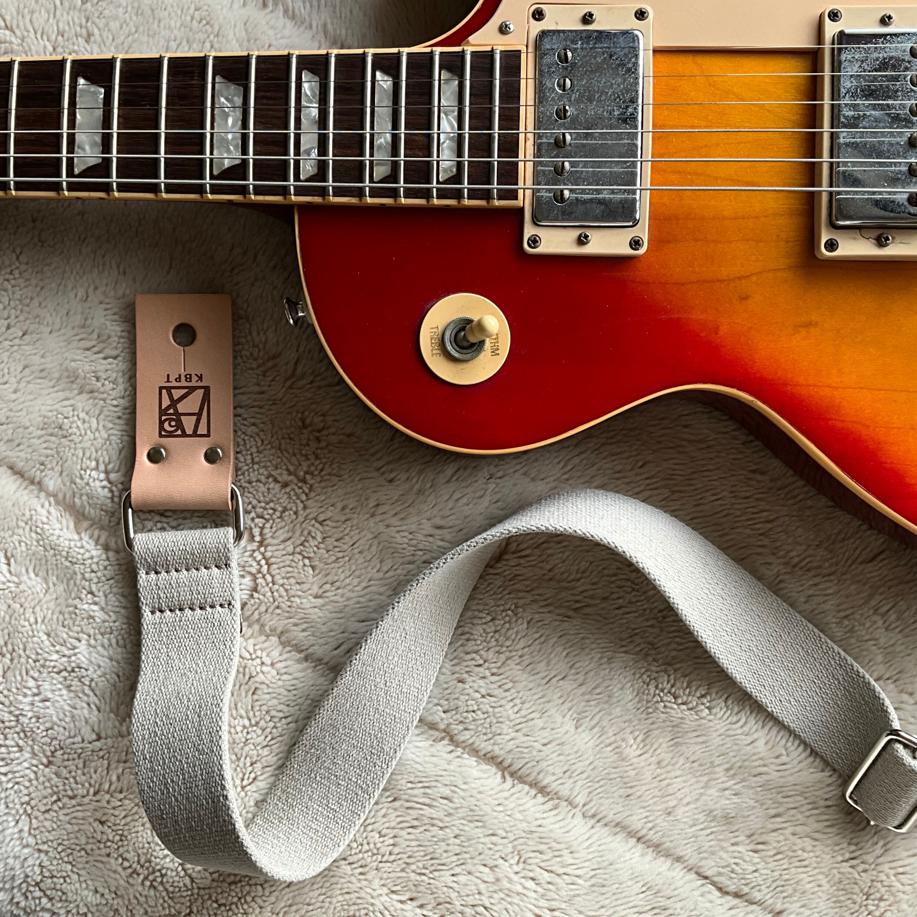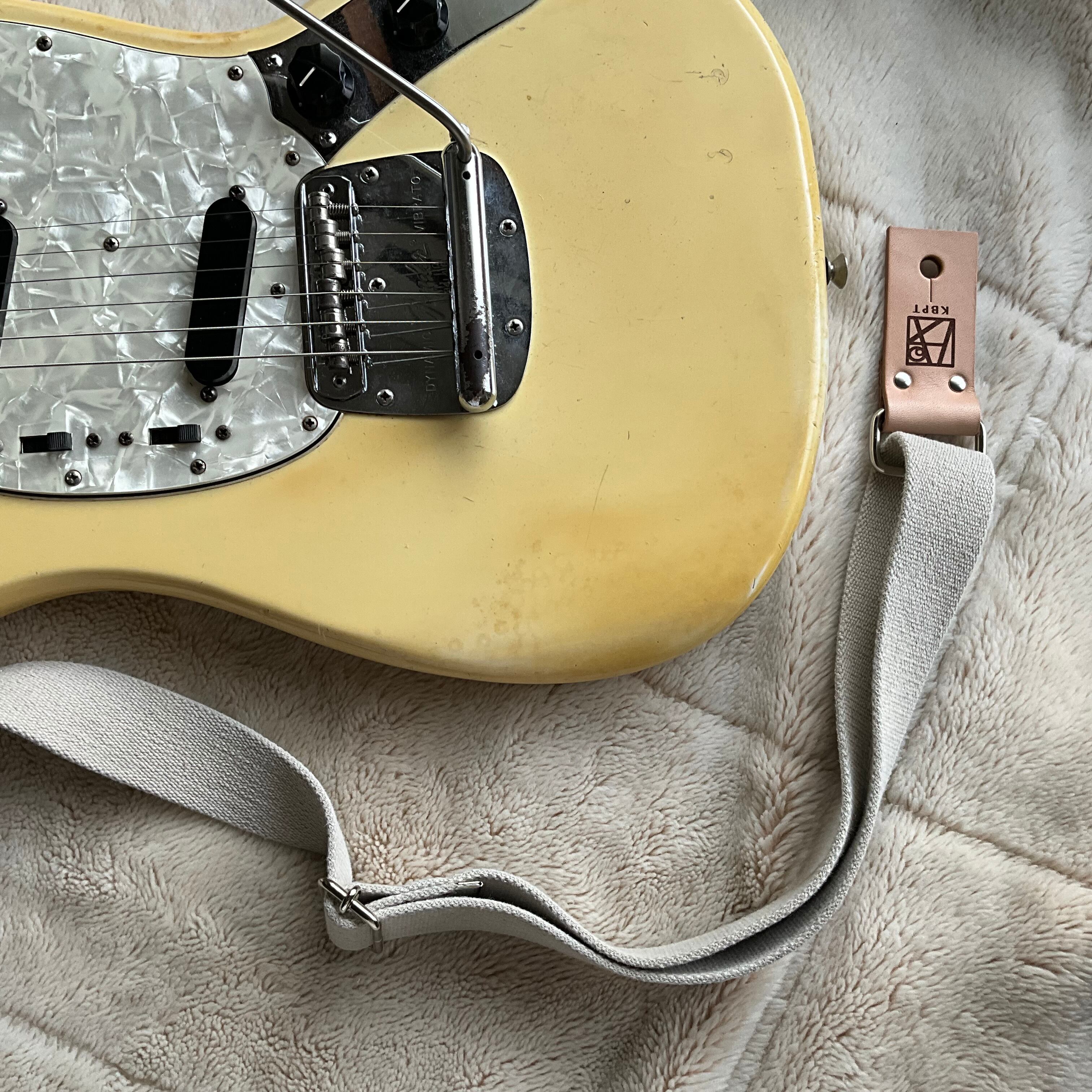 【llama40】アイボリー*ベージュレザー*ニッケル金具【ピン径8mm/柔らかくて厚い綿のギターストラップ/ivbgn2LM】