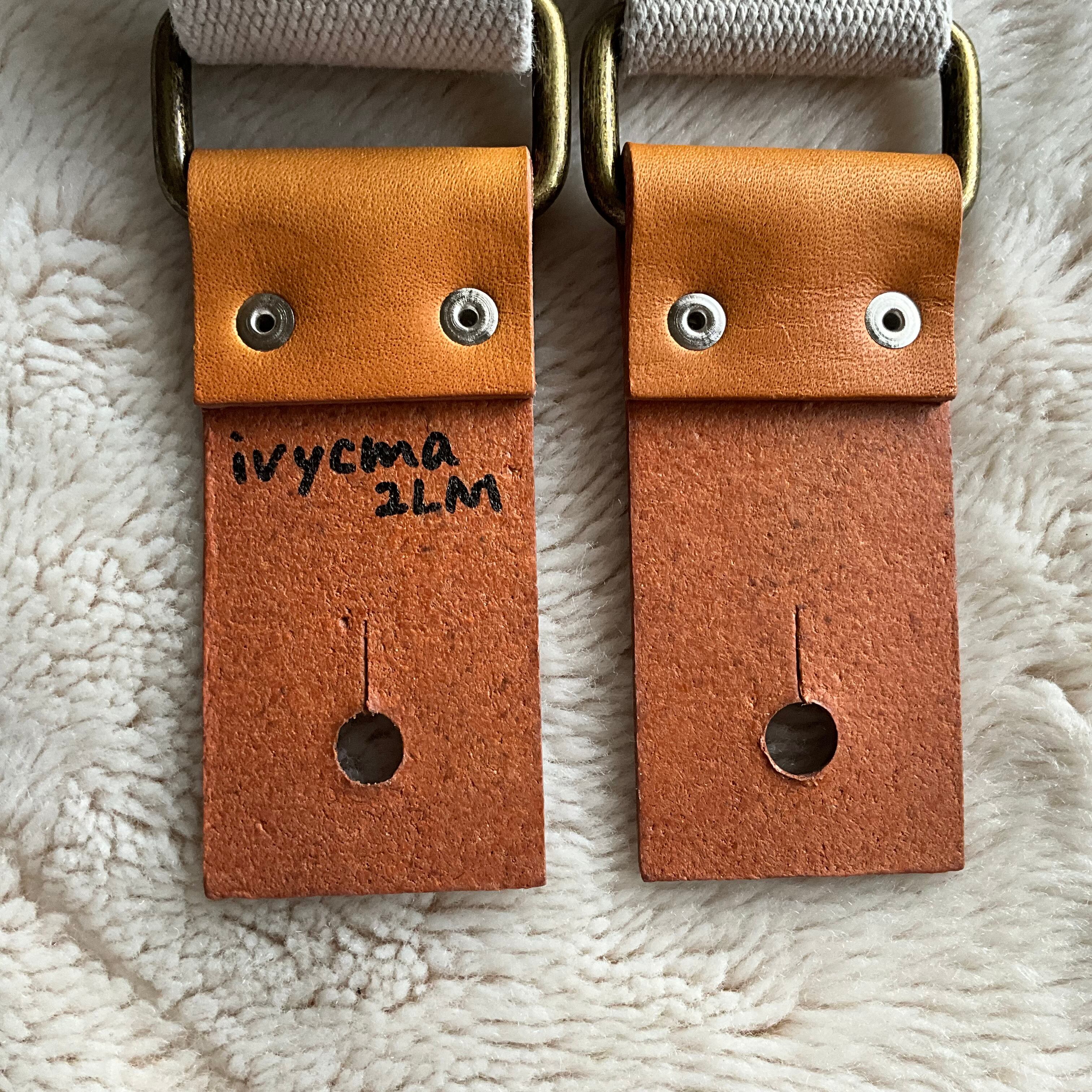 ストラップ・レザー・金具・ステッチ等の組み合わせは気まぐれで決めており、焼印具合やレザーの表情もひとつひとつ異なります。素材の問題で二度と同じ組み合わせで作らない(れない)ものもあります。