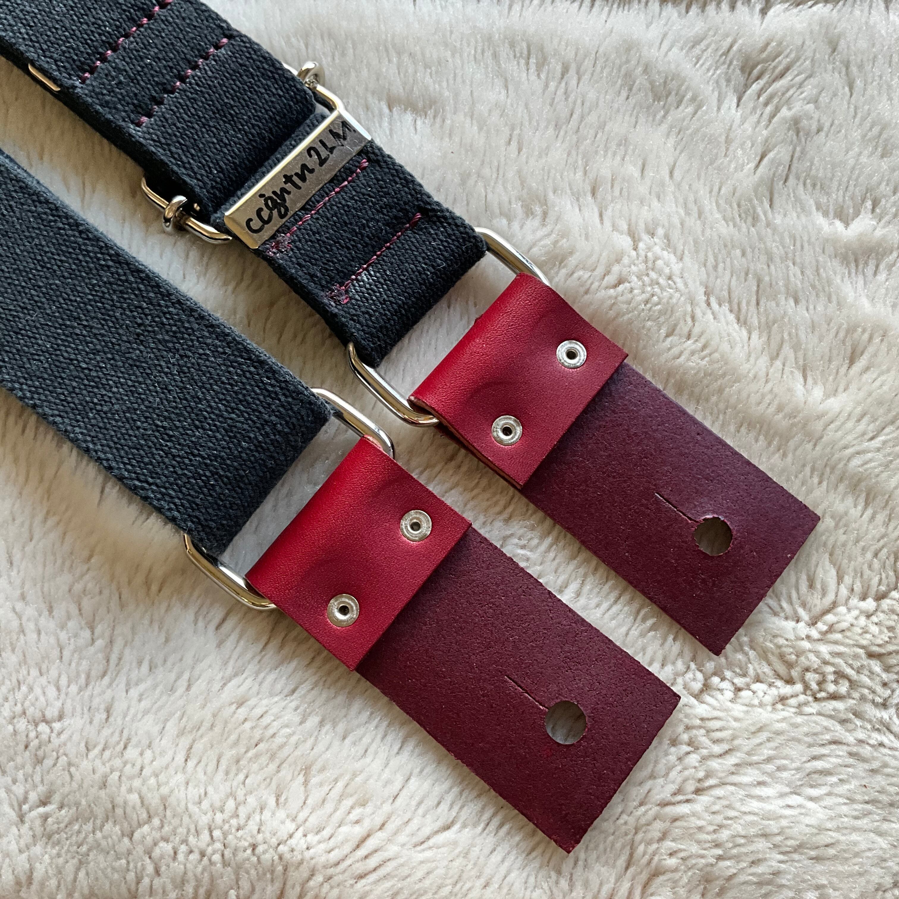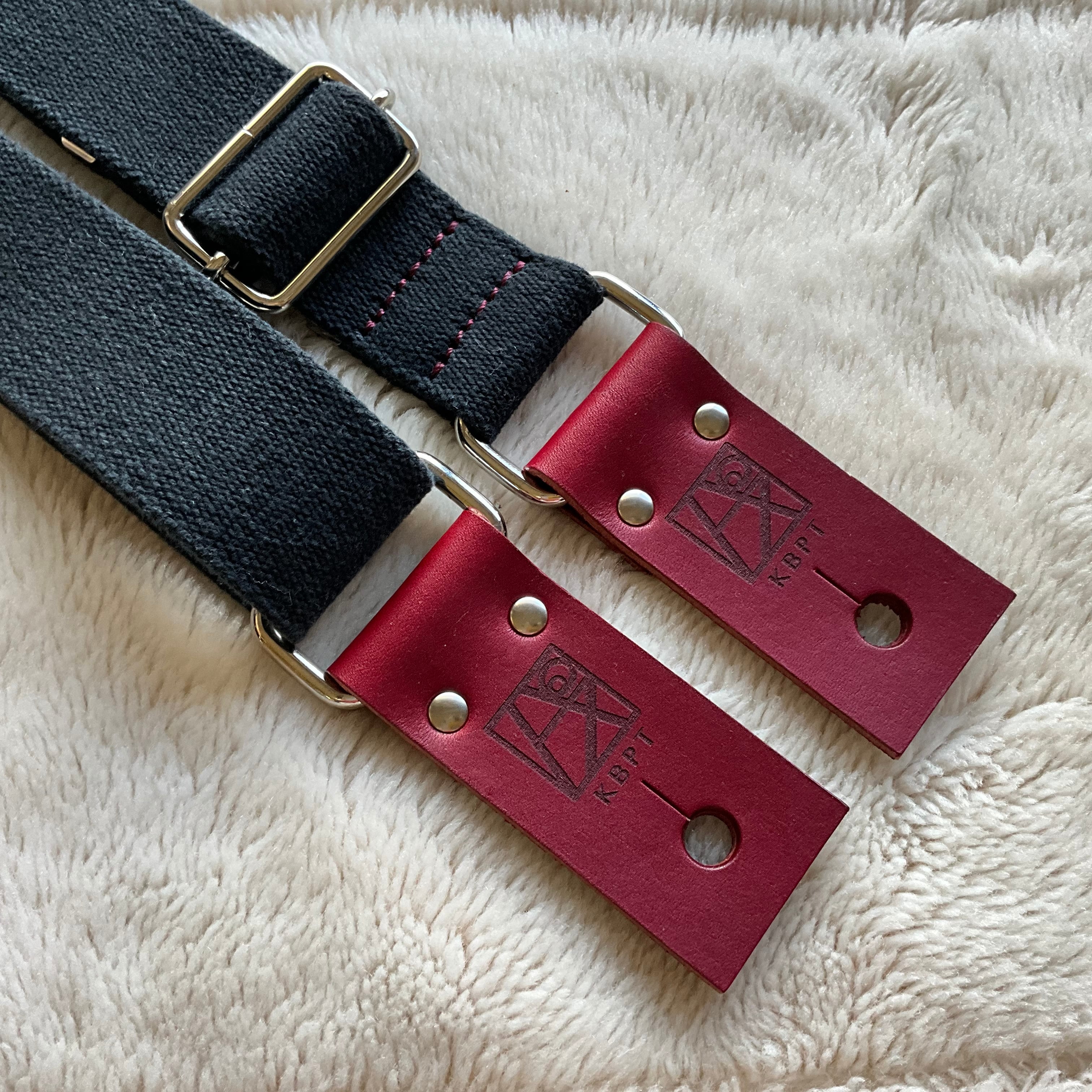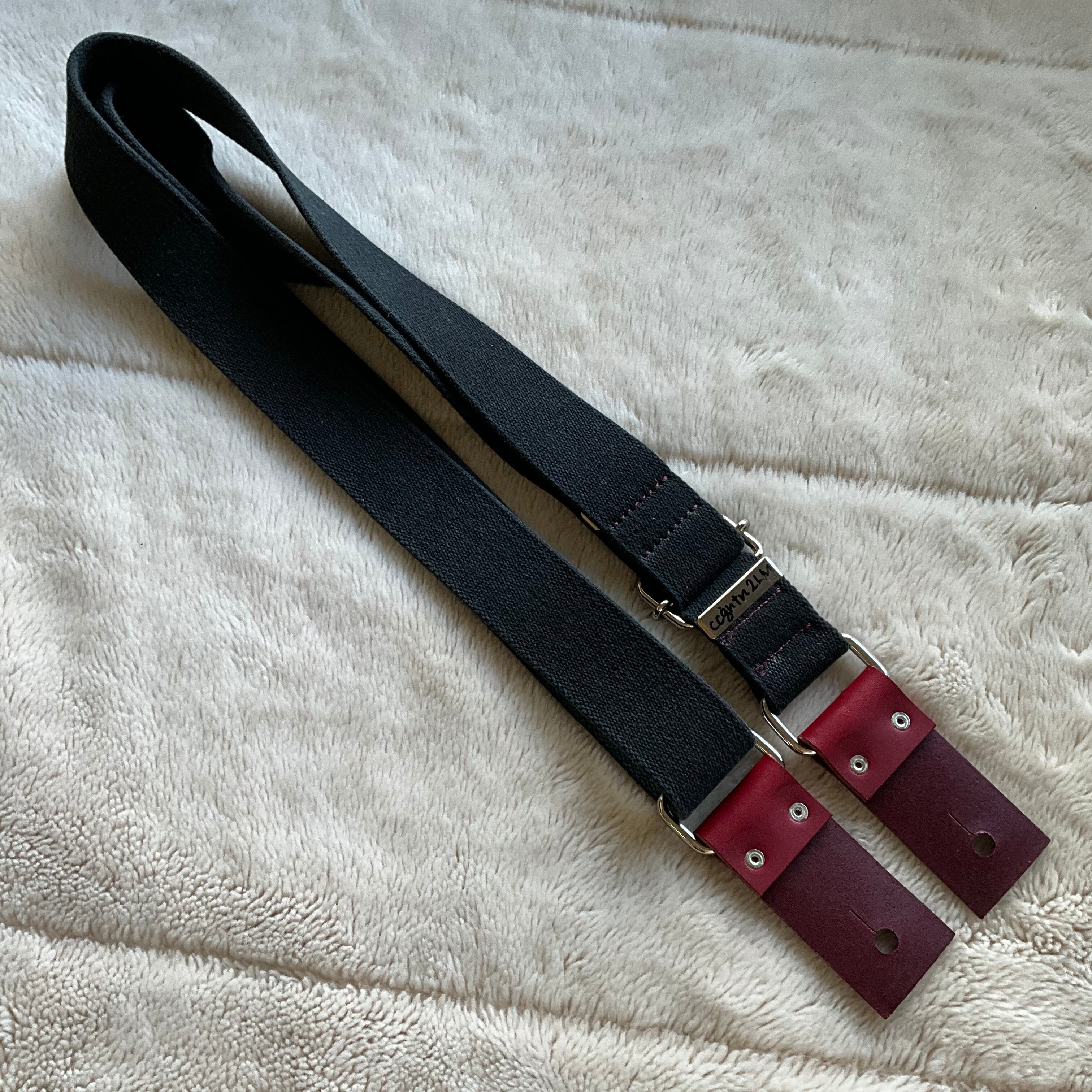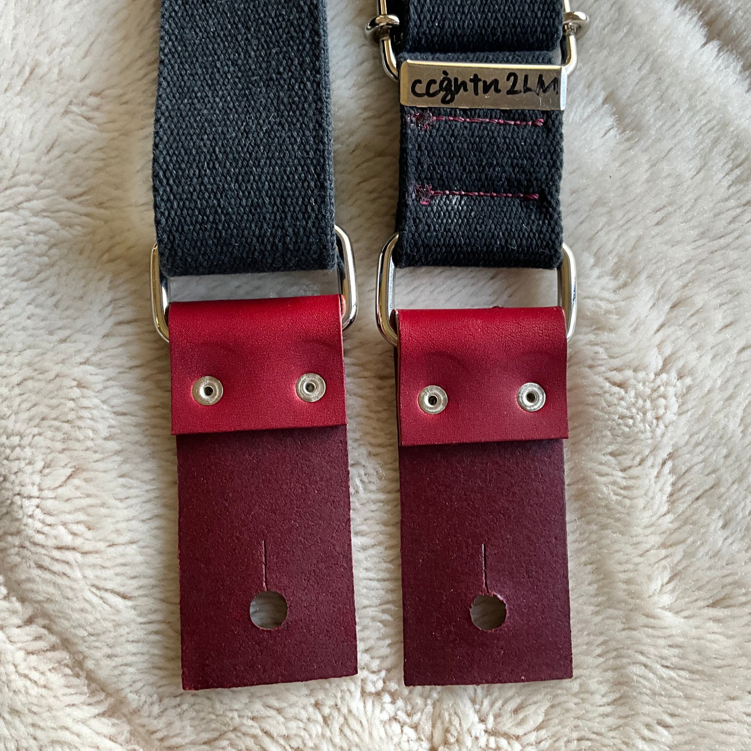 【llama40】チャコール*ガーネットレザー*ニッケル金具【ピン径8mm/柔らかくて厚い綿のギターストラップ/ccgntn2LM】