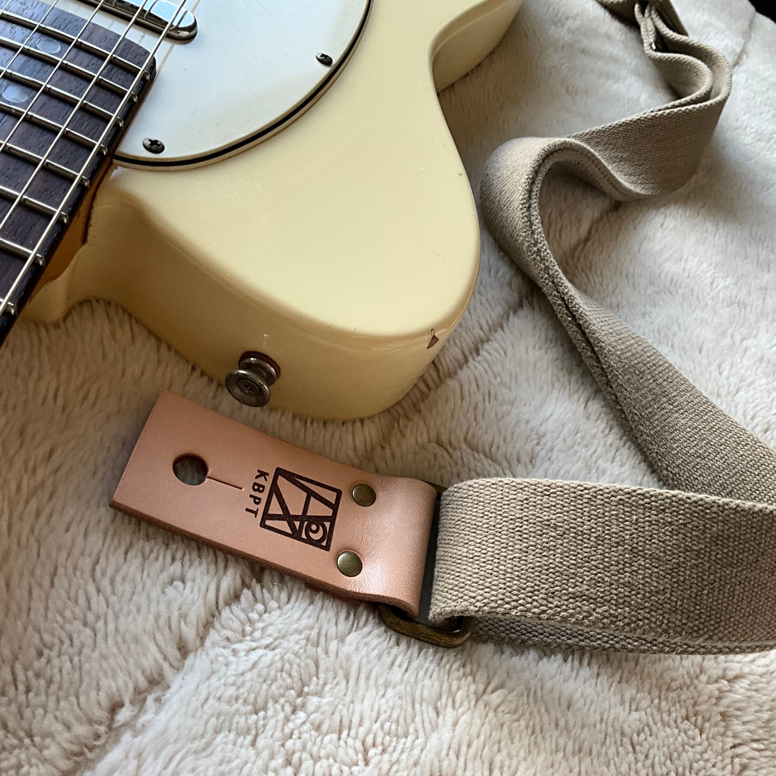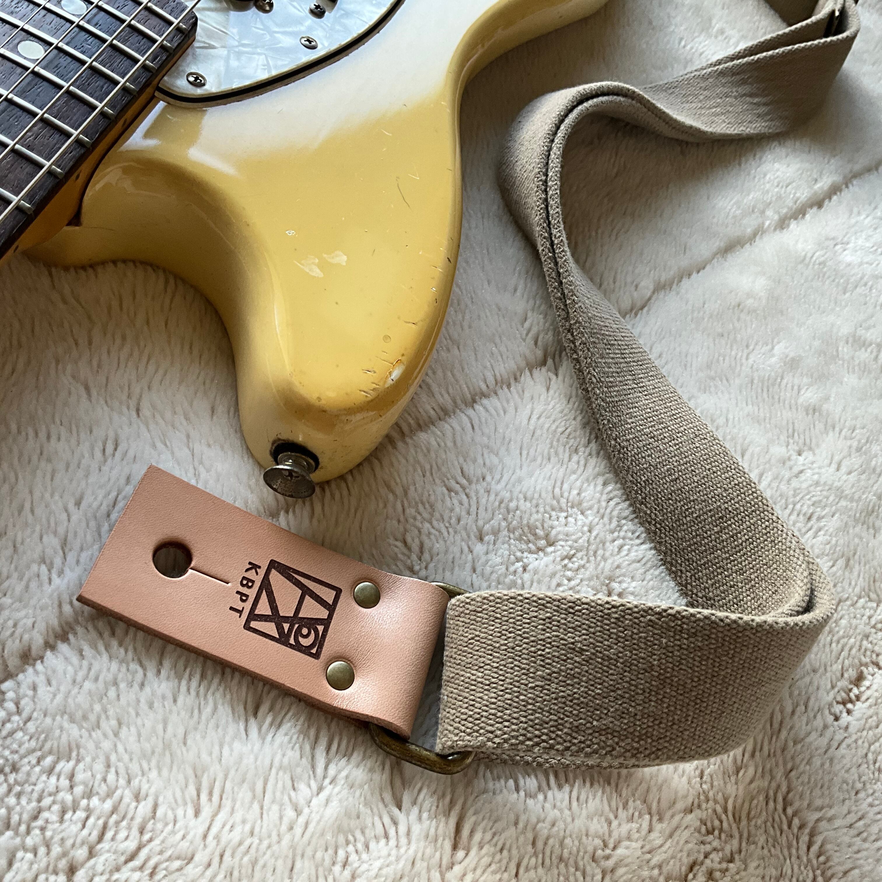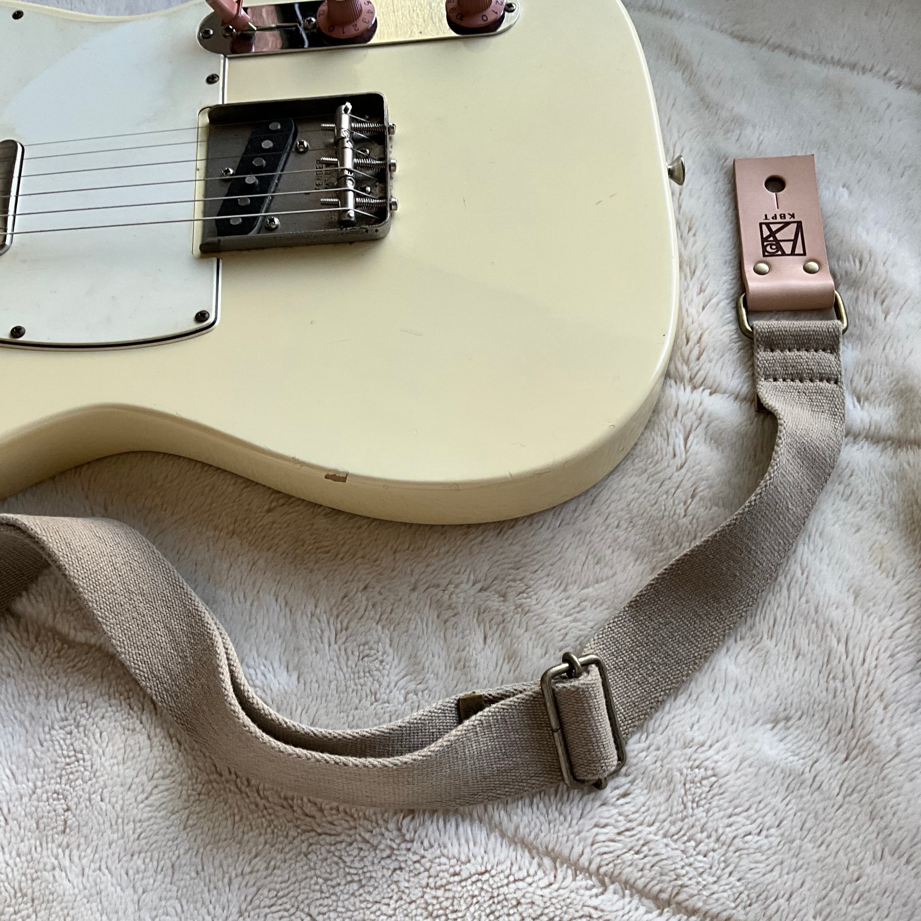 【llama40】オーク*ベージュレザー*アンティーク金具【ピン径8mm/柔らかくて厚い綿のギターストラップ/okbga1LM】