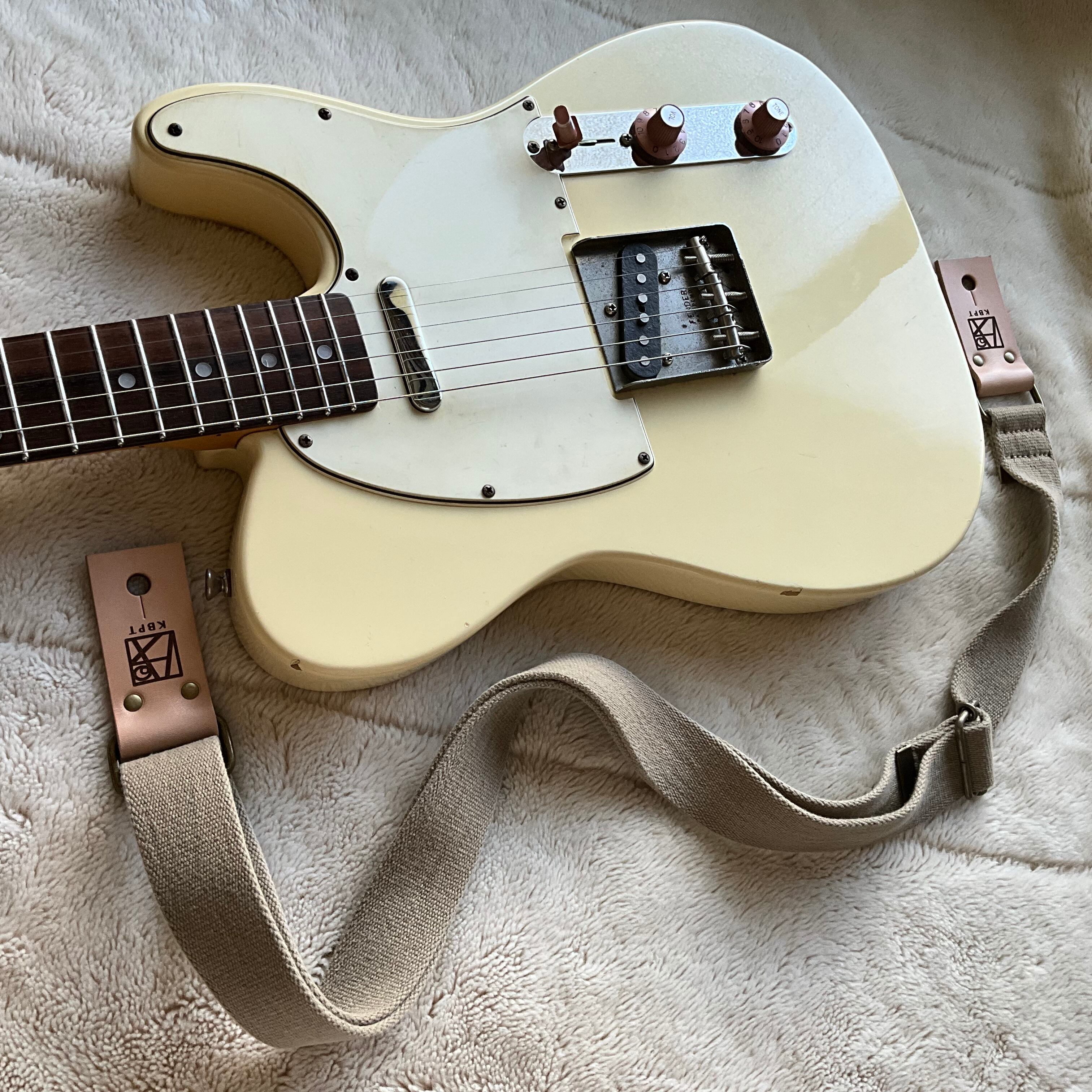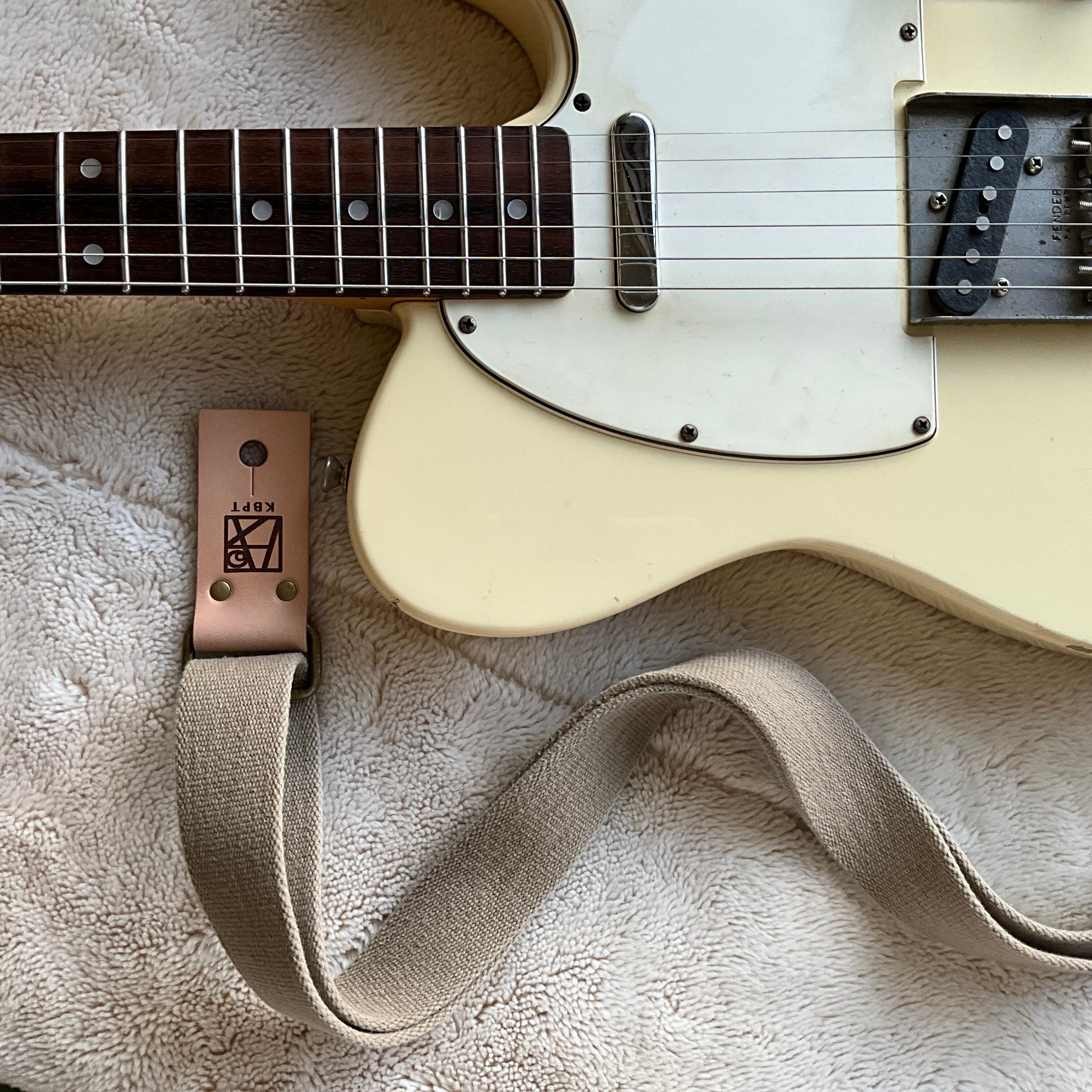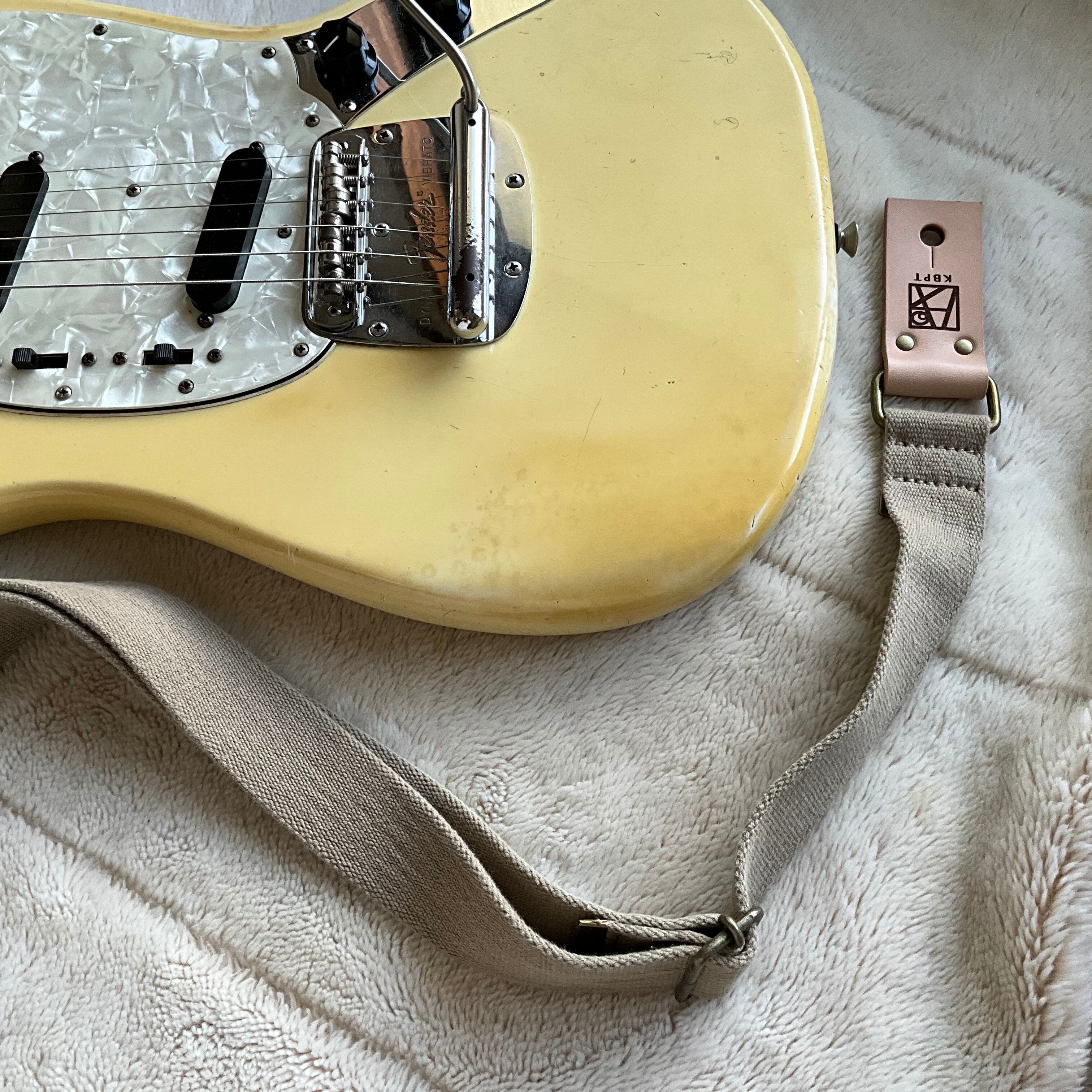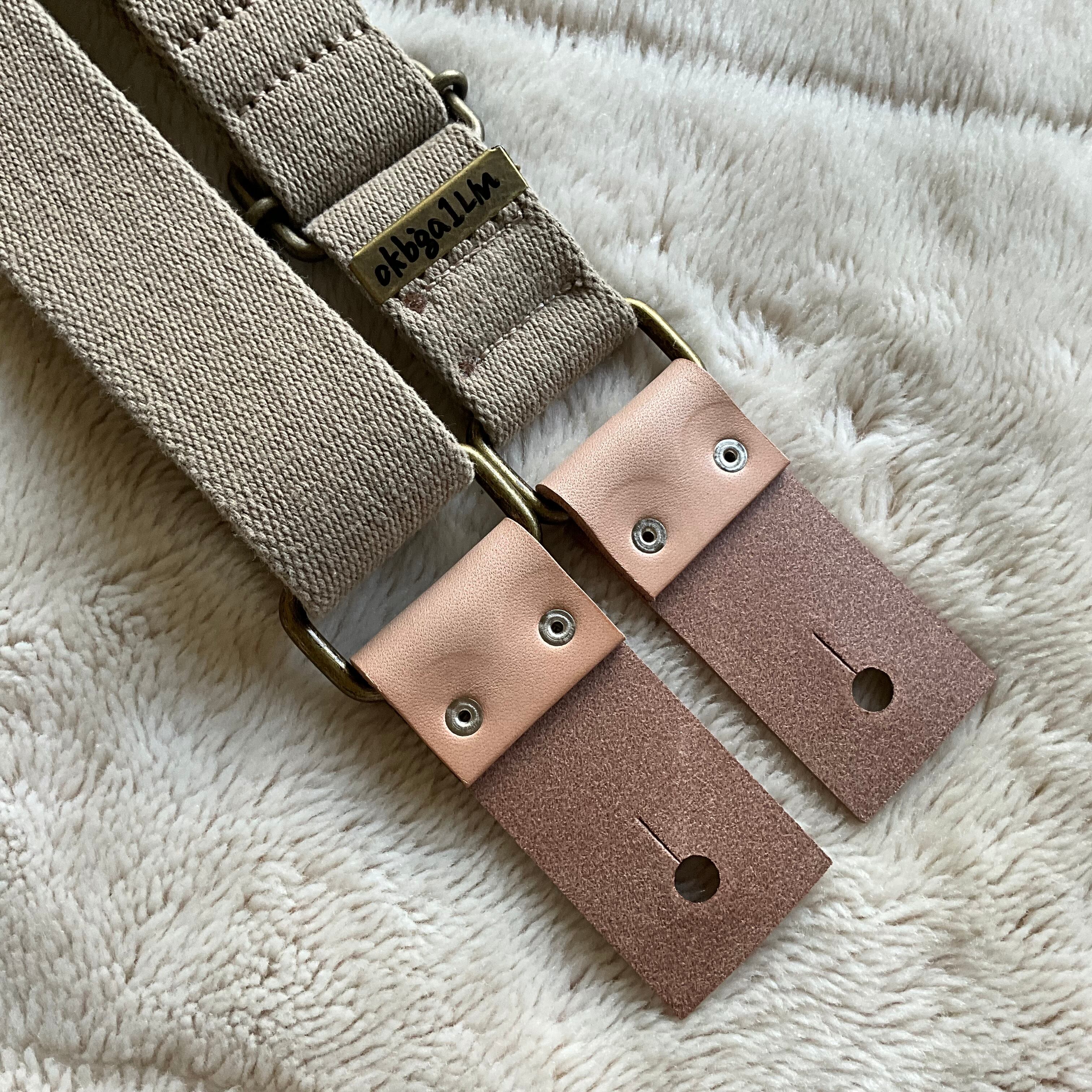 【llama40】オーク*ベージュレザー*アンティーク金具【ピン径8mm/柔らかくて厚い綿のギターストラップ/okbga1LM】