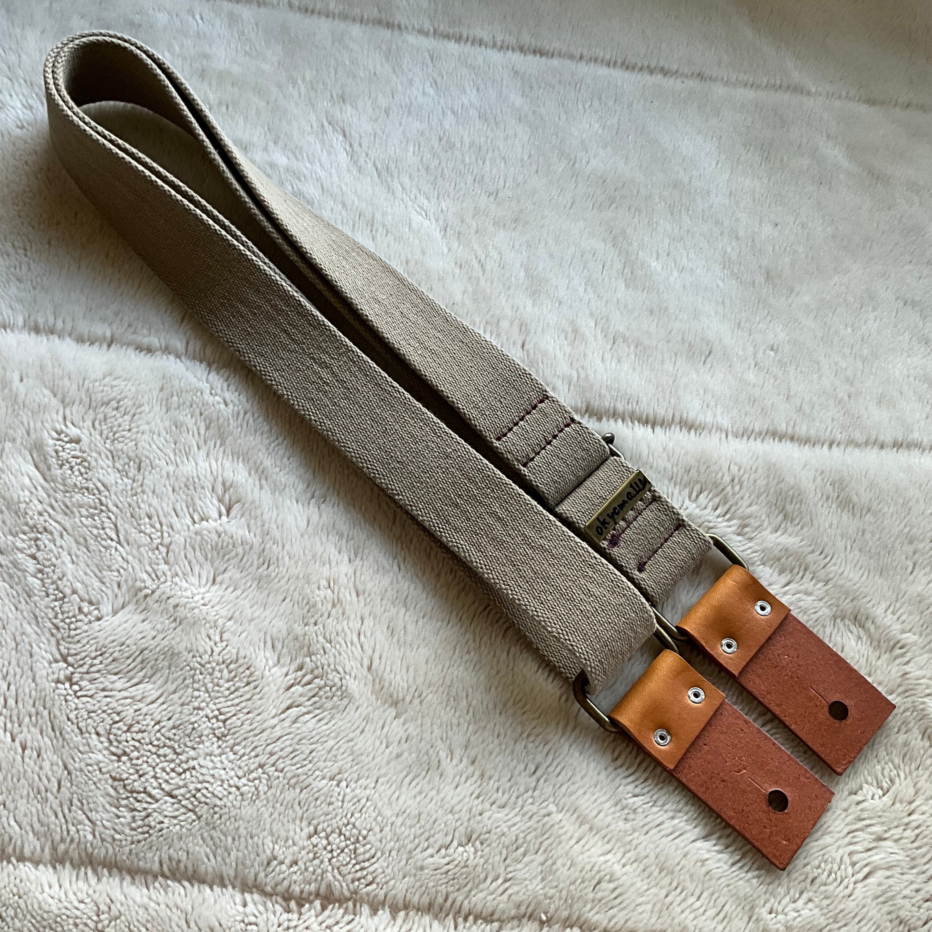 【llama40】オーク*イエローキャメル*アンティーク金具【ピン径8mm/柔らかくて厚い綿のギターストラップ/okycma1LM】