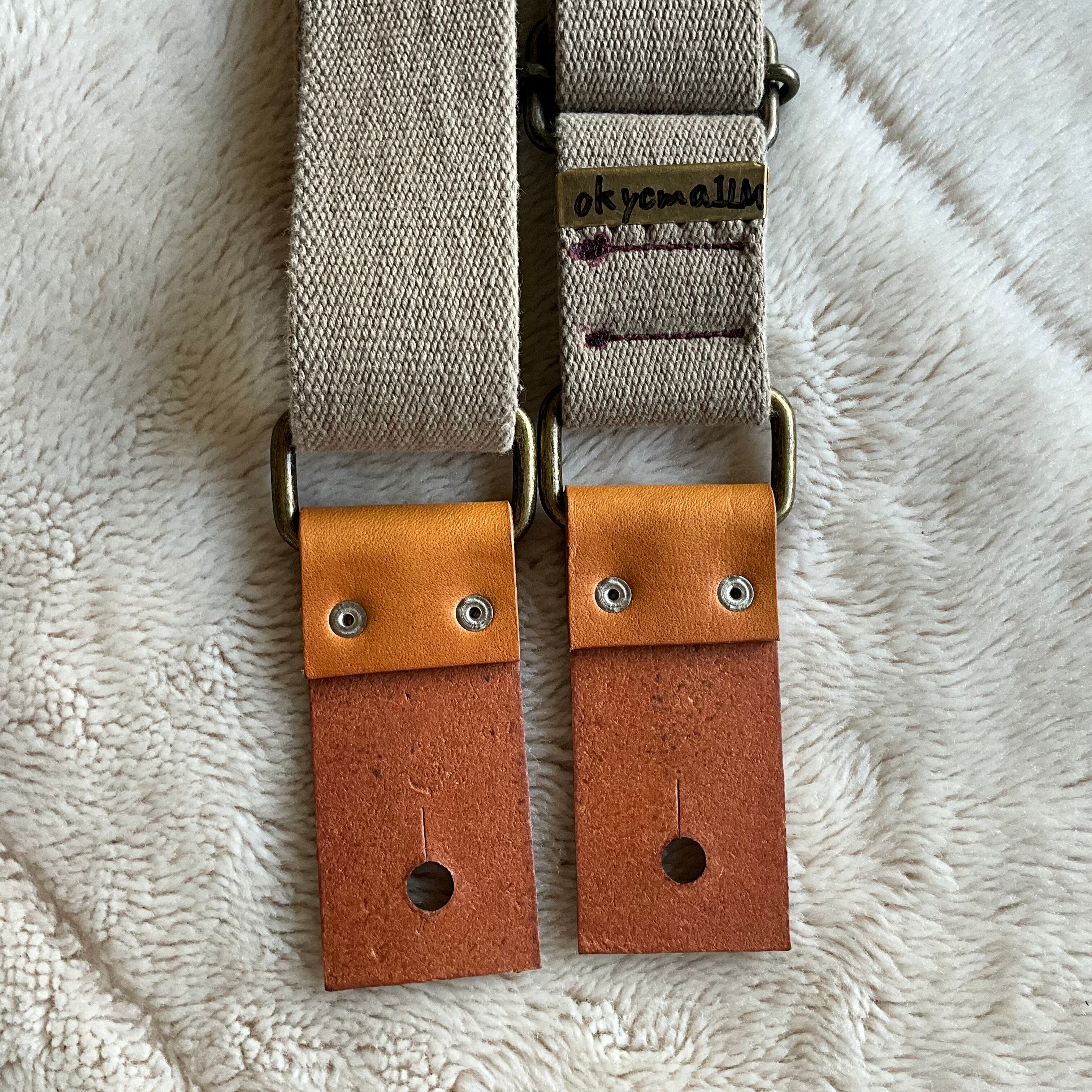 ストラップ・レザー・金具・ステッチ等の組み合わせは気まぐれで決めており、焼印具合やレザーの表情もひとつひとつ異なります。素材の問題で二度と同じ組み合わせで作らない(れない)ものもあります。