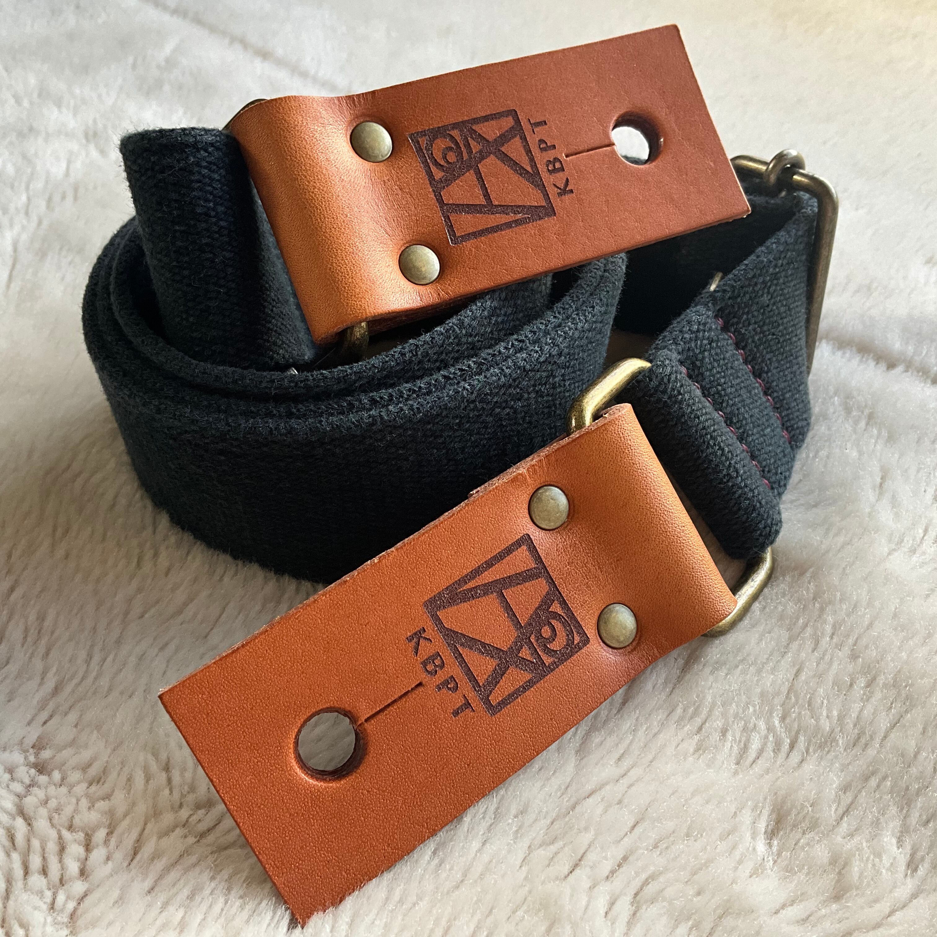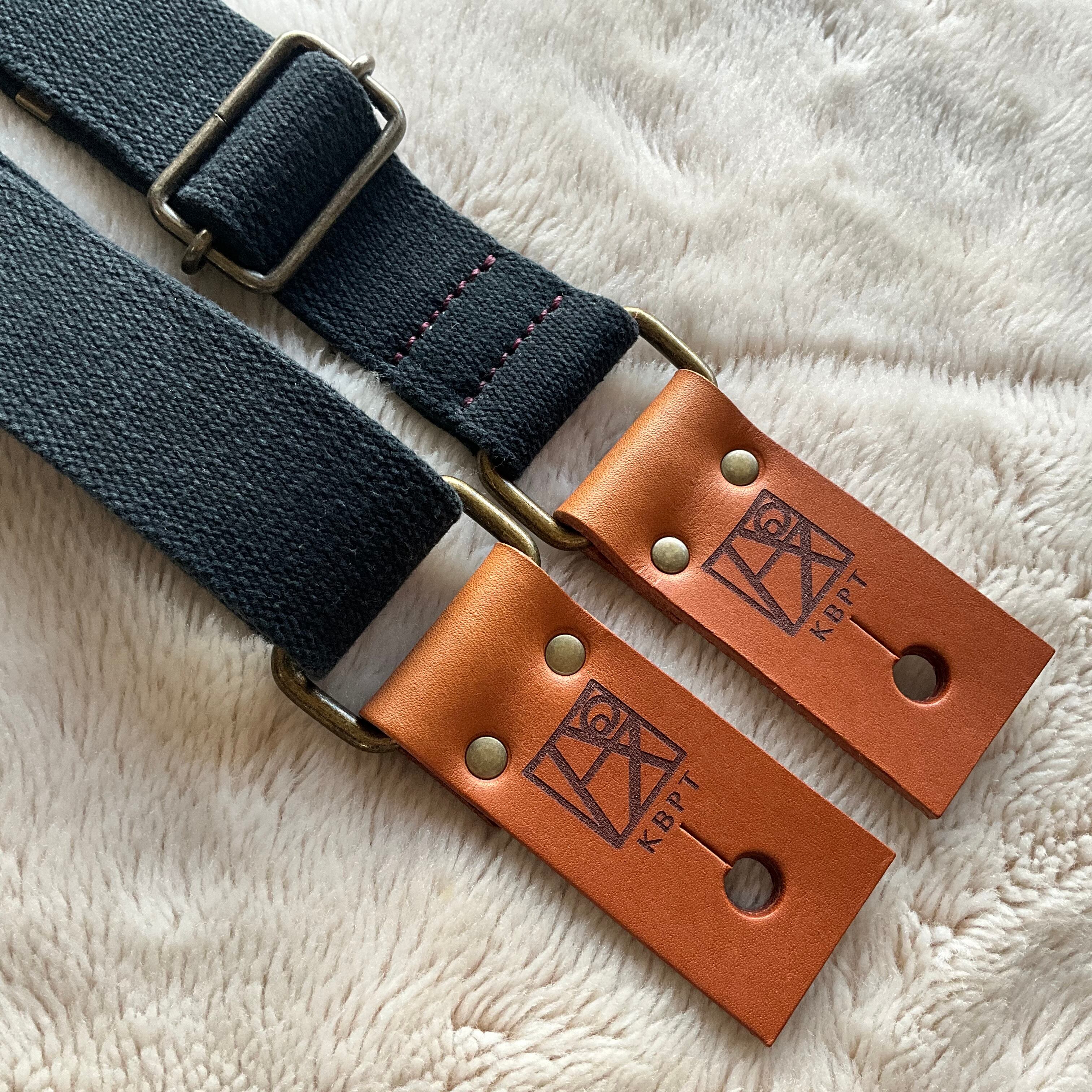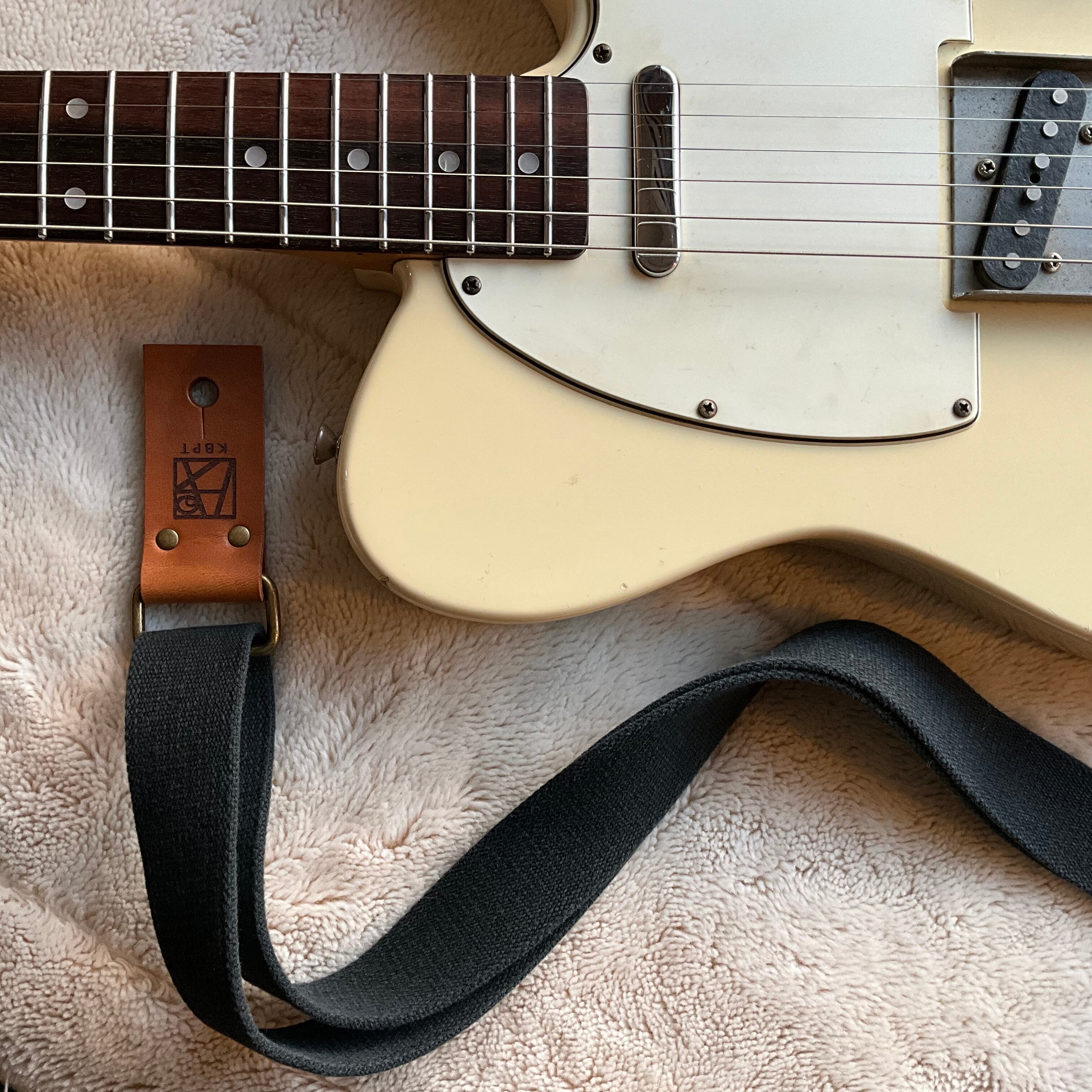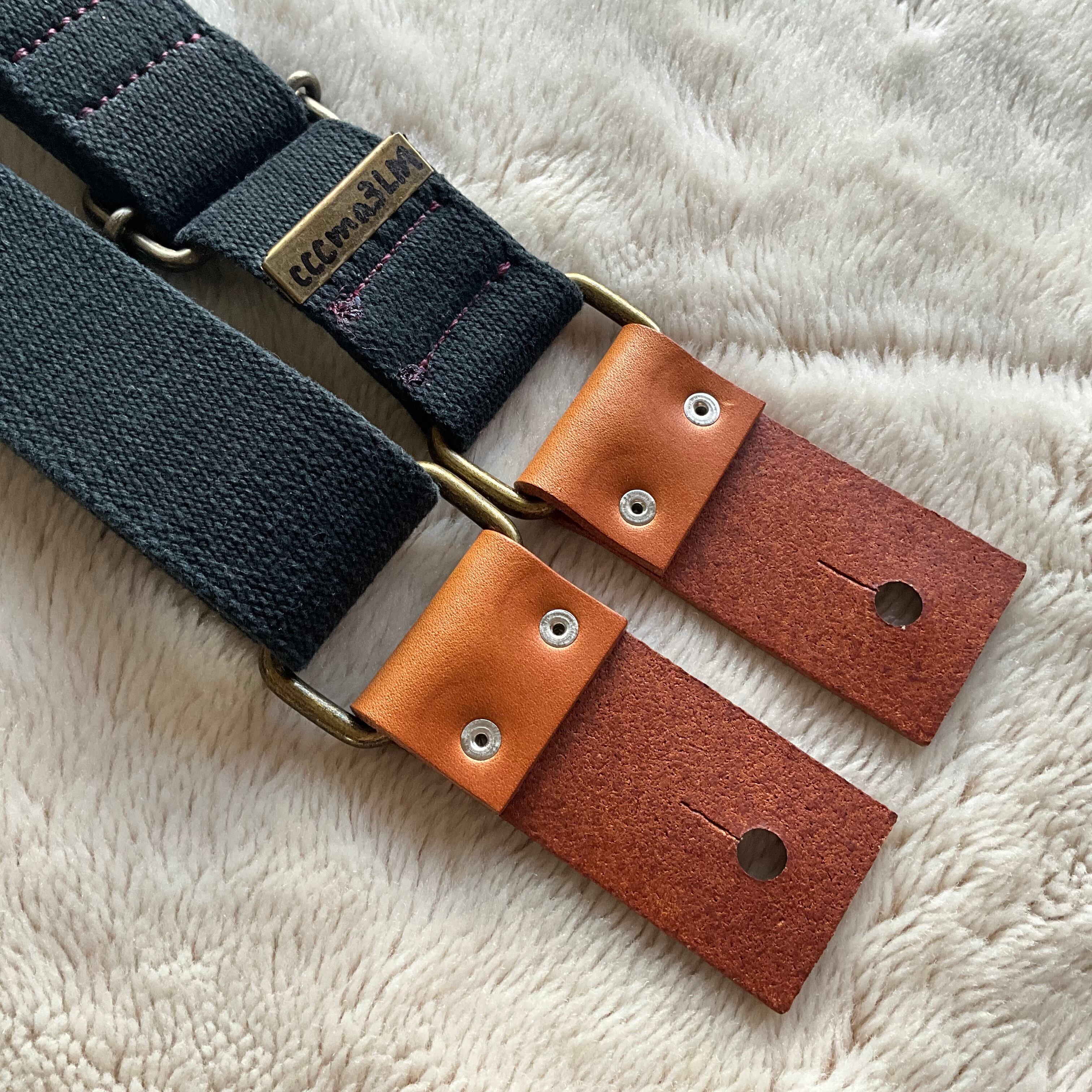【llama40】チャコール*キャメルレザー*アンティーク金具【ピン径8mm/柔らかくて厚い綿のギターストラップ/cccma2LM】