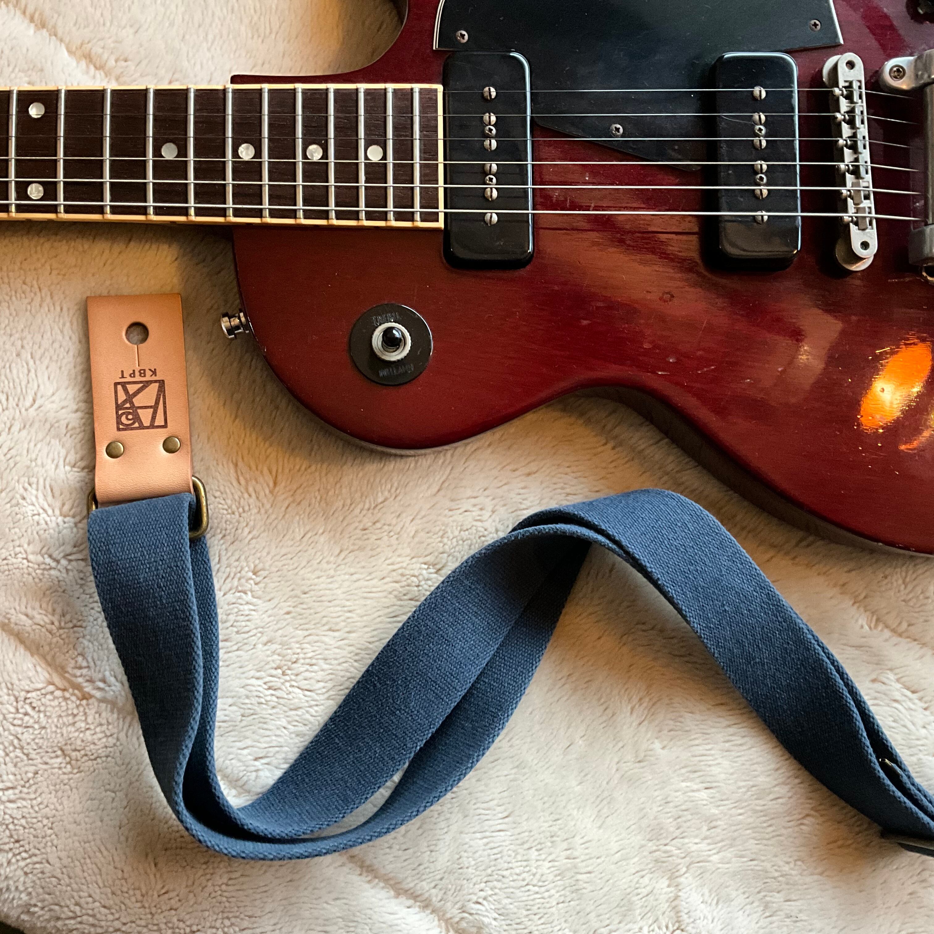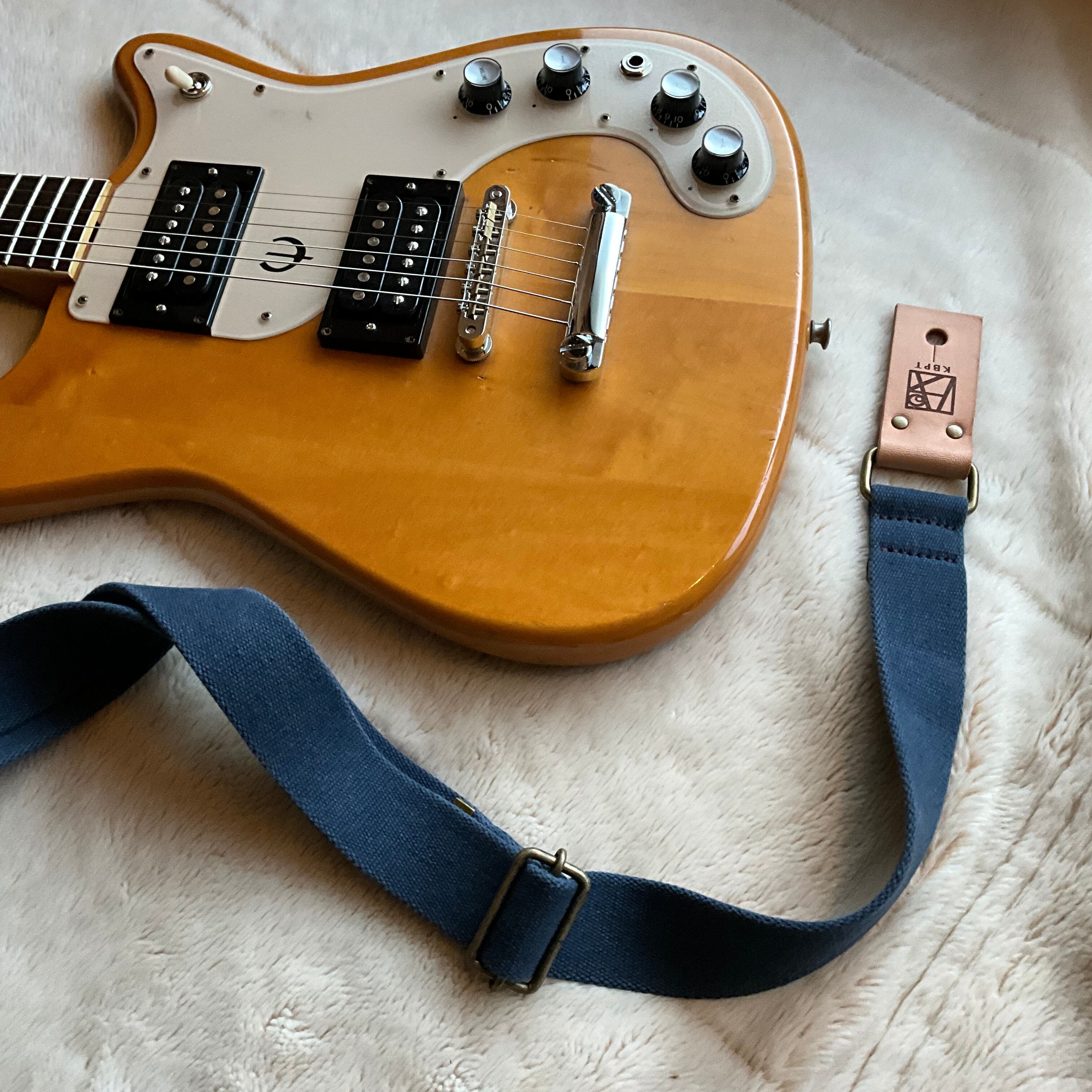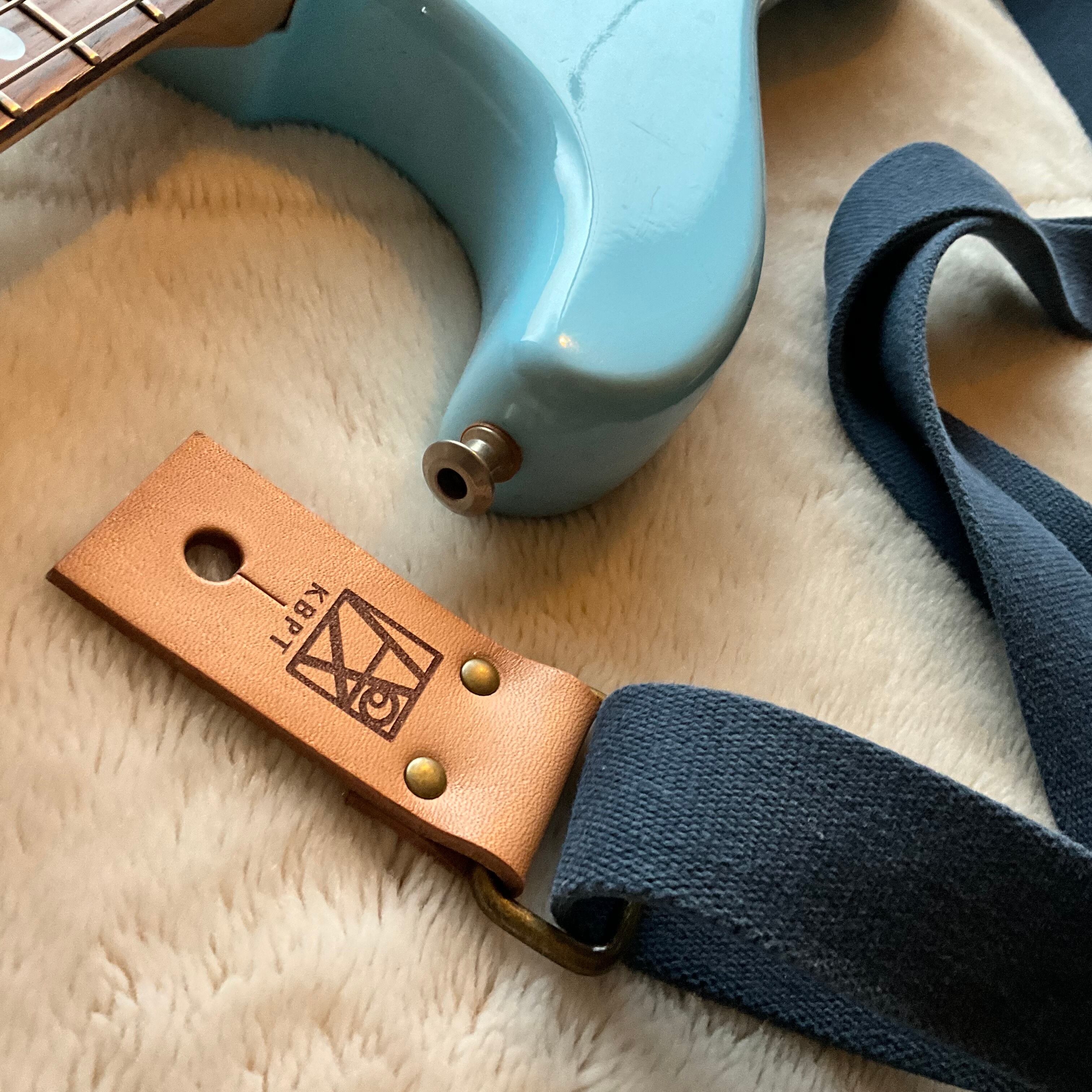 【llama40】アイアンブルー*エイジドベージュレザー*アンティーク金具【ピン径8mm/柔らかくて厚い綿のギターストラップ/ibabga1LM】