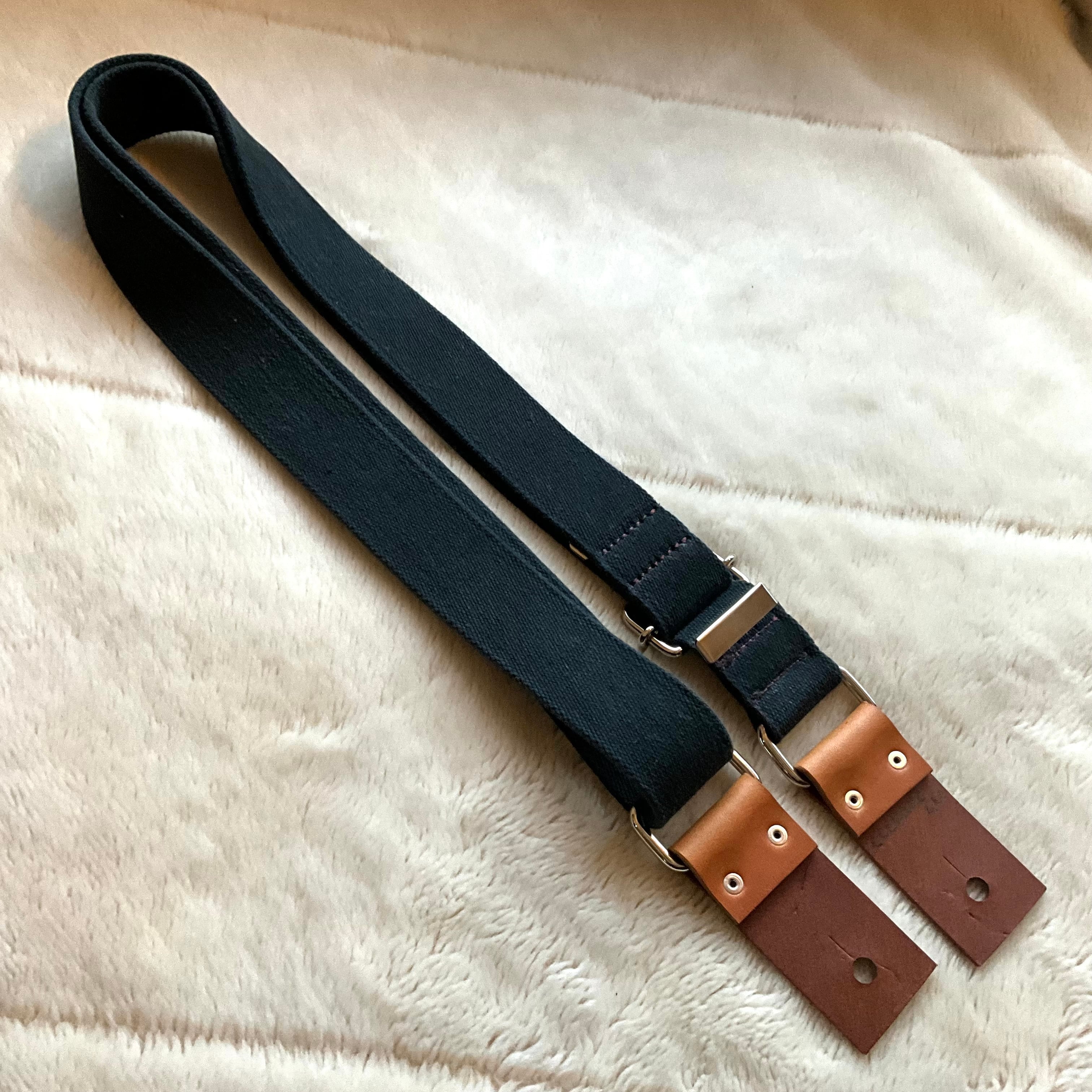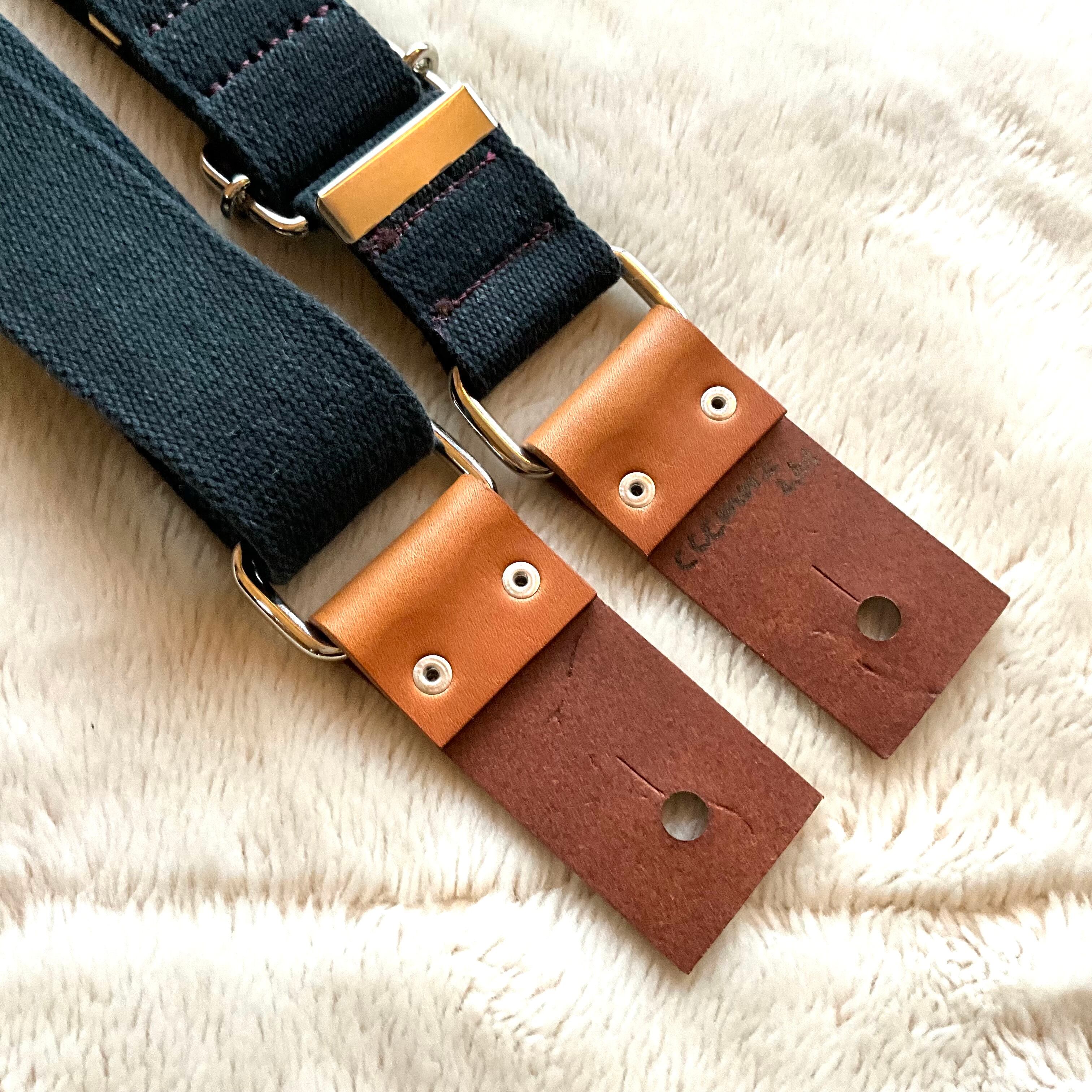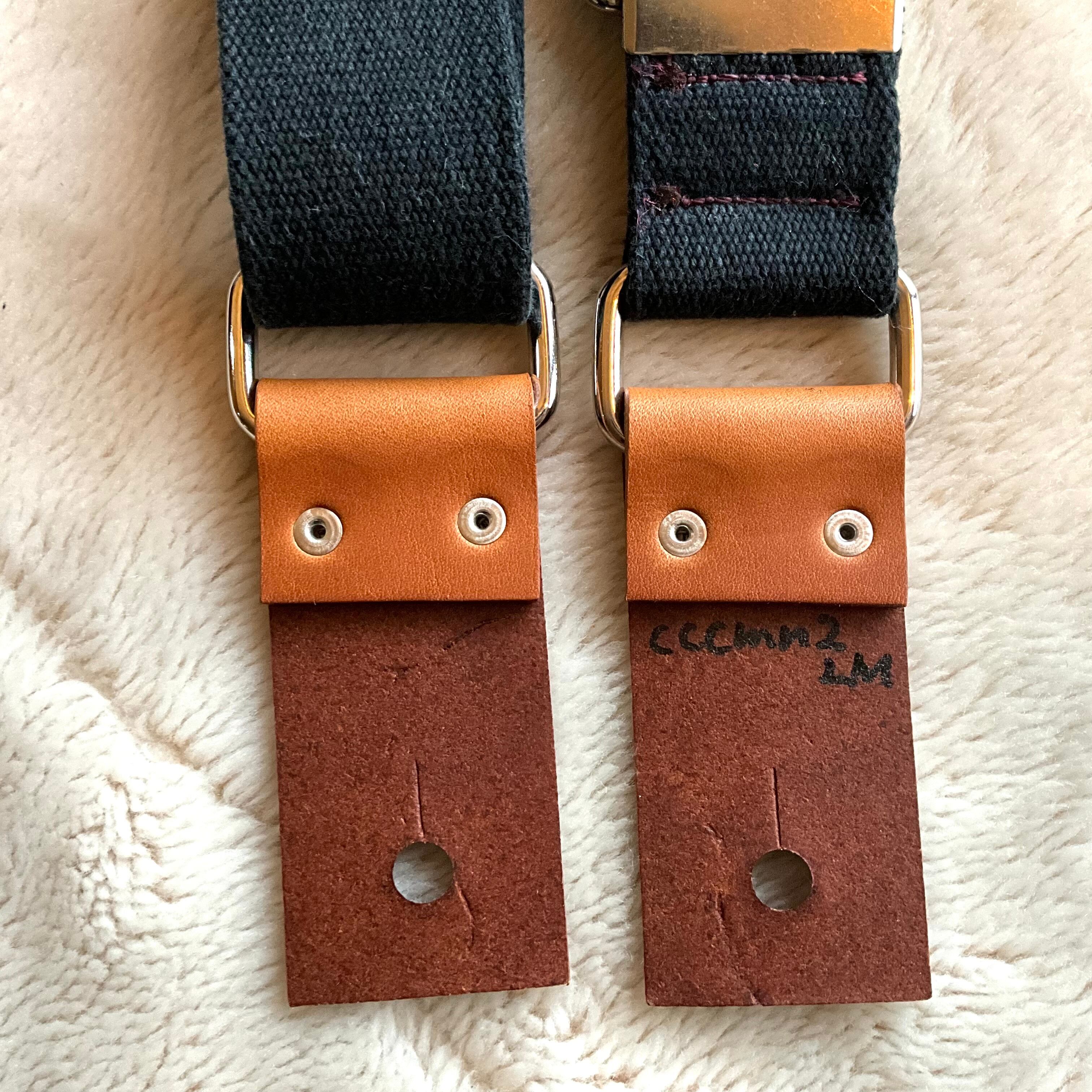 ストラップ・レザー・金具・ステッチ等の組み合わせは気まぐれで決めており、焼印具合やレザーの表情もひとつひとつ異なります。素材の問題で二度と同じ組み合わせで作らない(れない)ものもあります。