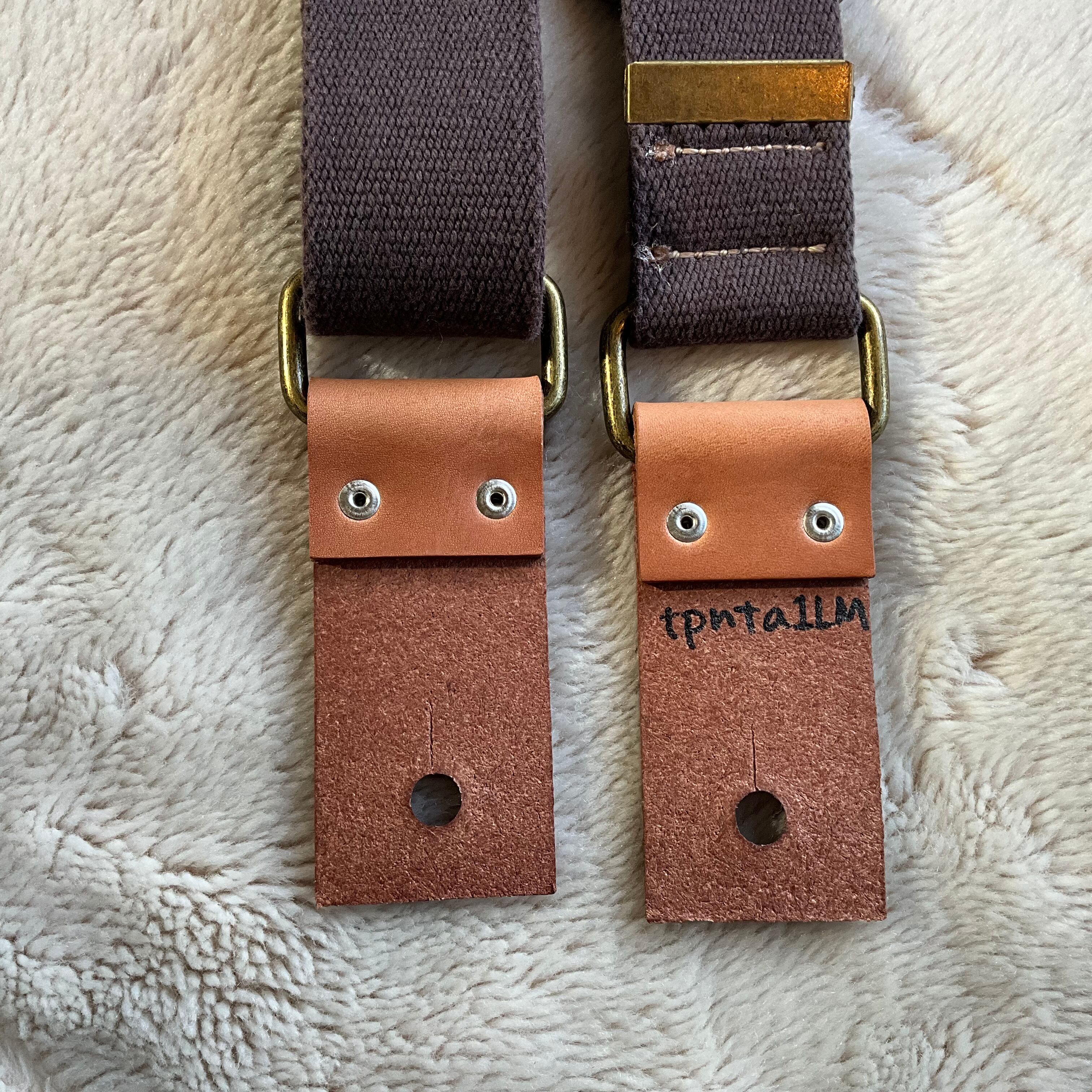 ストラップ・レザー・金具・ステッチ等の組み合わせは気まぐれで決めており、焼印具合やレザーの表情もひとつひとつ異なります。素材の問題で二度と同じ組み合わせで作らない(れない)ものもあります。